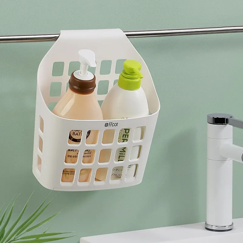 非非猫のバスルーム用小型吊りバスケット - キッチンやトイレに最適な壁掛けプラスチック収納バスケット!寮生活にもぴったりな便利アイテム!