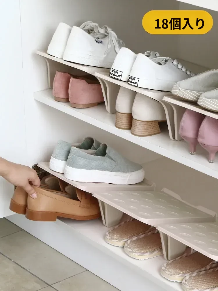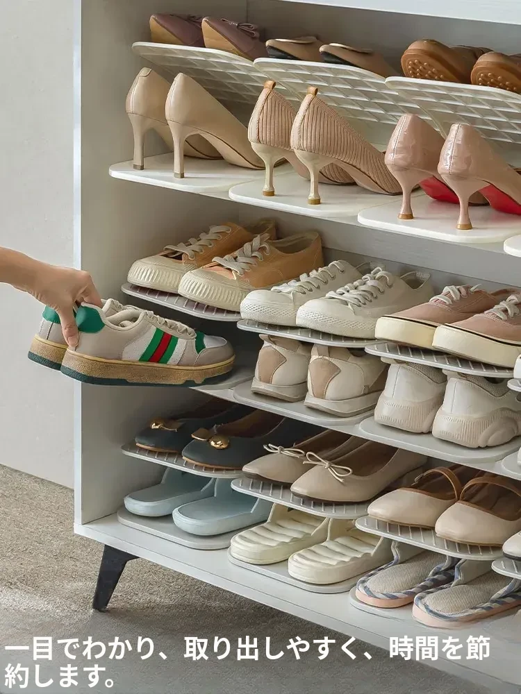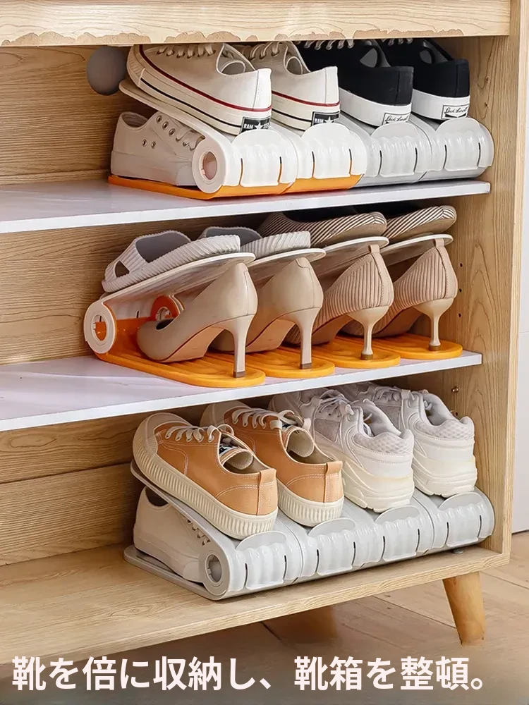 省スペース!二段式靴収納ラック - スリッパや靴をすっきり整理できる多機能シェルフ!靴箱をスマートに活用し、部屋を広々と見せる便利アイテム!