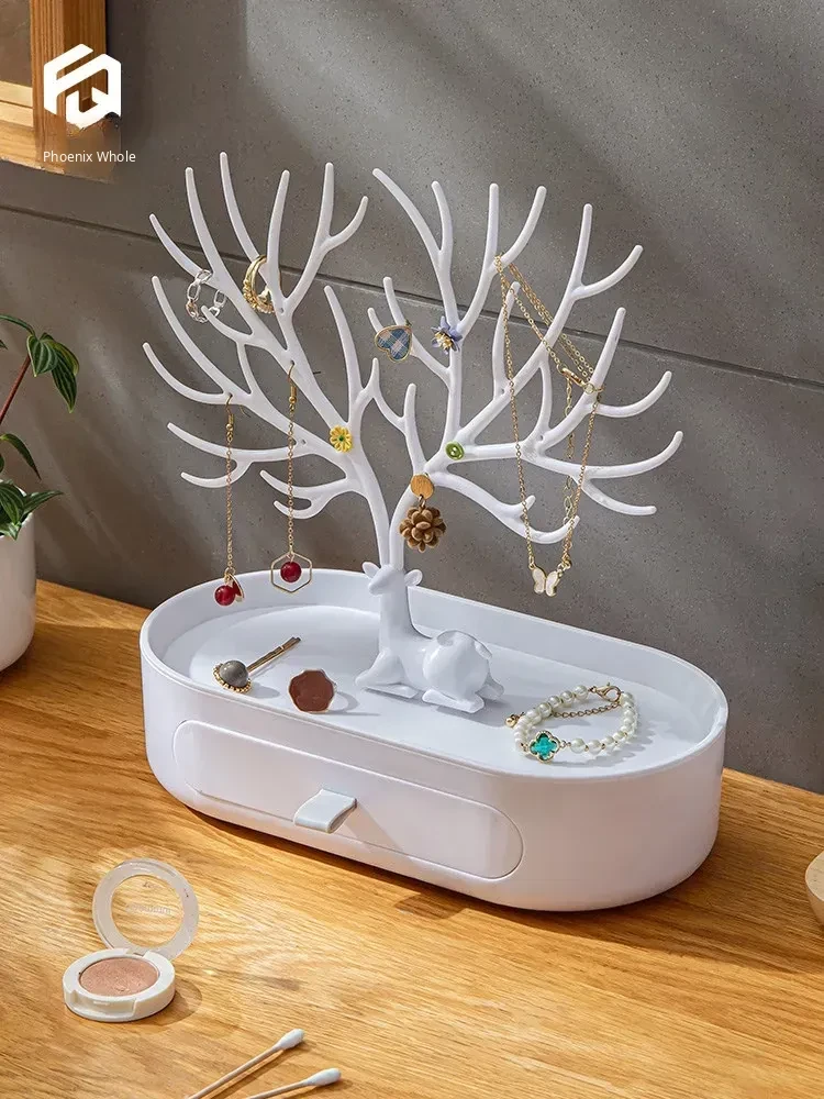 Home Jewelry Organizer - Deer Antler Display Stand for Earrings, Studs, Necklaces, and Hair Accessories - Elegant Storage Box for Your Vanity