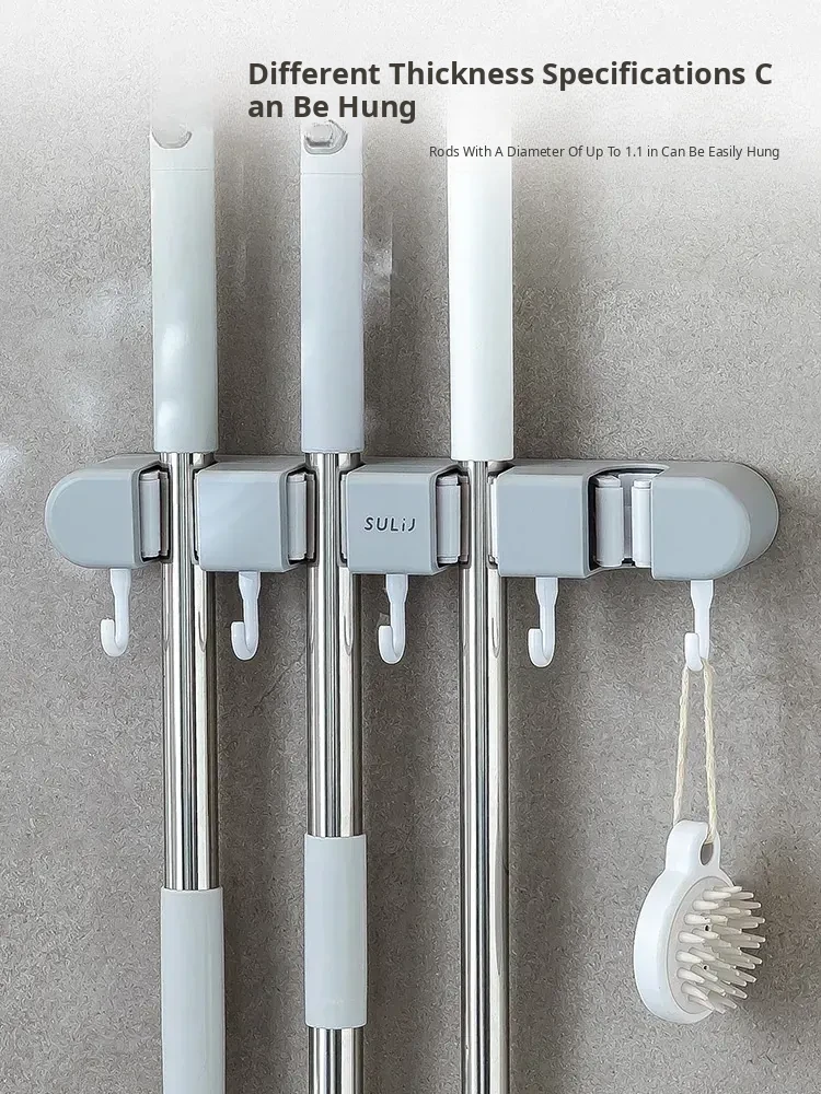 No-Drill Mop Wall-Mounted Holder - Anti-Slip Multi-Functional Broom Hook Storage Rack for Bathroom & Kitchen - Space-Saving Organizer for Ultimate Convenience