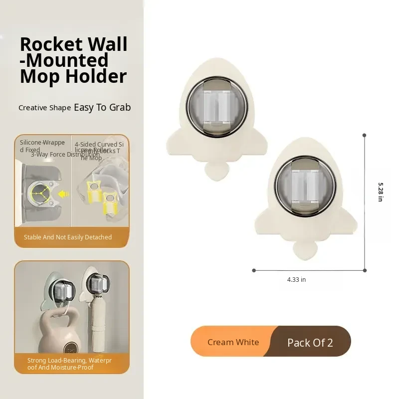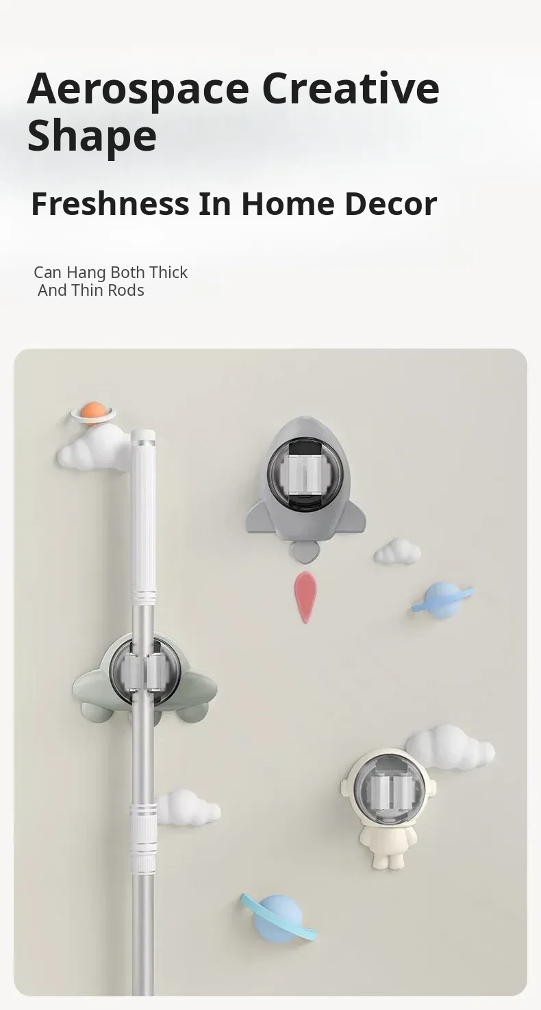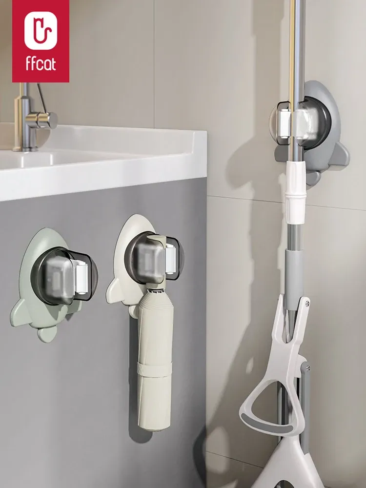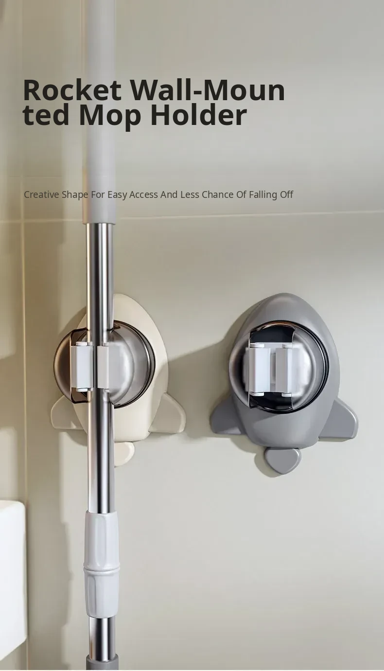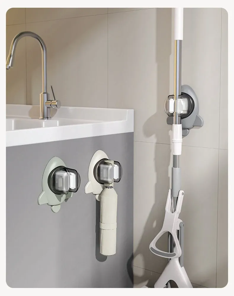 2025 New Wall-Mounted Mop Holder - No Drilling Required, Strong Load-Bearing Bathroom Broom Rack, Removable Adhesive Hook for a Clean and Organized Space