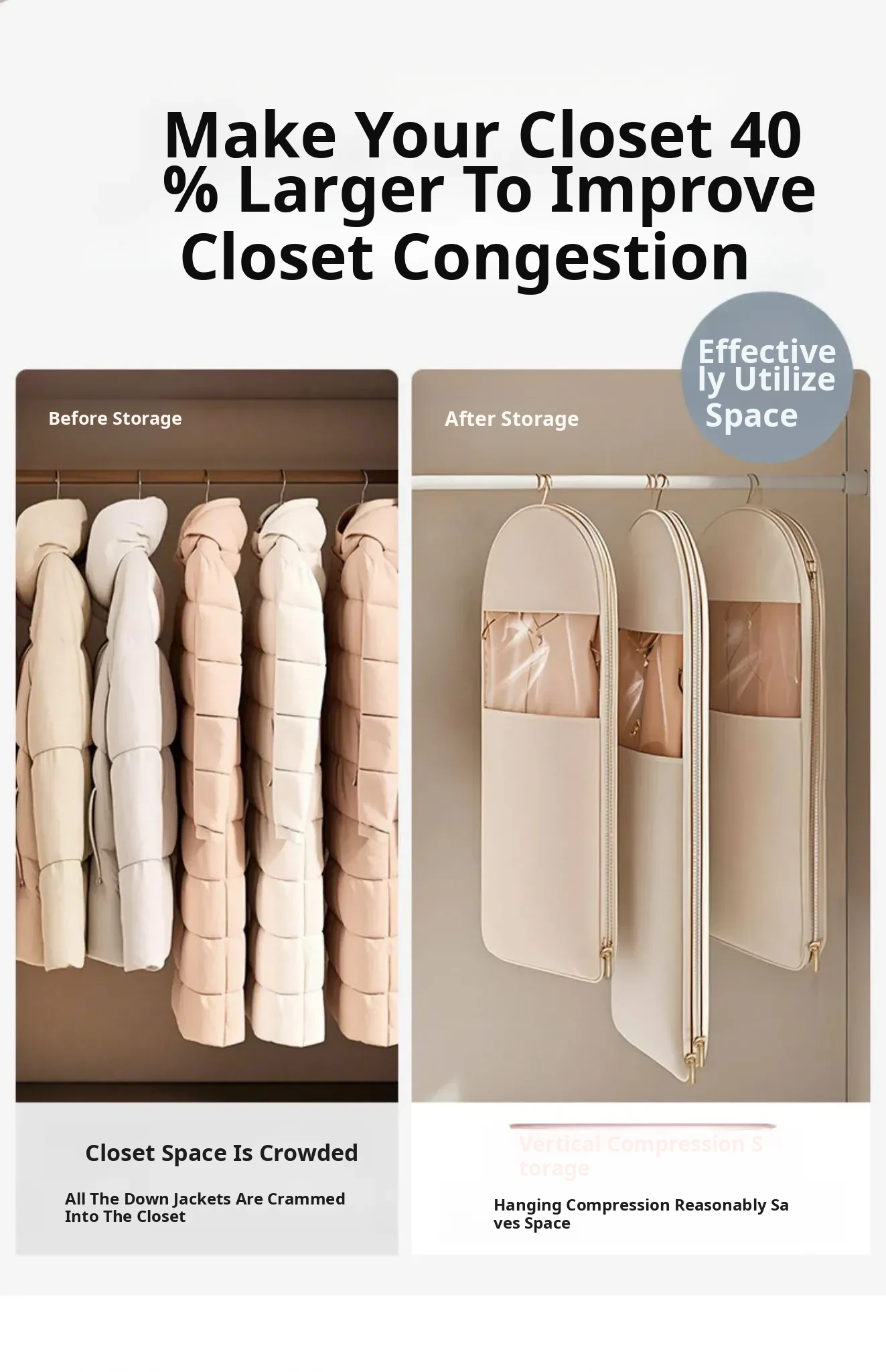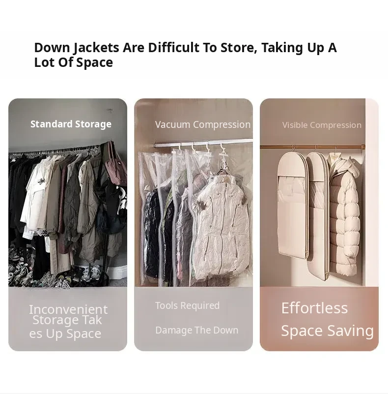 Down Jacket Dust-Proof Bag - Hanging Clothes Cover for Home, Ideal for Coats and Wardrobe Storage, Compression Storage Bag for Clothes