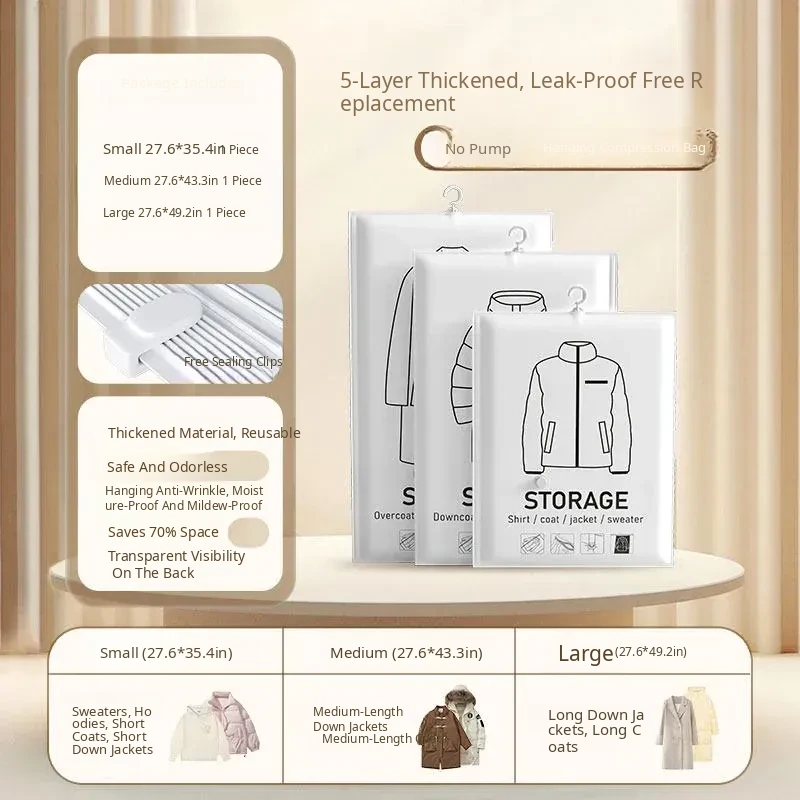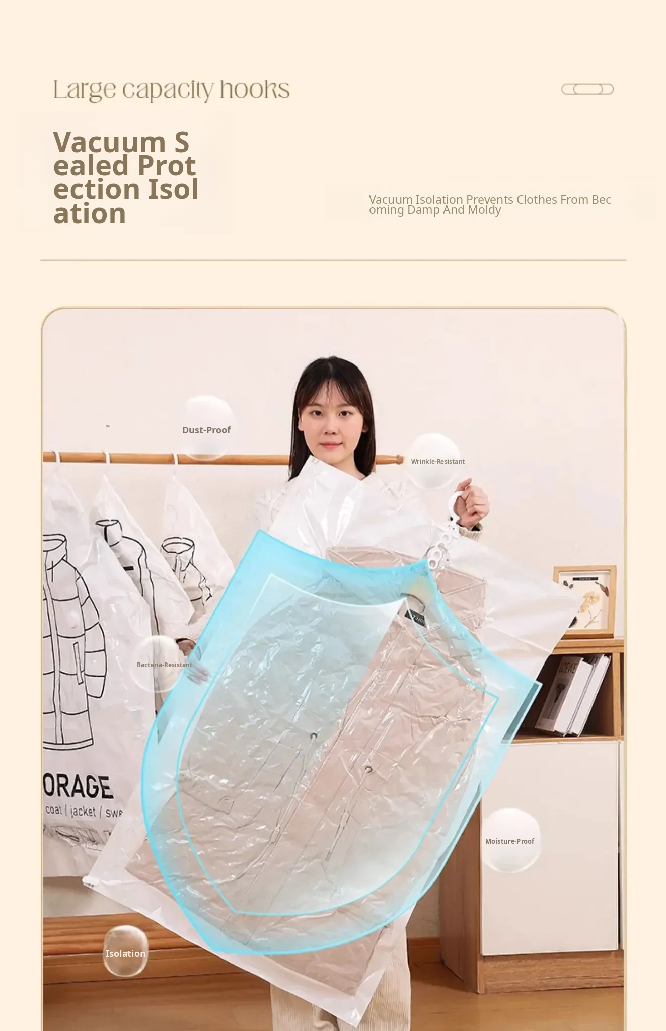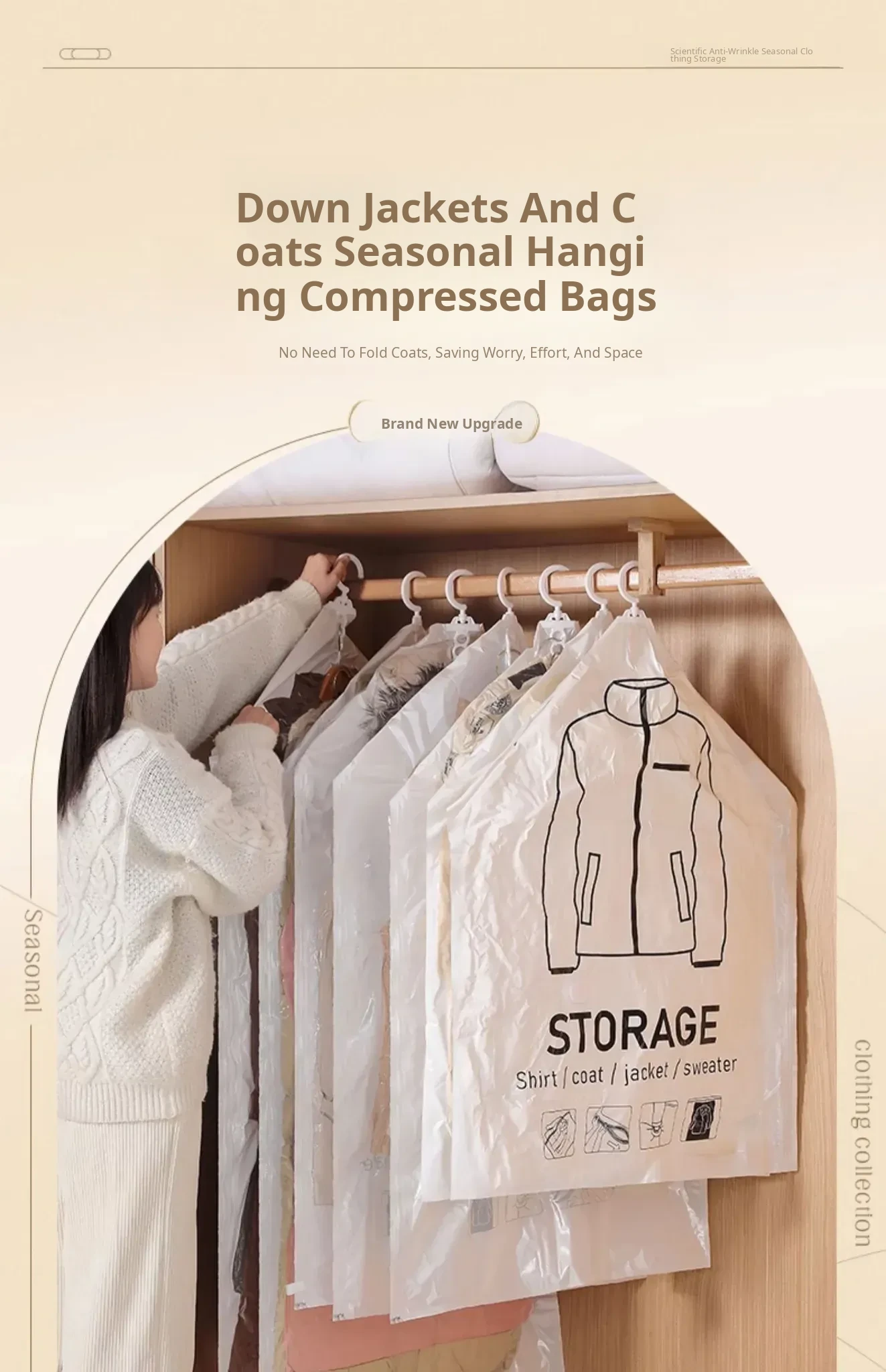 Dustproof Garment Bag for Down Jackets - Closet Hanging Cover for Coats and Suits, Home Use Vacuum Compression Storage Bag for Clothes - Keep Your Wardrobe Organized and Protected!