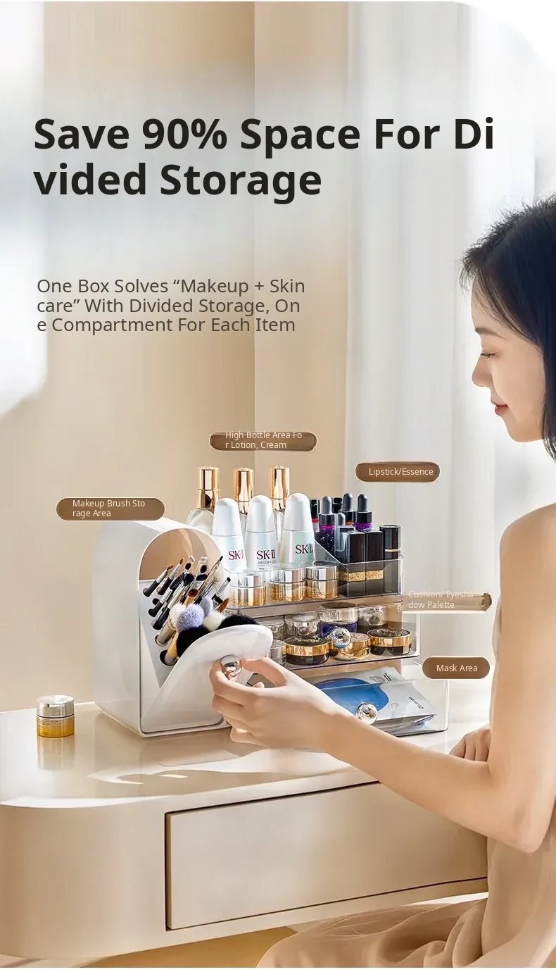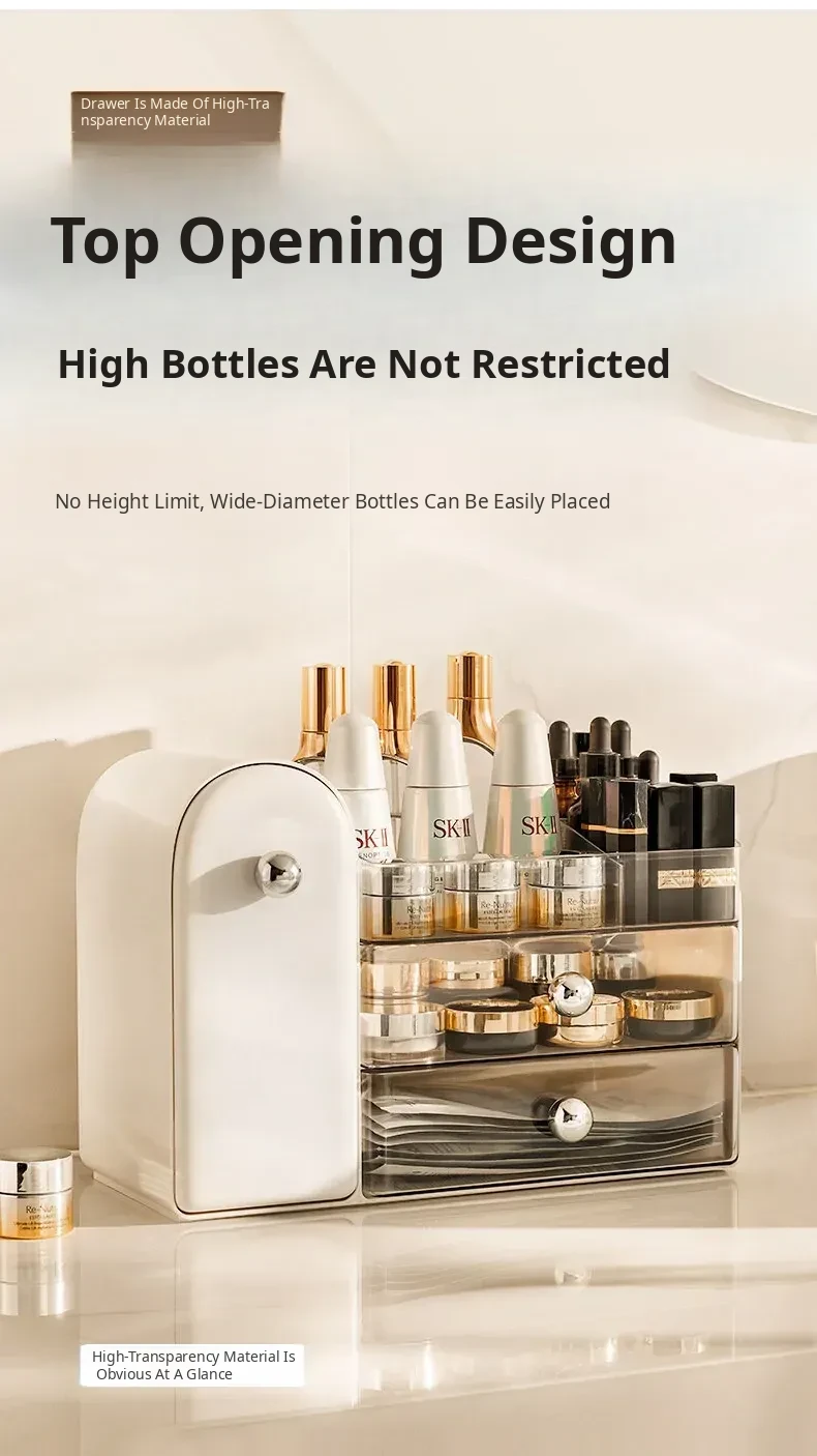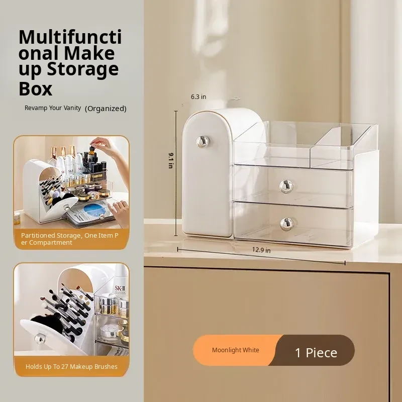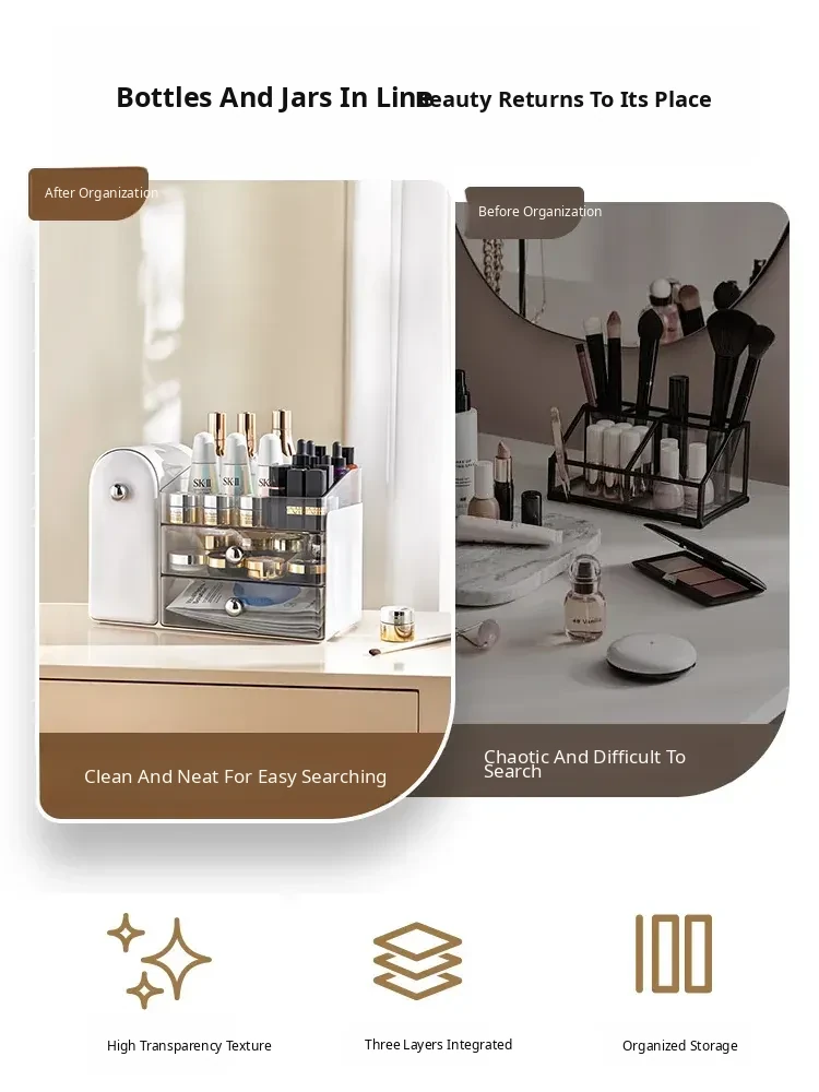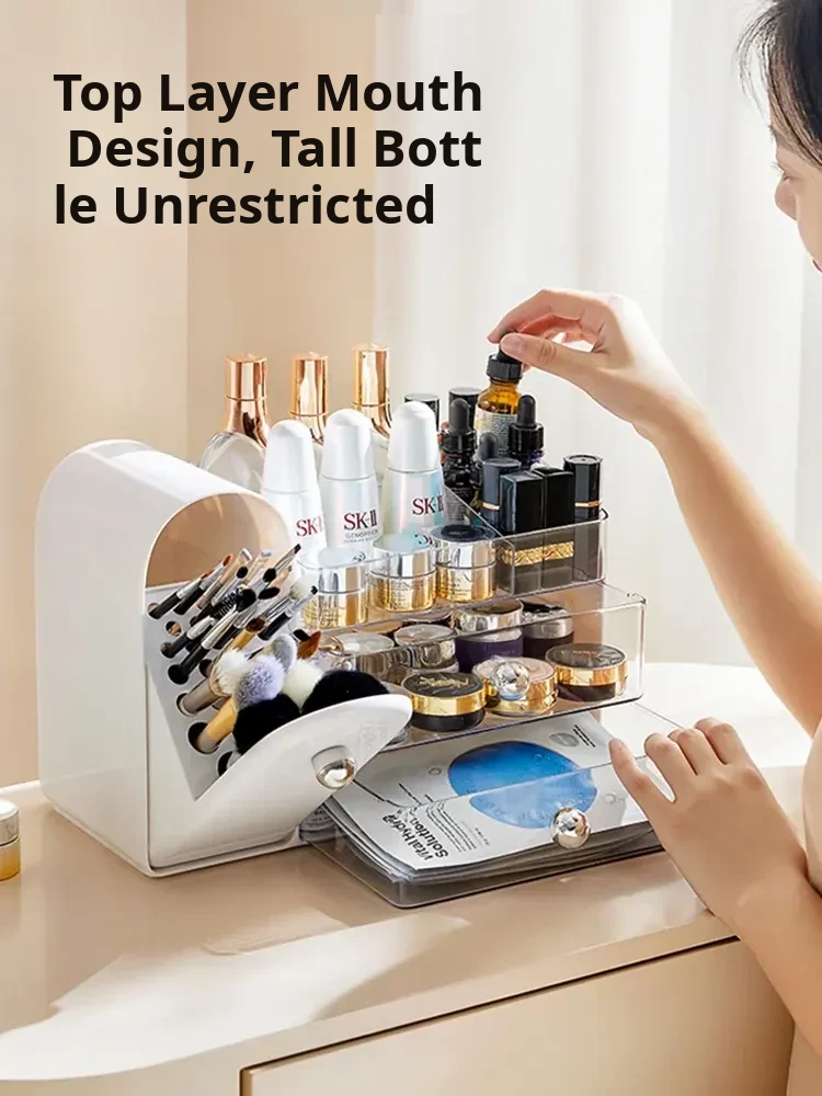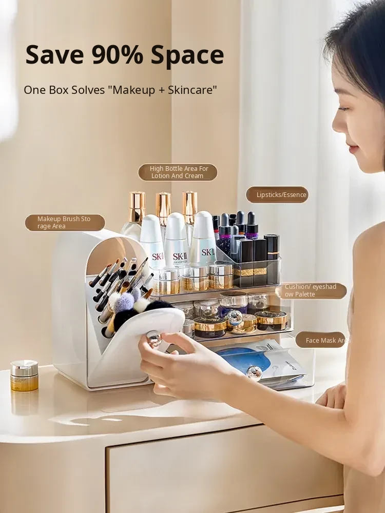 Elegant Cosmetic Organizer Box for Vanity - Premium Makeup Storage for Skincare, Face Masks, Brushes, and Lipsticks - Stylish Desktop Organizer Cabinet
