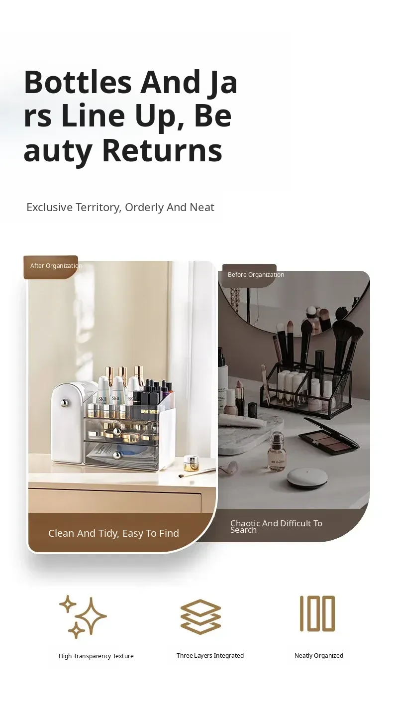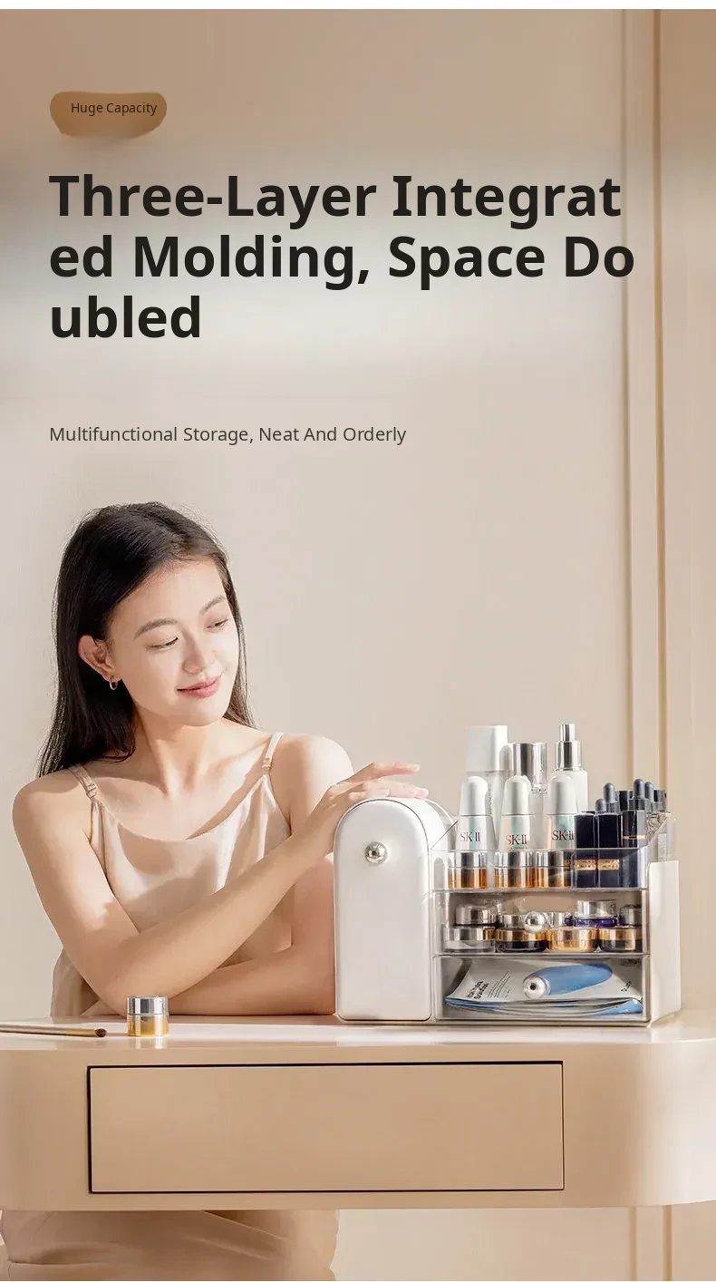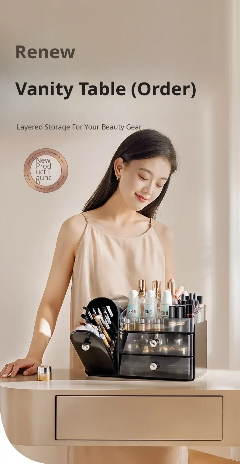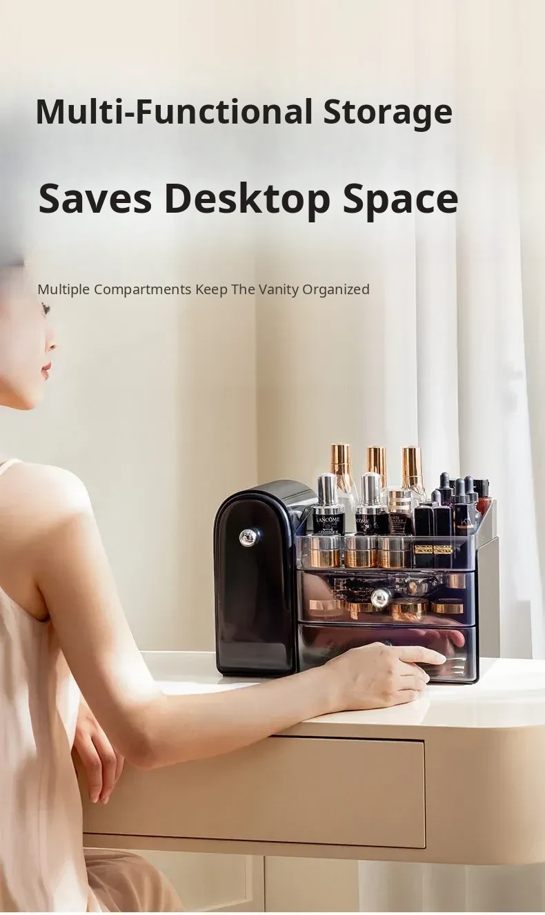 Elegant Cosmetic Organizer Box for Vanity - Premium Makeup Storage for Skincare, Face Masks, Brushes, and Lipsticks - Stylish Desktop Organizer Cabinet