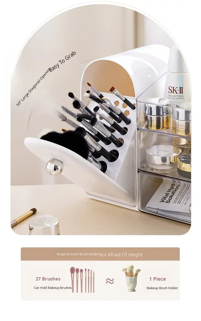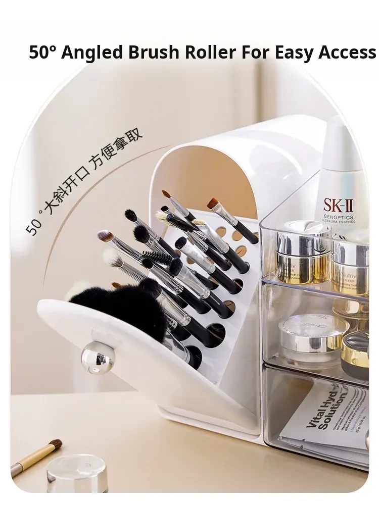 [Moonlight White] Cosmetic Storage Box⭐Slanted Brush Barrel, Multi-Layer Storage