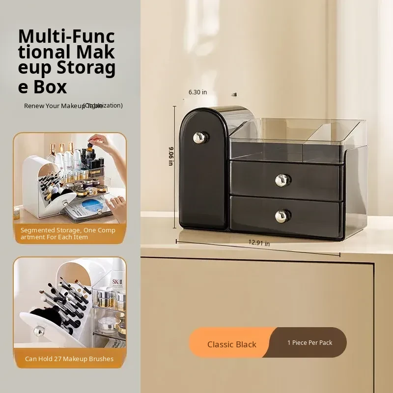 [Classic Black] Cosmetic Storage Box ⭐ Slanted Brush Barrel, Multi-Layer Storage
