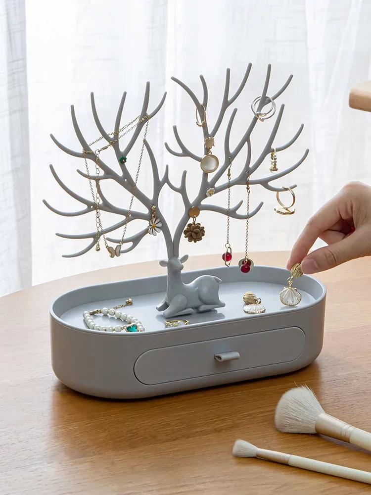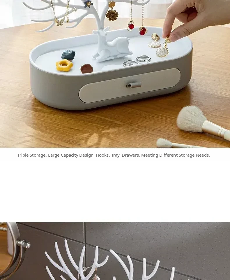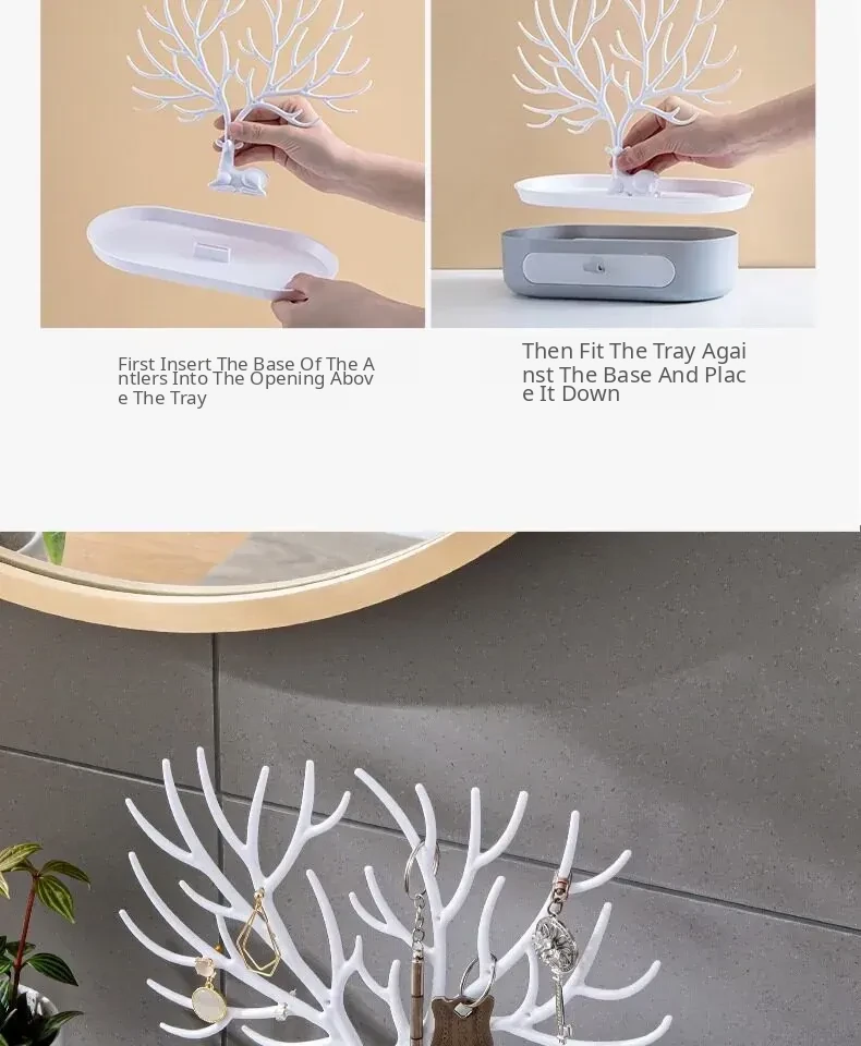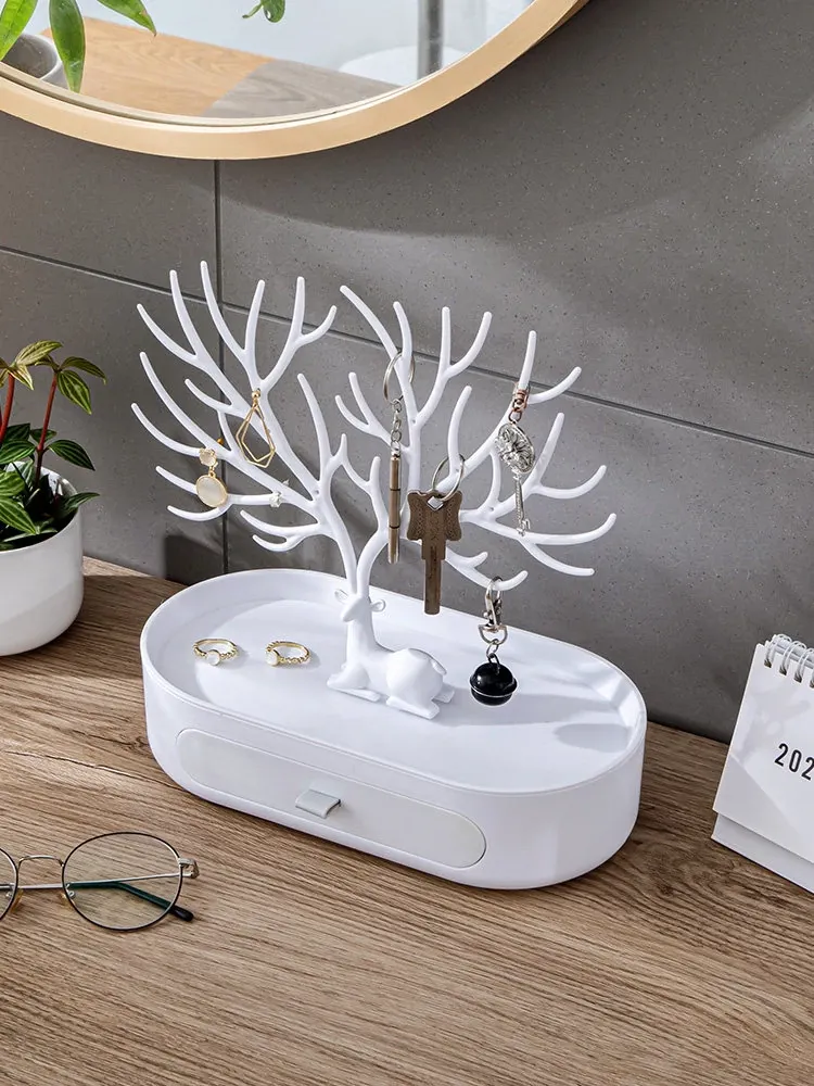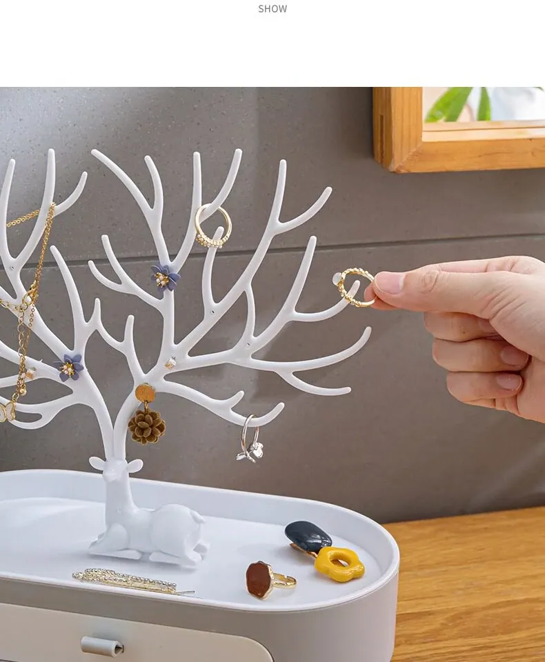 Home Jewelry Organizer - Deer Antler Display Stand for Earrings, Studs, Necklaces, and Hair Accessories - Elegant Storage Box for Your Vanity