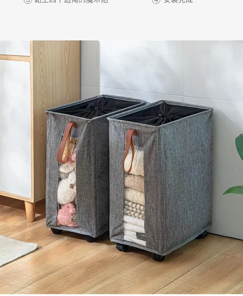 Large Capacity Laundry Basket with Wheels - Stylish and Functional Foldable Hamper for Home Use - Trendy Ins Style Dirty Clothes Storage Bin