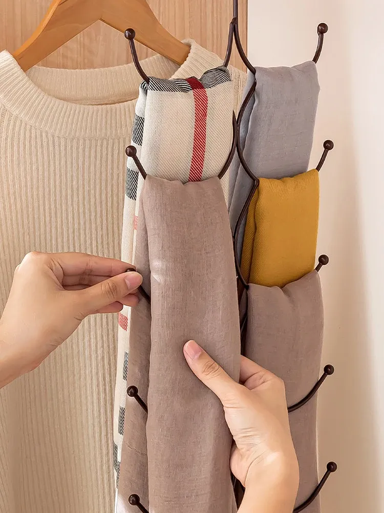Multi-Functional Scarf and Tie Rack - Home Storage Solution for Scarves, Ties, Belts, and Stockings - Space-Saving Organizer for Neat and Tidy Closets