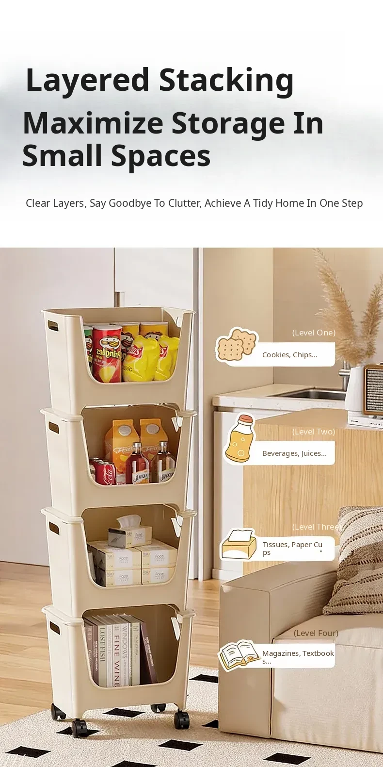 [Off-White Four-Layer] Snack Storage Rack⭐Multiple Layers Can Be Stacked