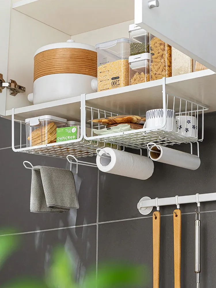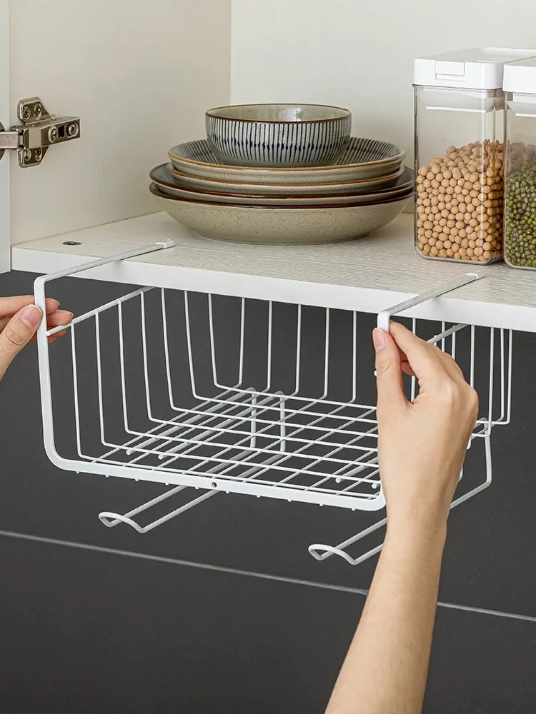 Multi-Tiered Kitchen Wall Cabinet Organizer - Hanging Storage Rack with Baskets for Efficient Space Management and Easy Access