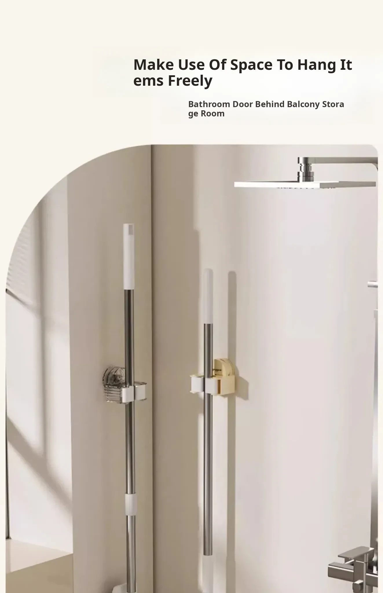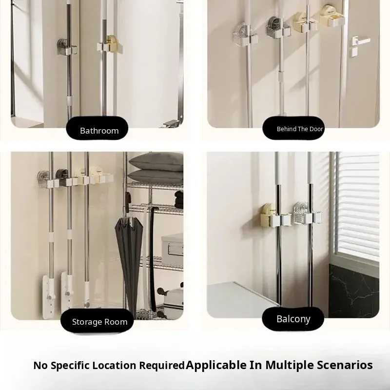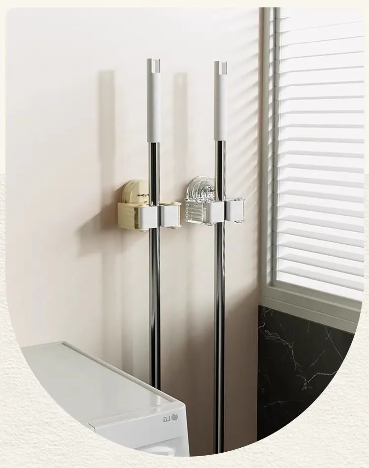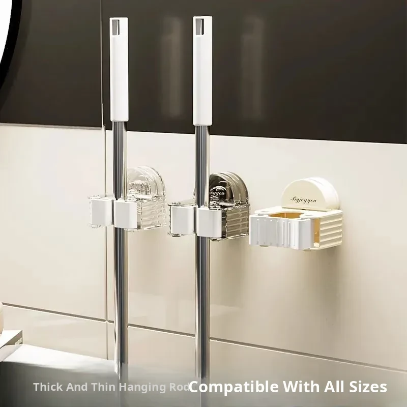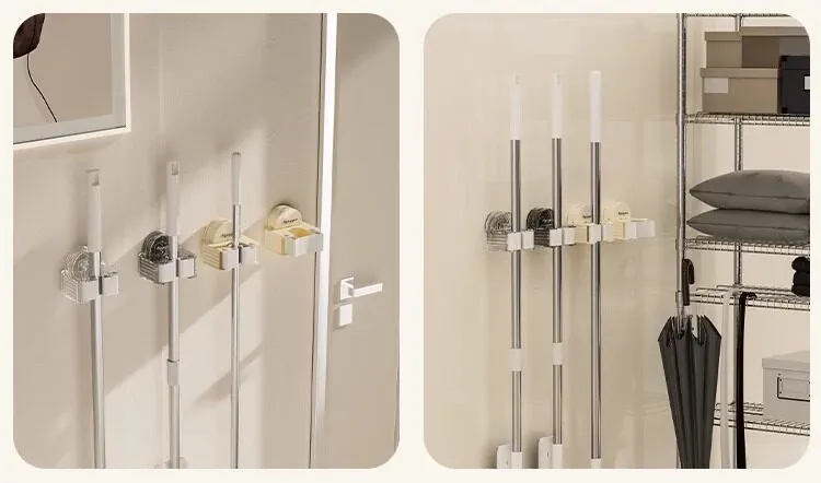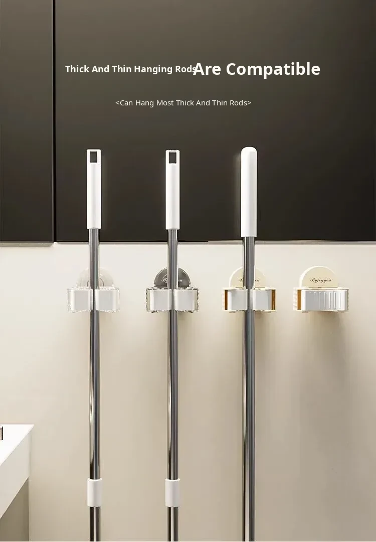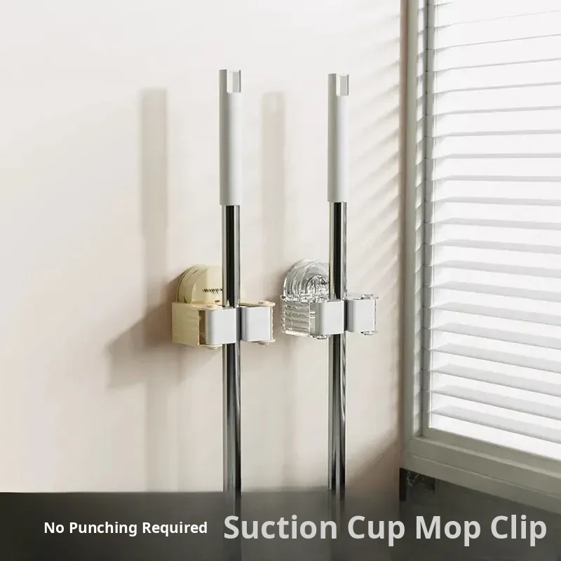 No Drill Mop Hook with Suction Cup - Wall-Mounted Mop Holder for Bathroom - Adhesive Mop Storage Rack with Clip for Easy Cleaning and Organization
