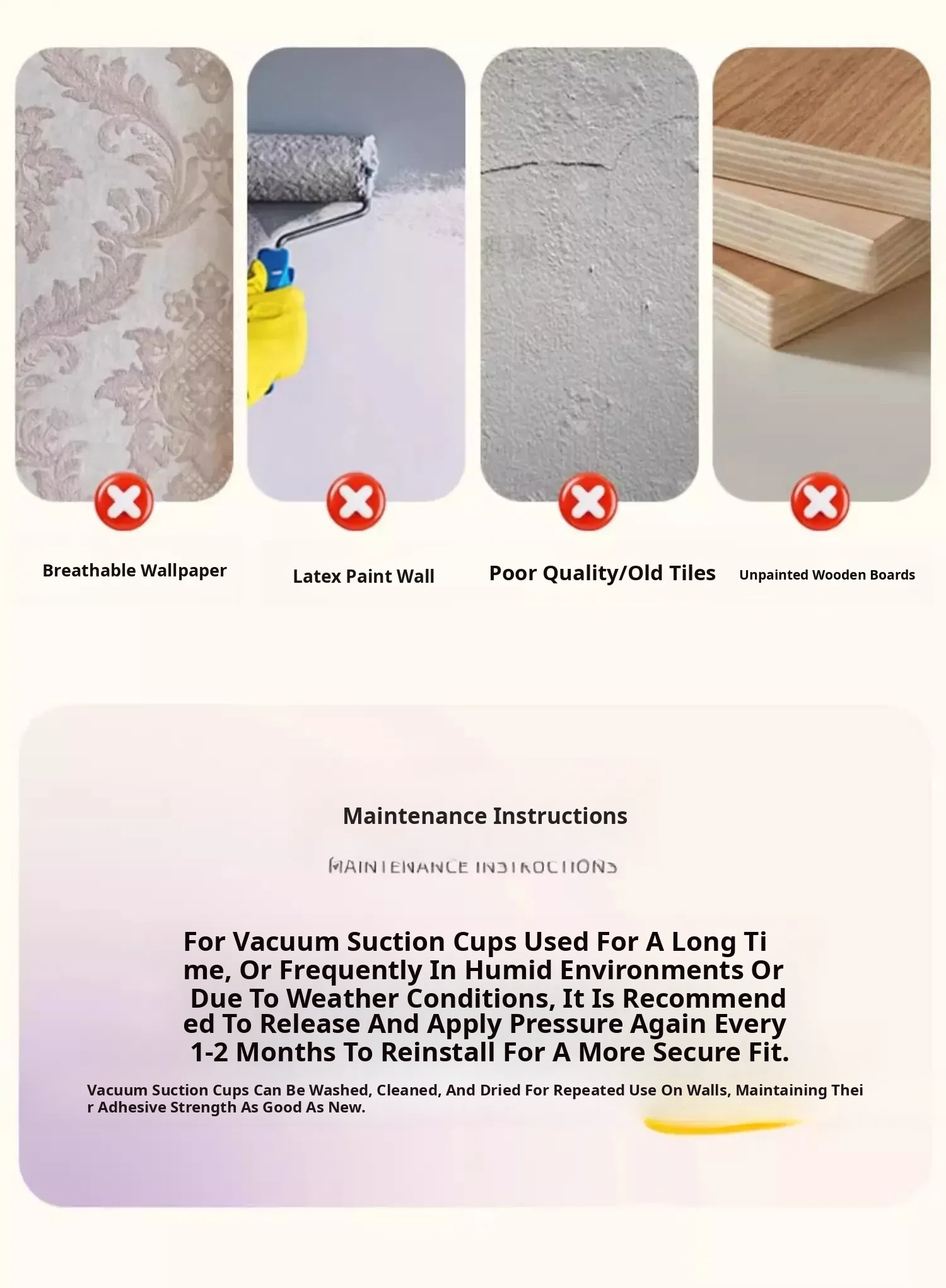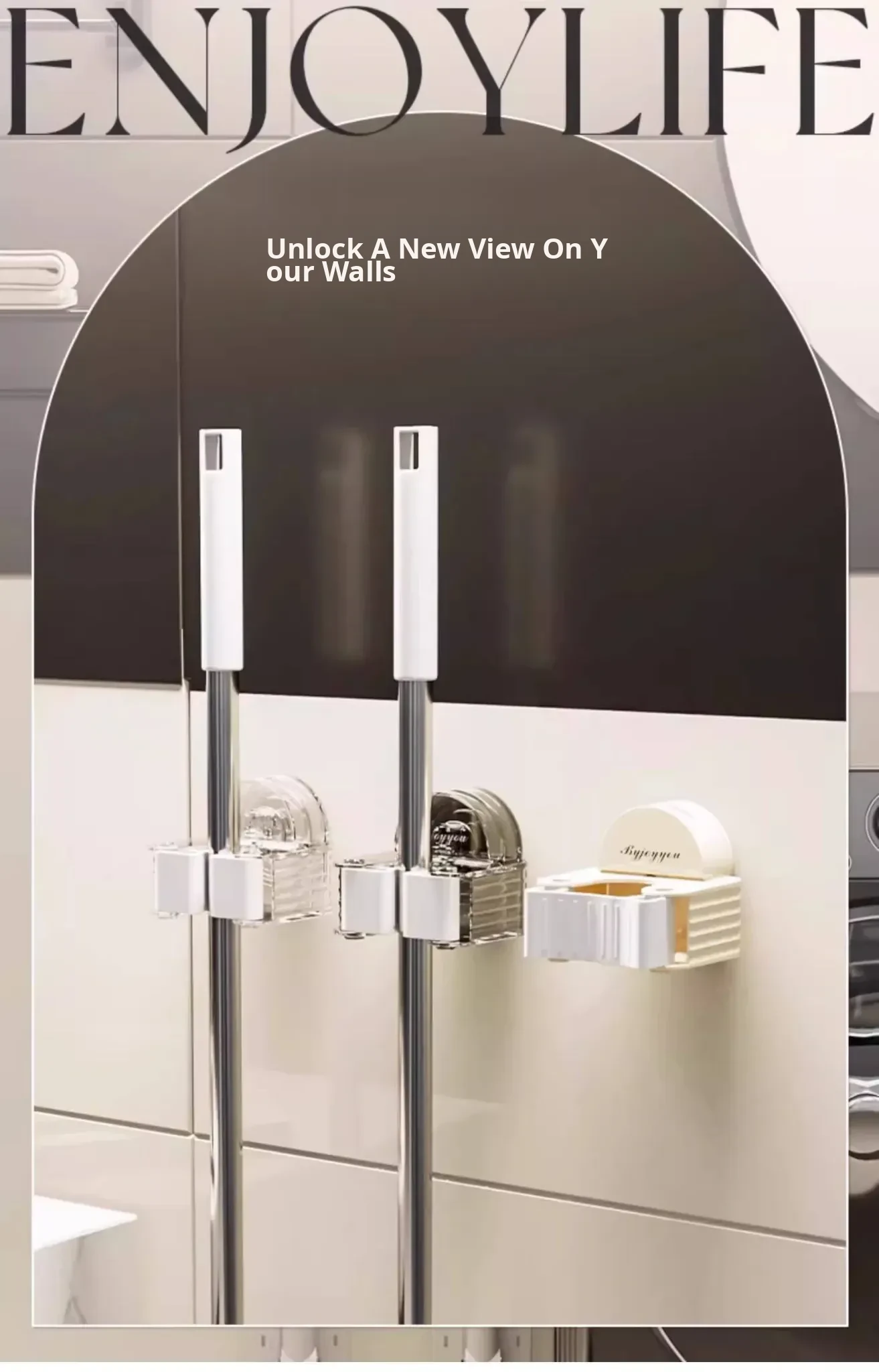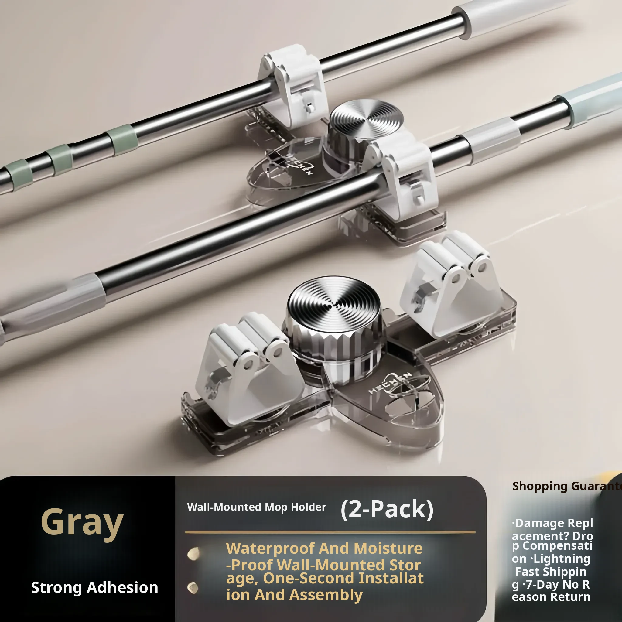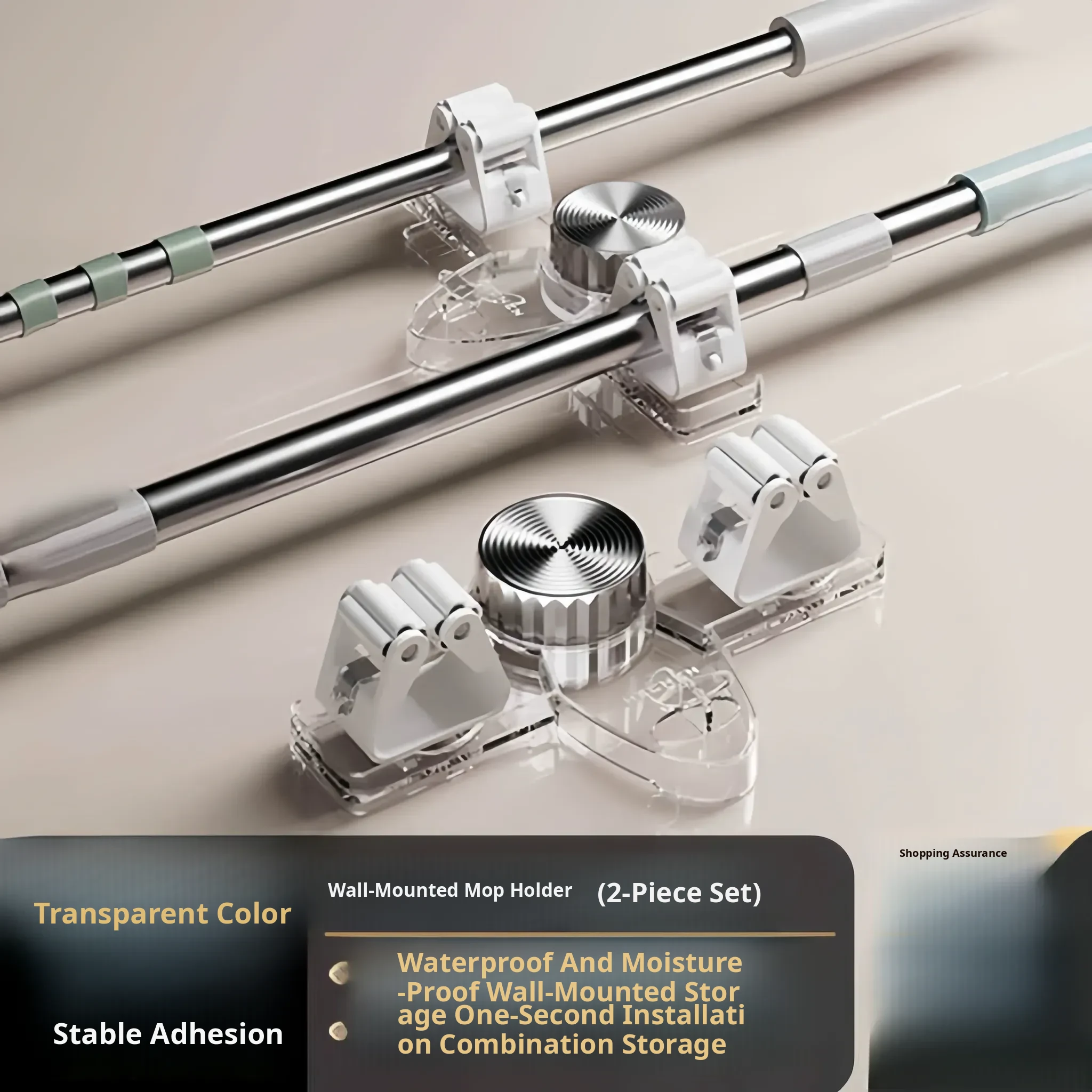 No Drill Mop Hook with Suction Cup - Wall-Mounted Mop Holder for Bathroom - Adhesive Mop Storage Rack with Clip for Easy Cleaning and Organization