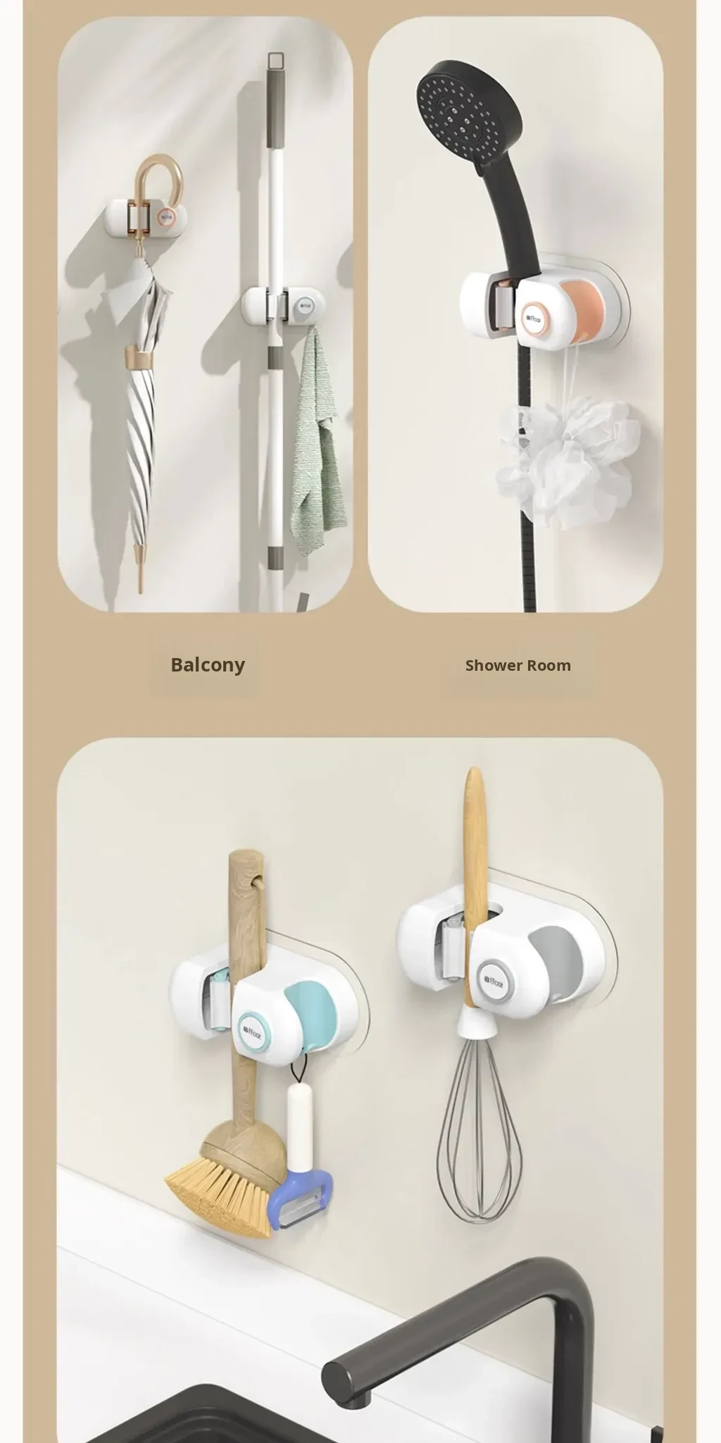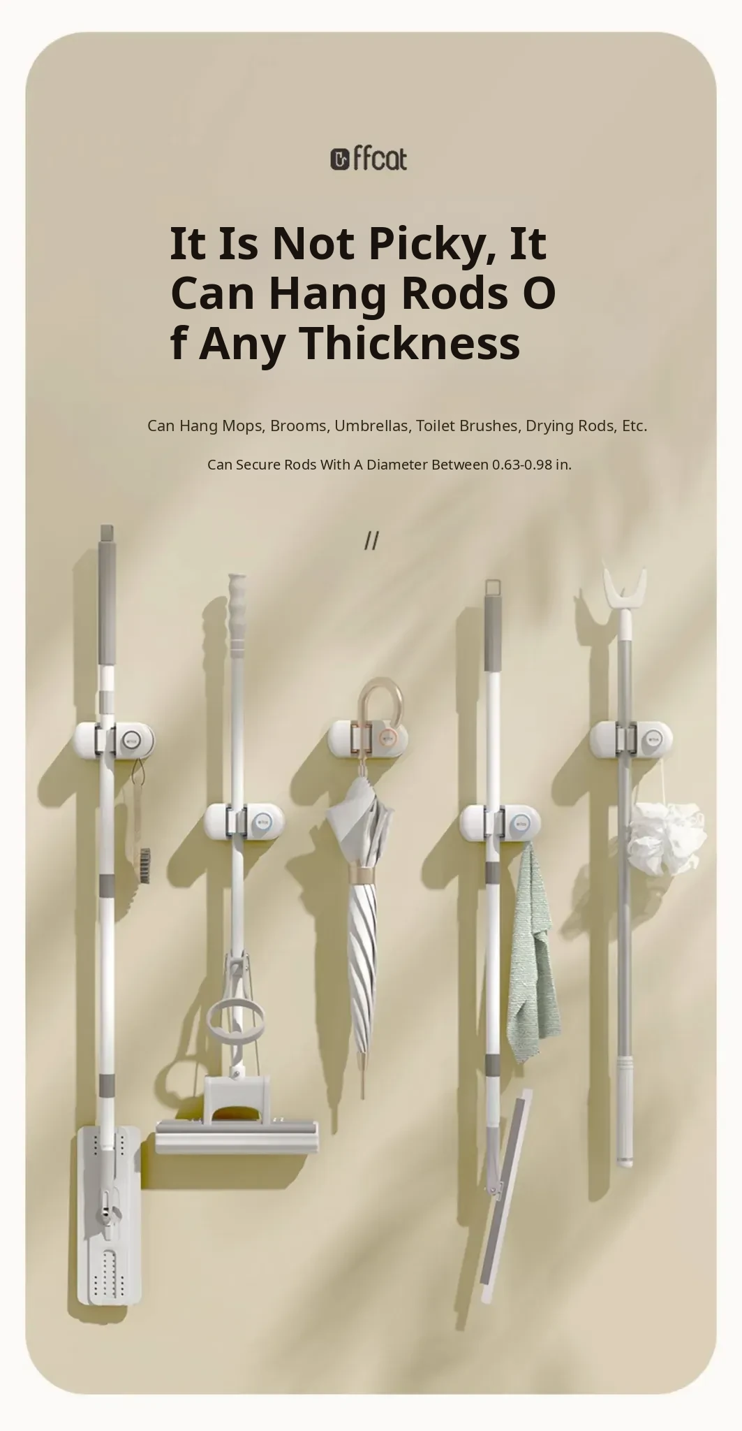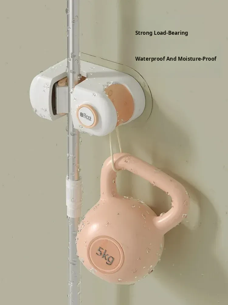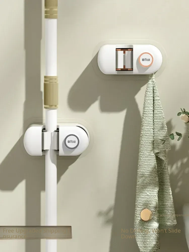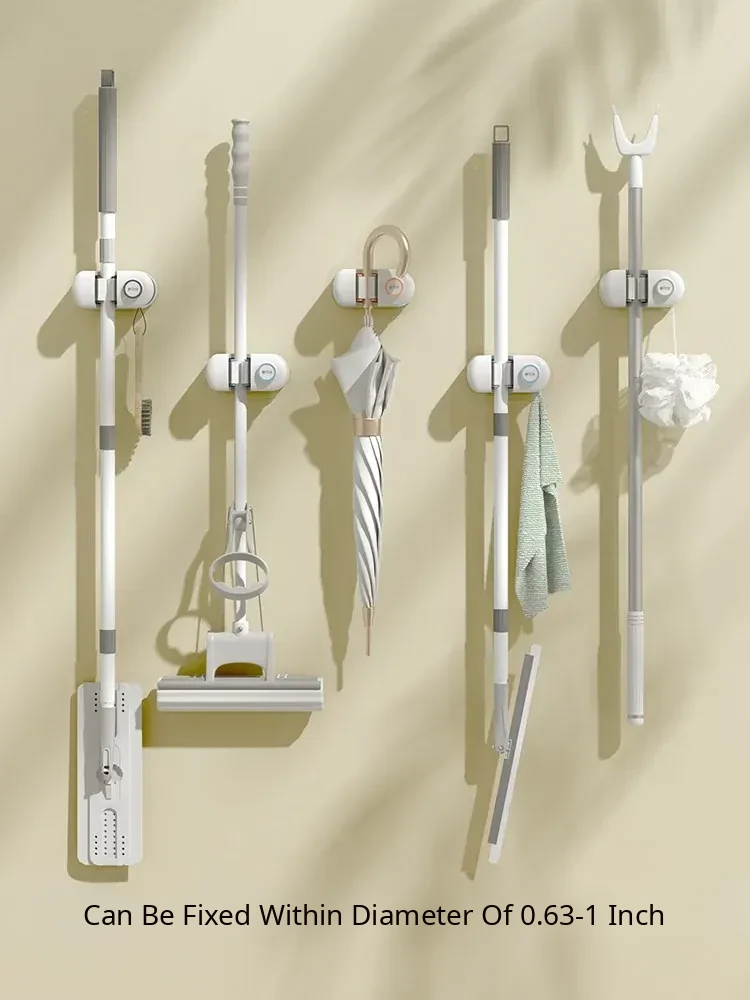 Non-Drill Wall-Mounted Mop Holder - Strong Adhesive Mop Clip for Bathroom and Toilet - No Trace Mop Hook and Rack for Easy Storage and Organization