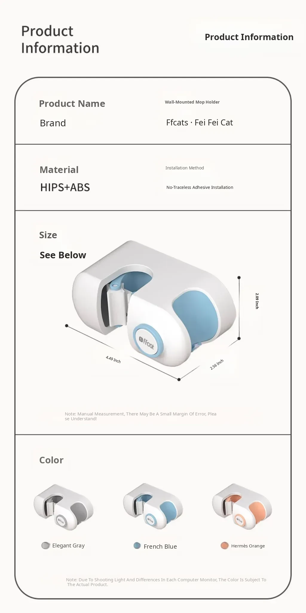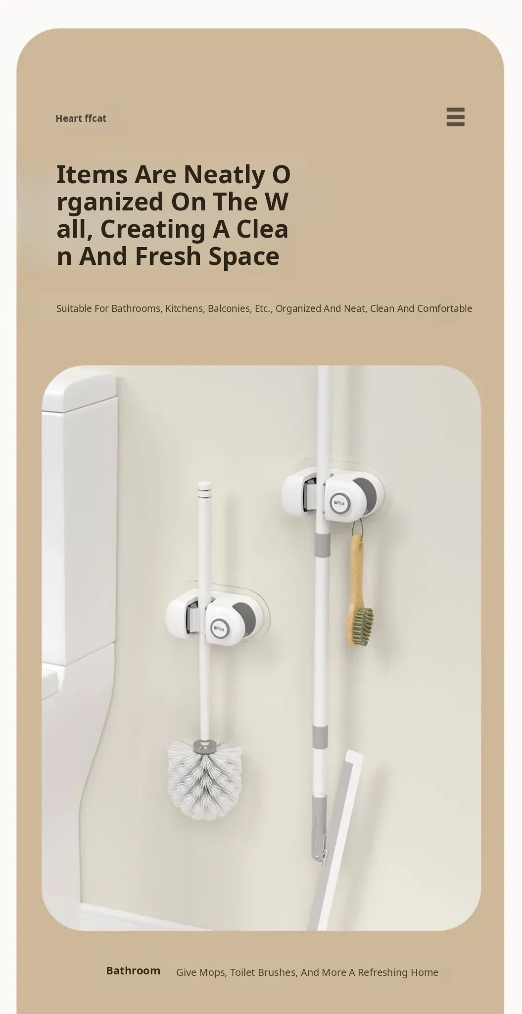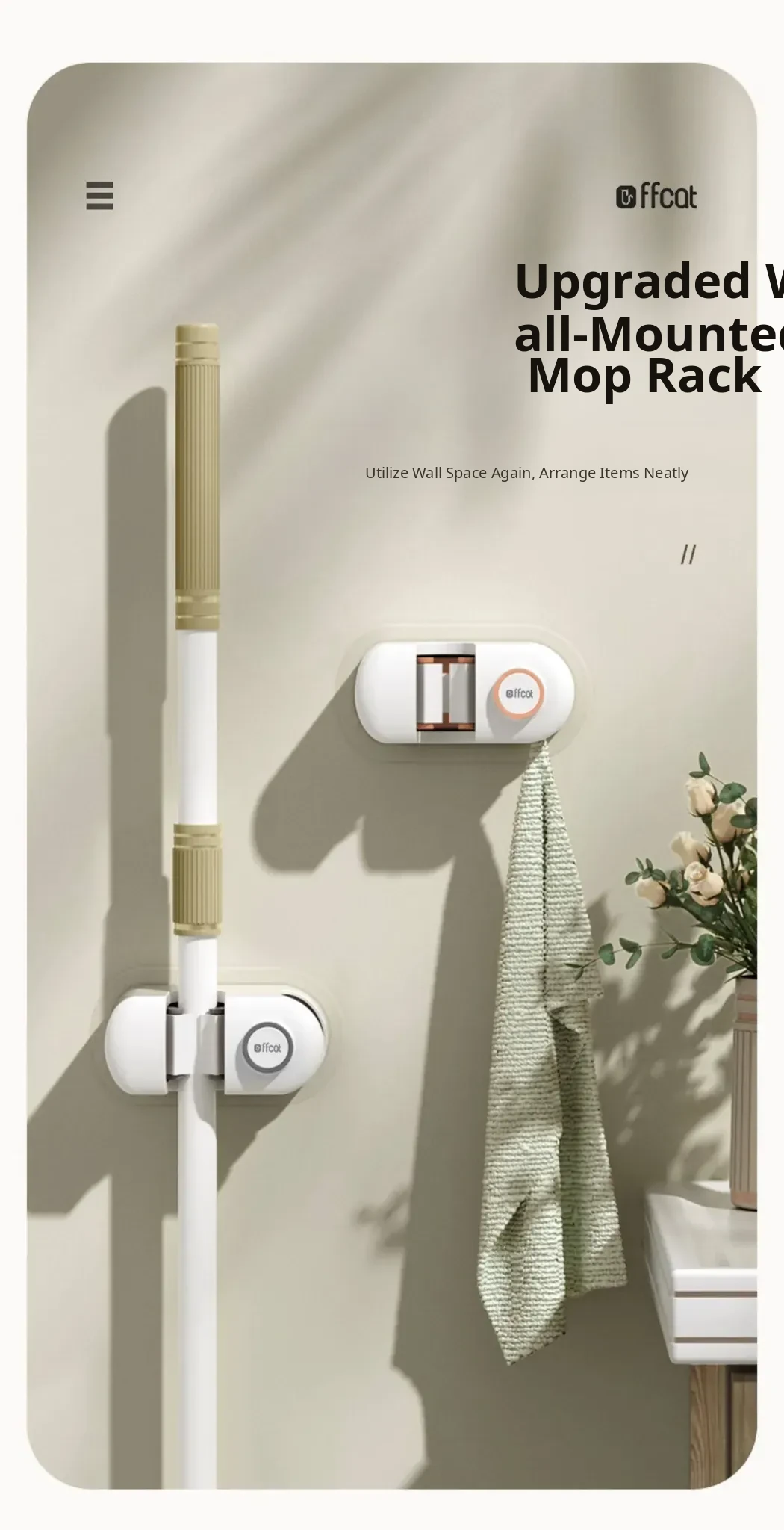 Non-Drill Wall-Mounted Mop Holder - Strong Adhesive Mop Clip for Bathroom and Toilet - No Trace Mop Hook and Rack for Easy Storage and Organization