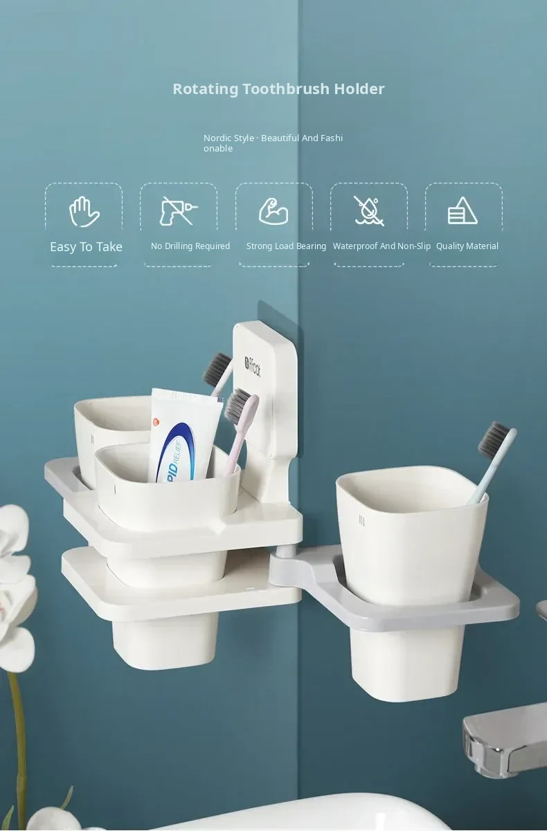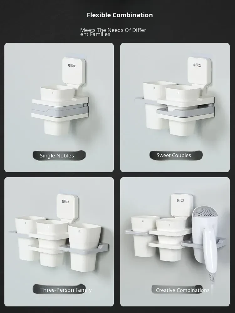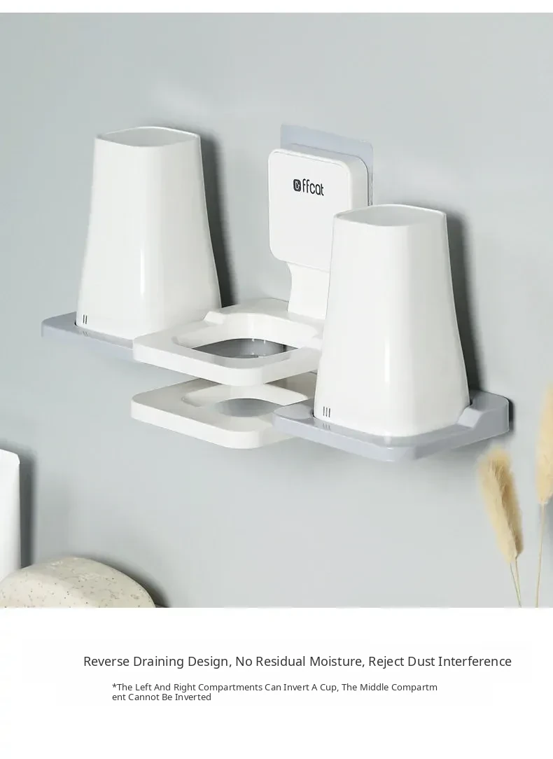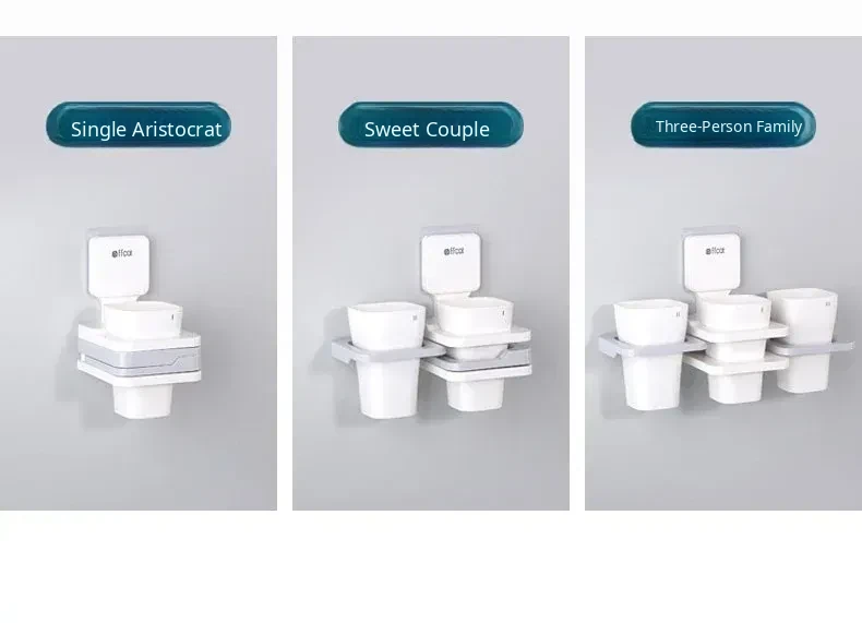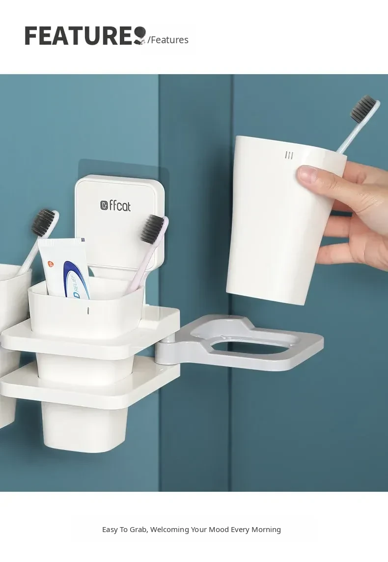 Non-Punching Wall-Mounted Toothbrush Holder with Cup, Elegant Bathroom Organizer for Family of Three – Perfect for Countertops and Toilets