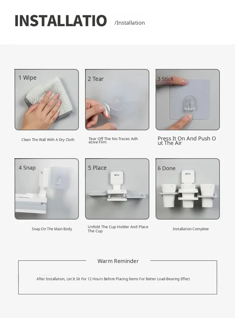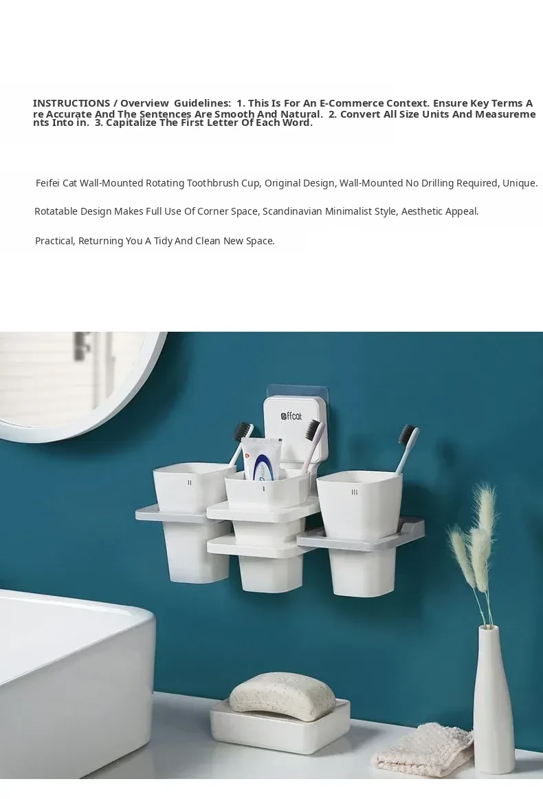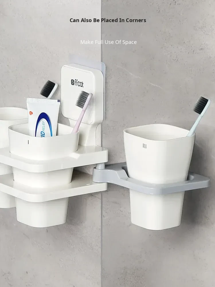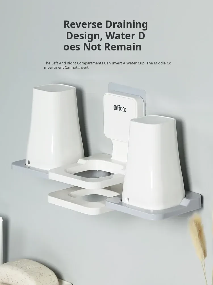 Non-Punching Wall-Mounted Toothbrush Holder with Cup, Elegant Bathroom Organizer for Family of Three – Perfect for Countertops and Toilets