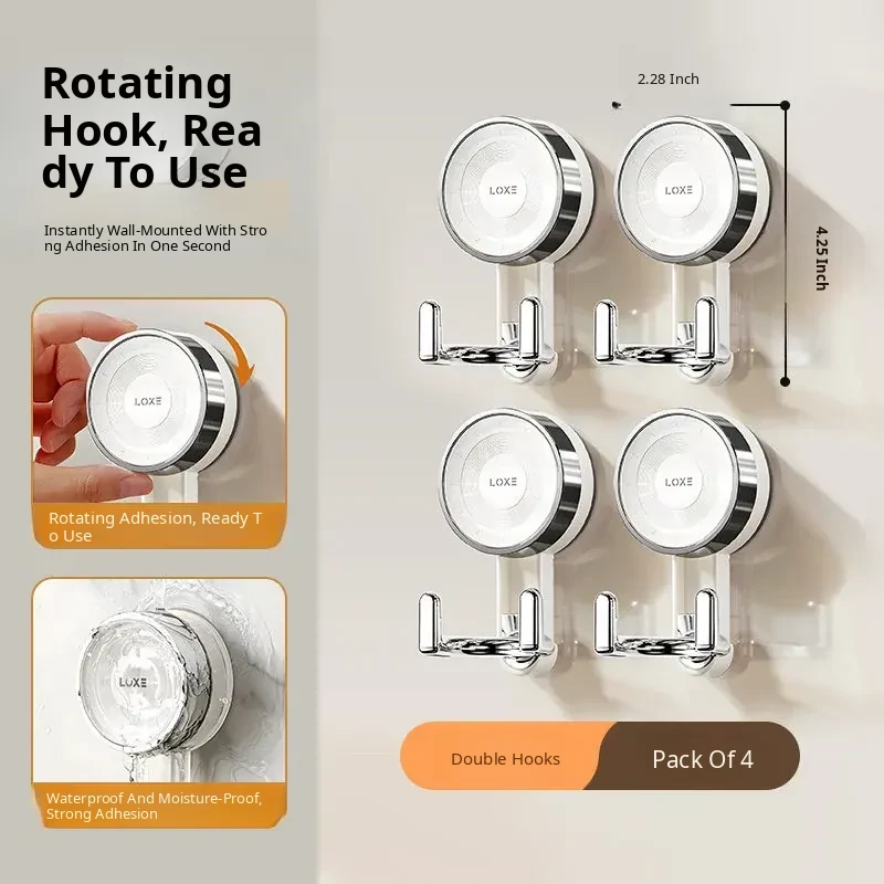 [Double Hook-4 Pack] Vacuum Suction Cup/Removable and Reusable/Strong Load-Bearing