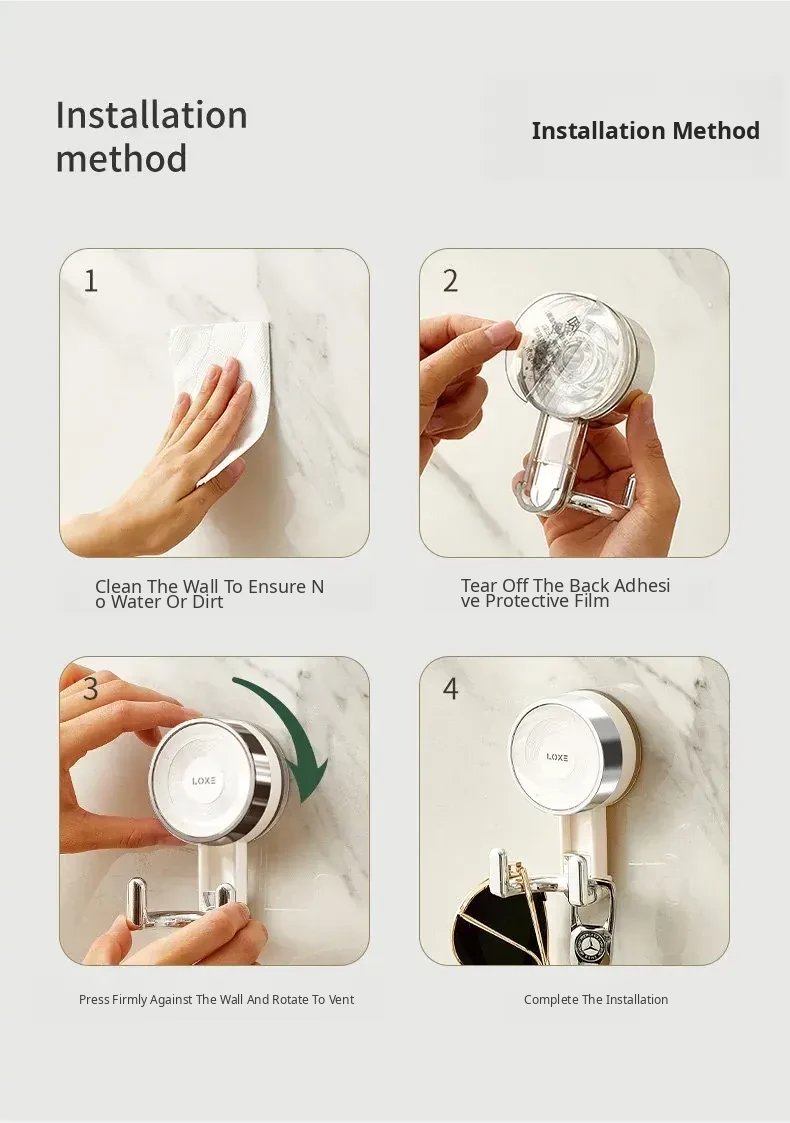 [Single Hook - 4 Pieces] Vacuum Suction Cup/Removable and Reusable/Strong Load-Bearing