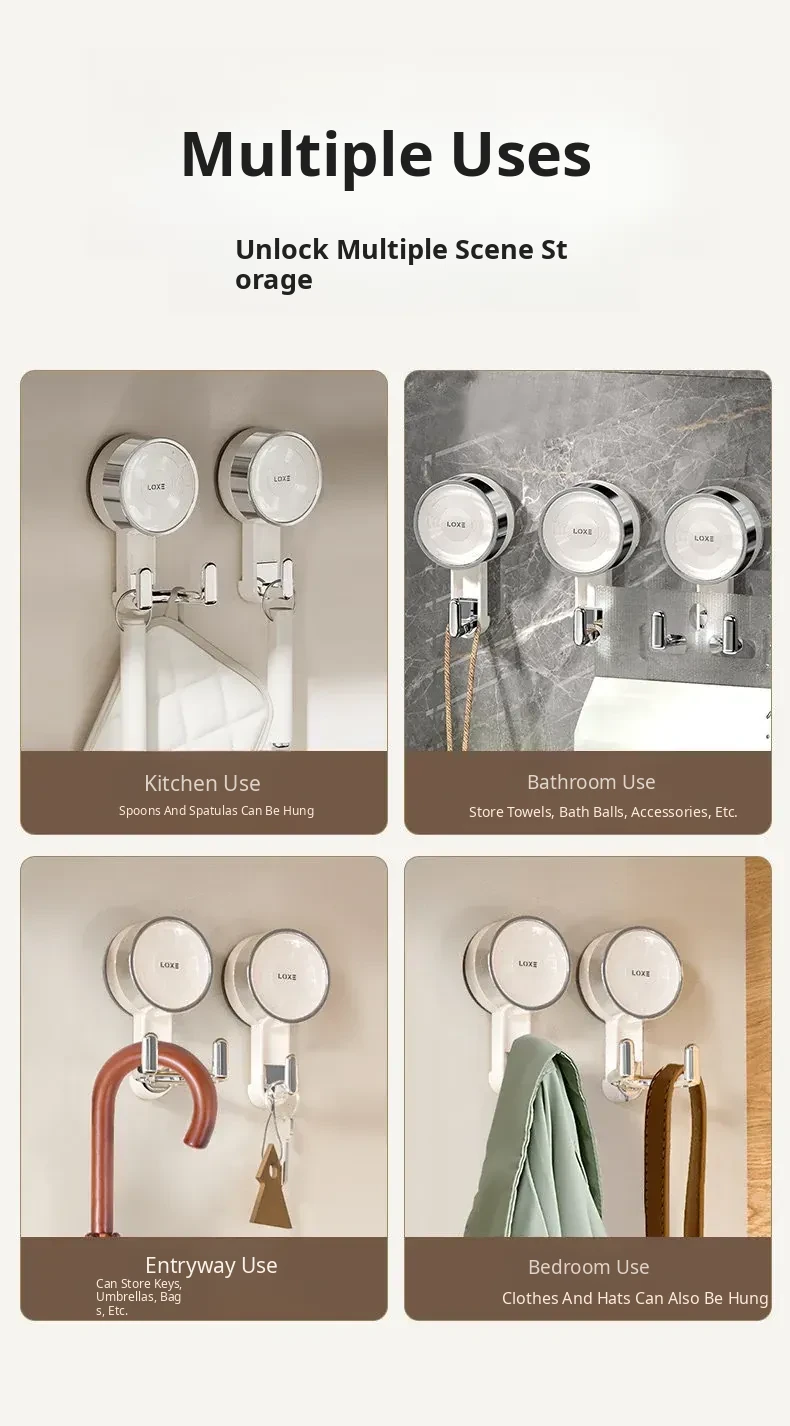 Powerful No-Drill Vacuum Suction Hooks - Heavy-Duty, No-Trace Wall Adhesive Hooks for Kitchen, Bathroom & Door – Effortlessly Organize Your Space!