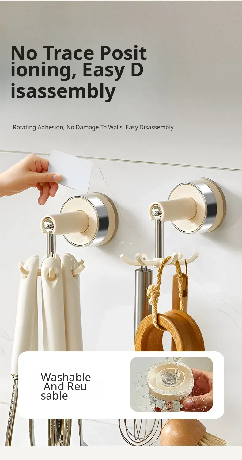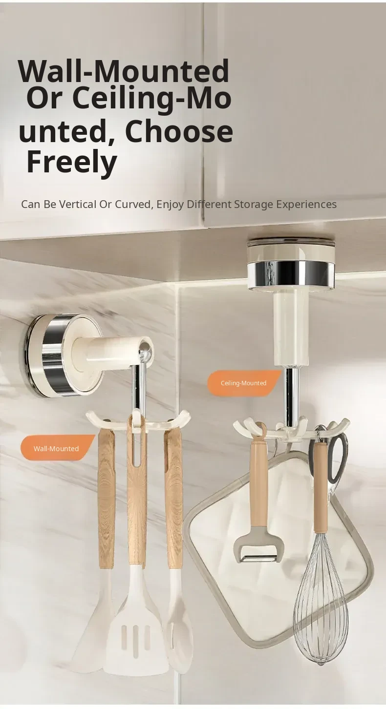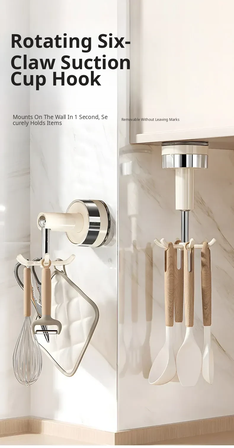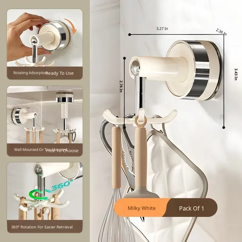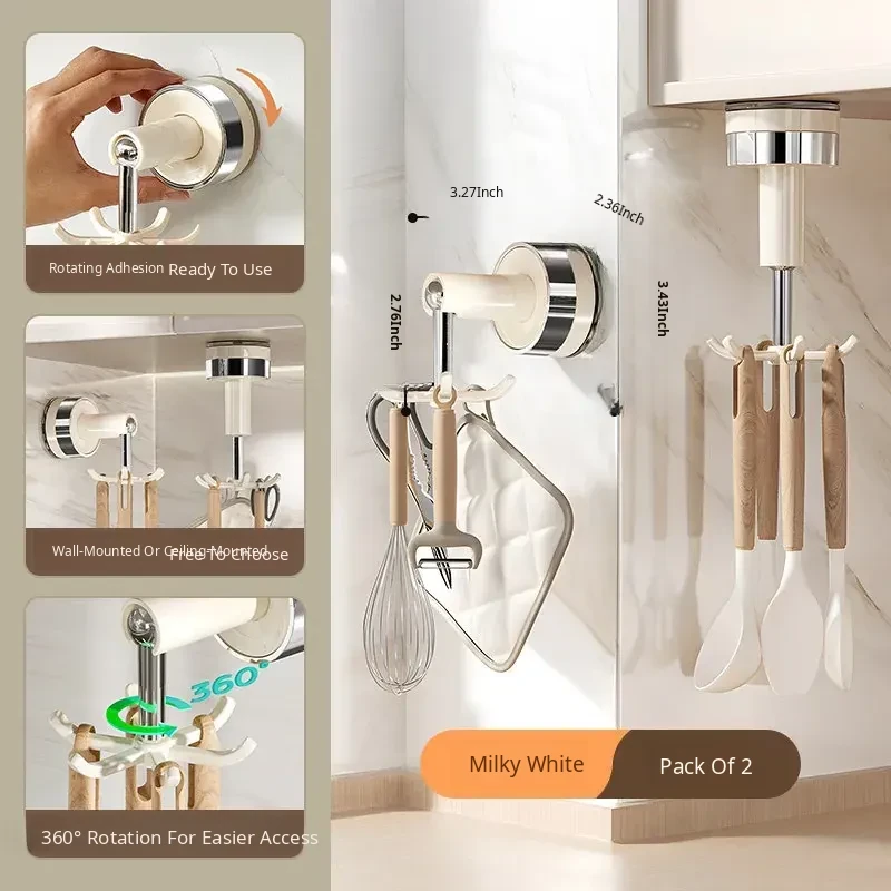 Powerful Rotating Suction Cup Hooks for Kitchen - No Drill Wall-Mounted Adhesive Hooks for Spatulas, Spoons, and Utensils Storage Rack, Perfect for Organizing Your Cooking Space!