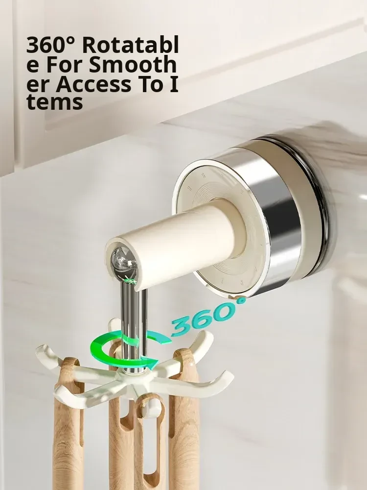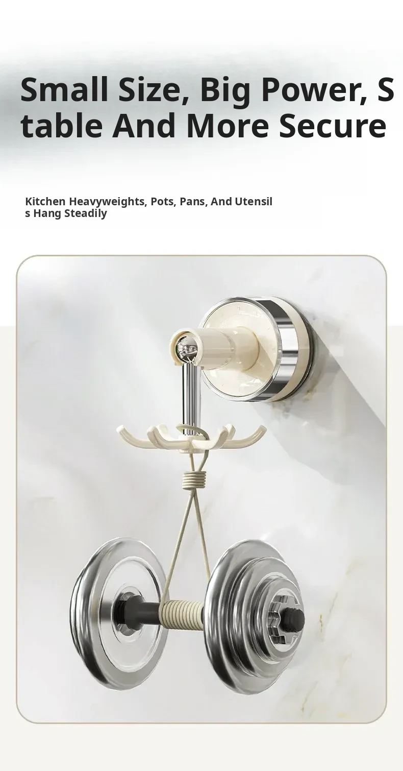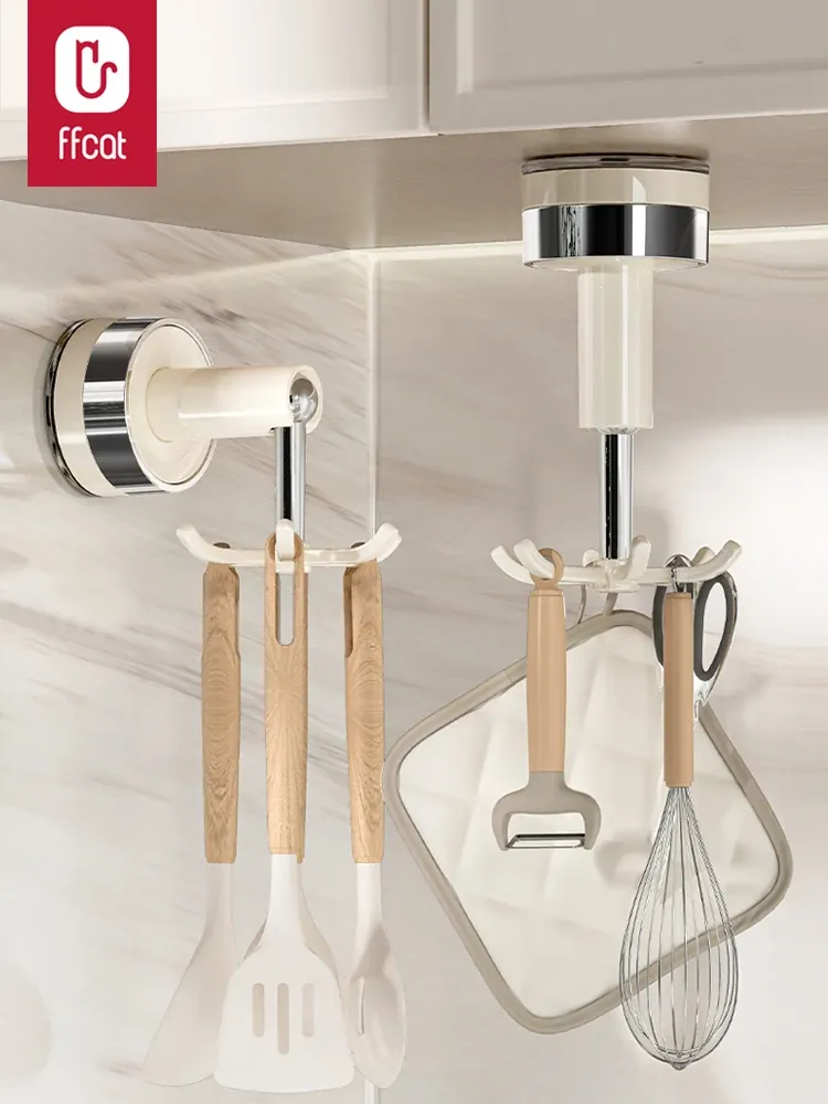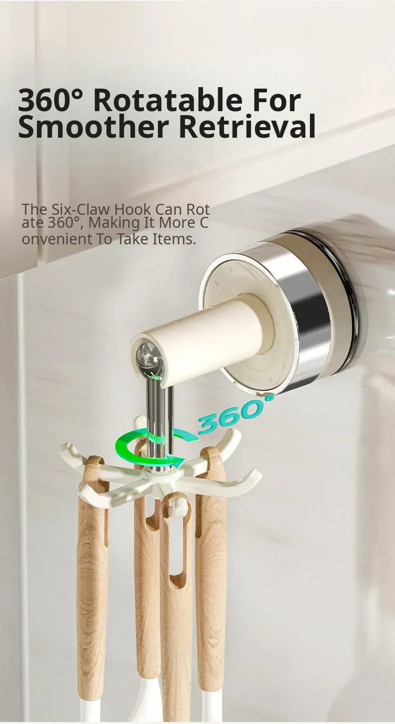 Powerful Rotating Suction Cup Hooks for Kitchen - No Drill Wall-Mounted Adhesive Hooks for Spatulas, Spoons, and Utensils Storage Rack, Perfect for Organizing Your Cooking Space!