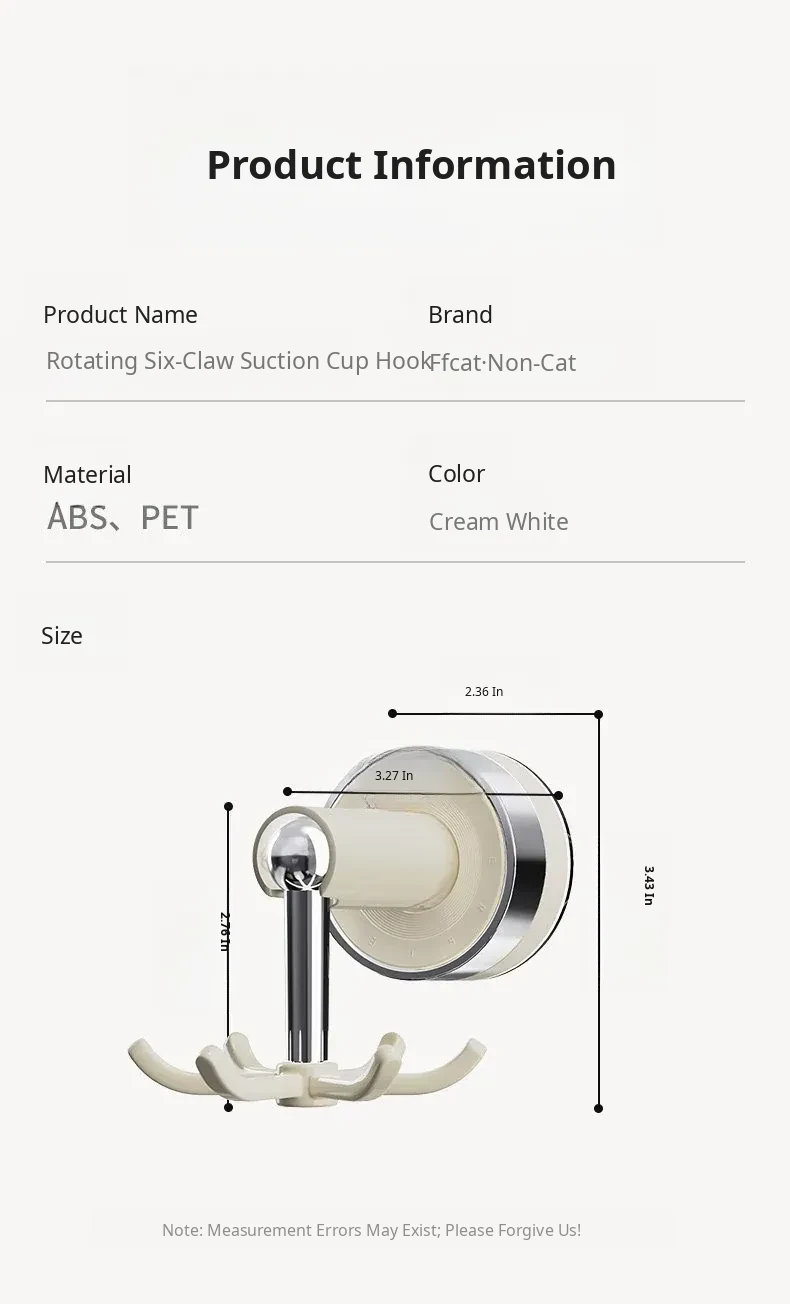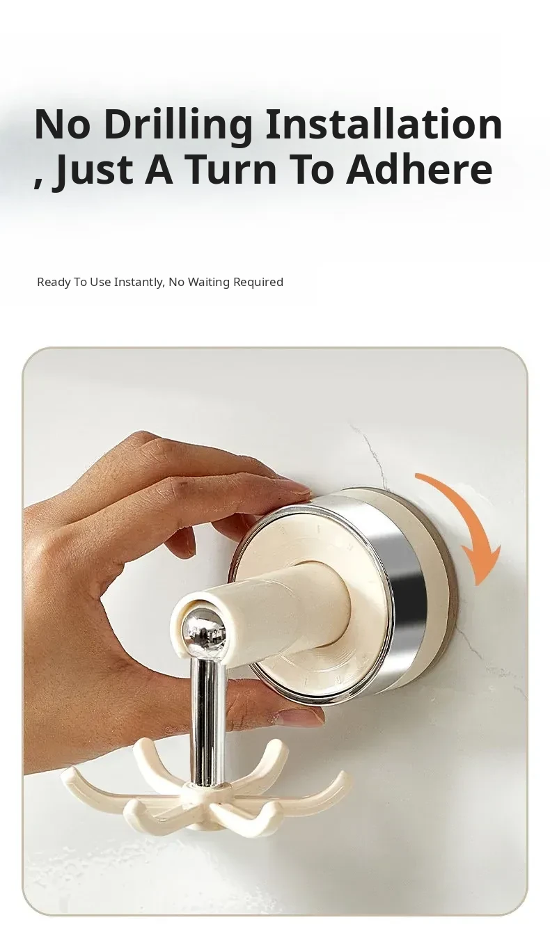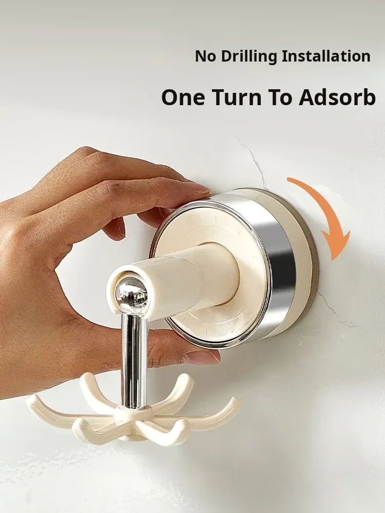 [Cream White-1 Pack] Suction Cup 360°Rotating Hook-6 Hooks