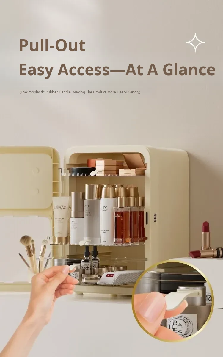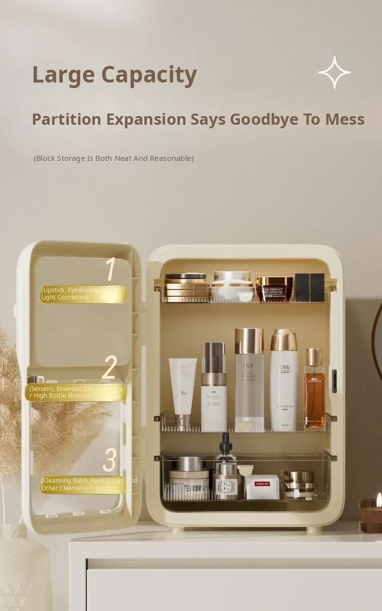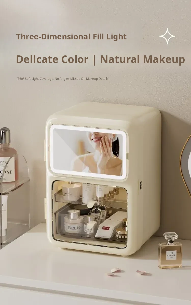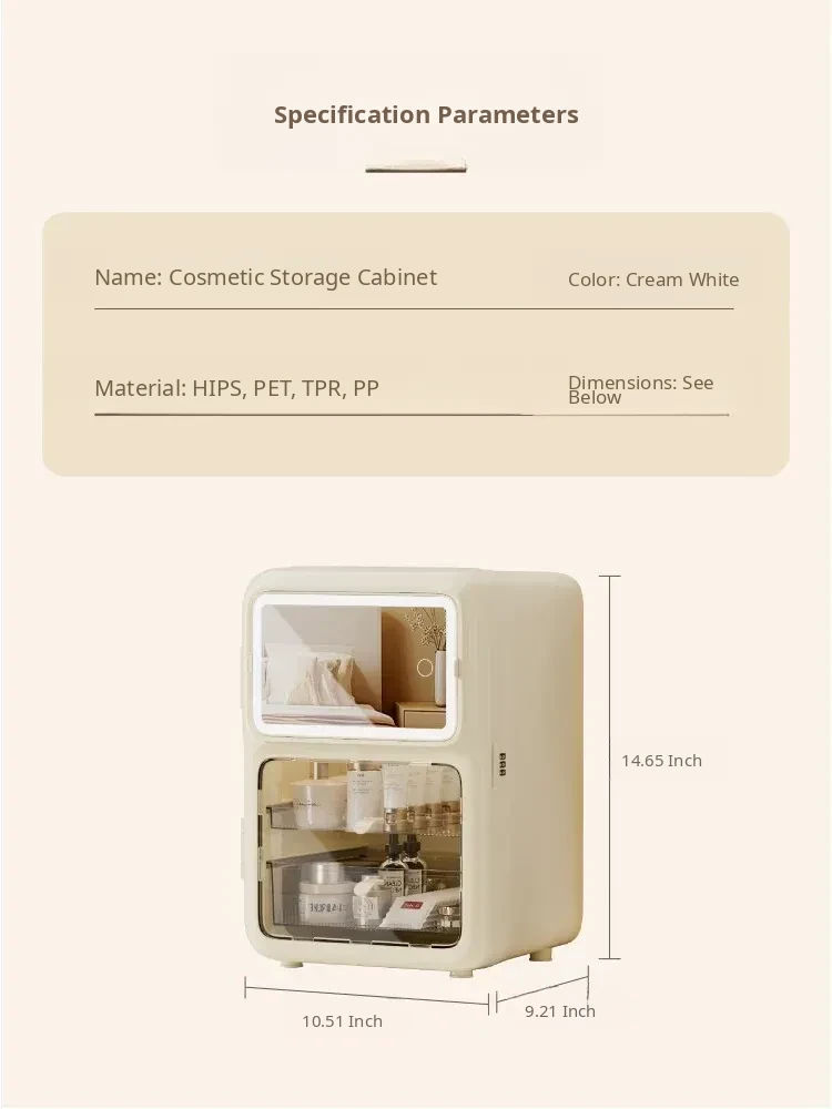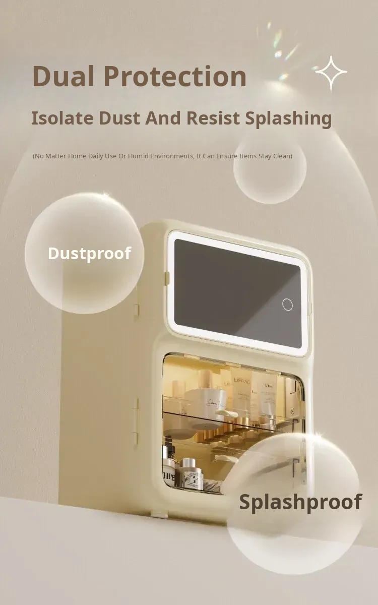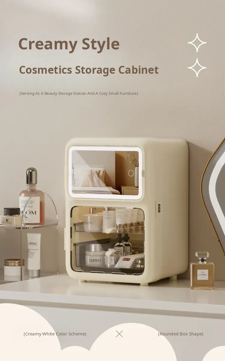 Premium Makeup Organizer Box - Elegant Desktop Storage for Cosmetics, Skincare, and Accessories. Dustproof and Spacious Divided Storage Cabinet for a Clutter-Free Vanity.