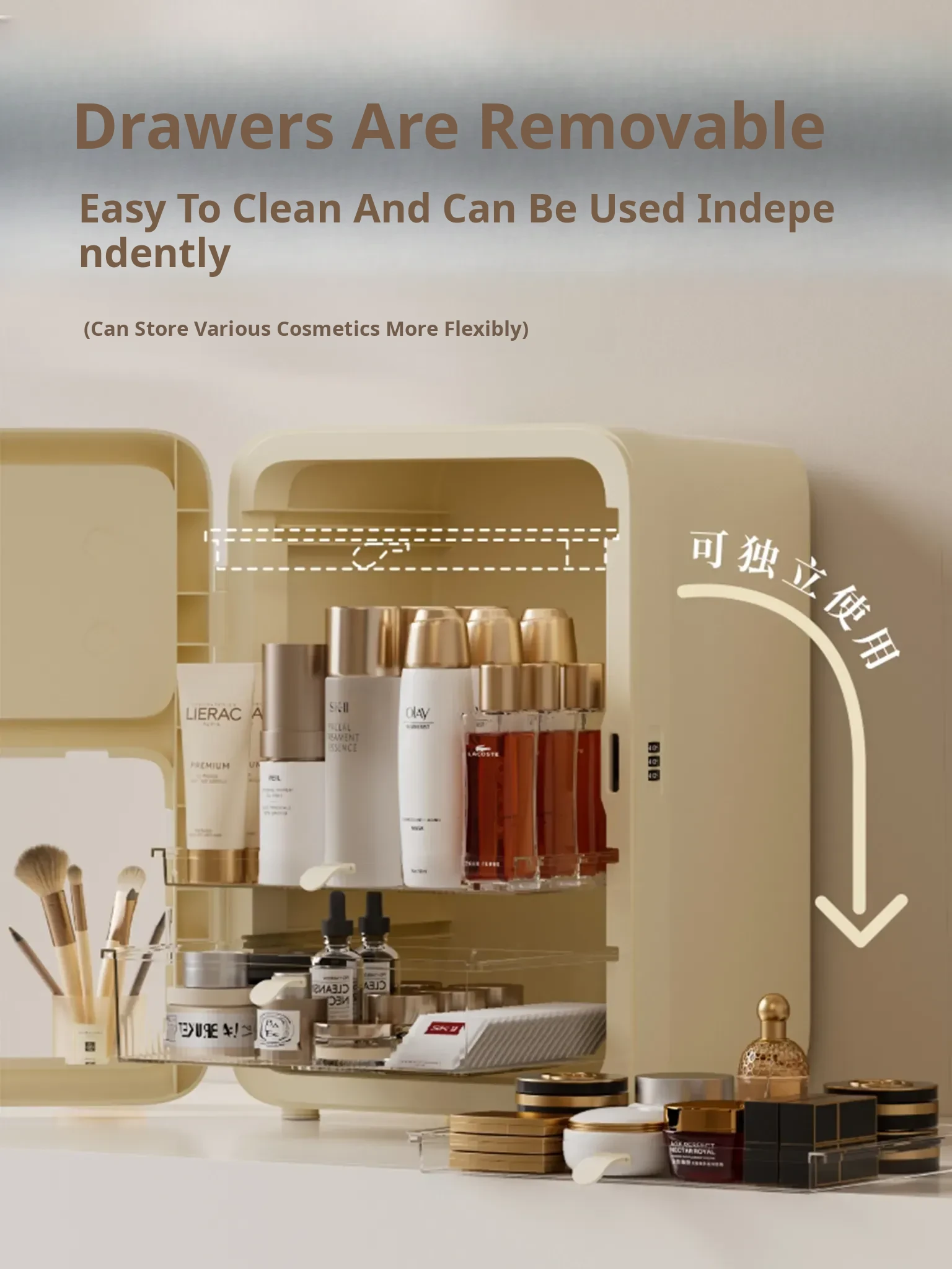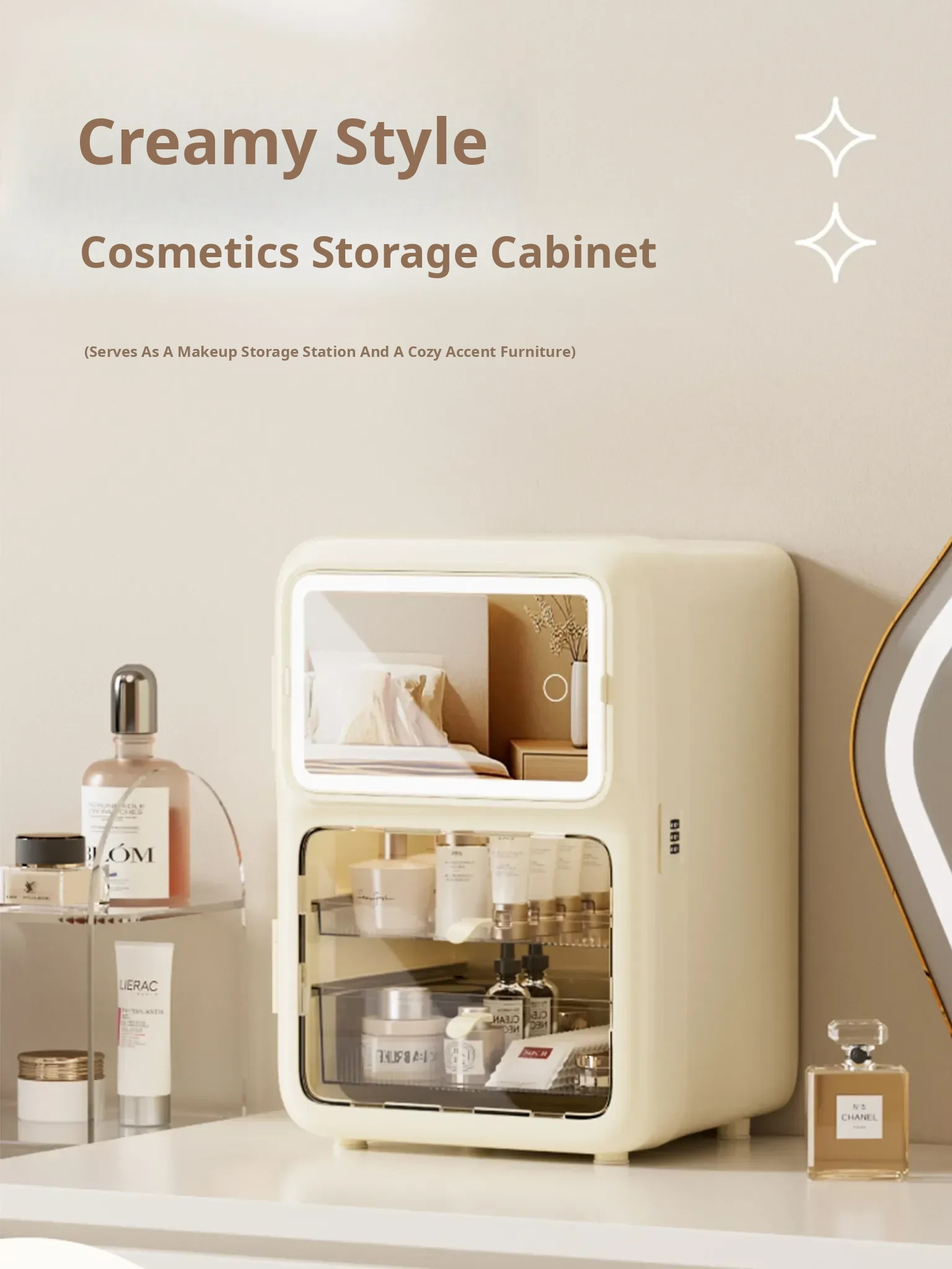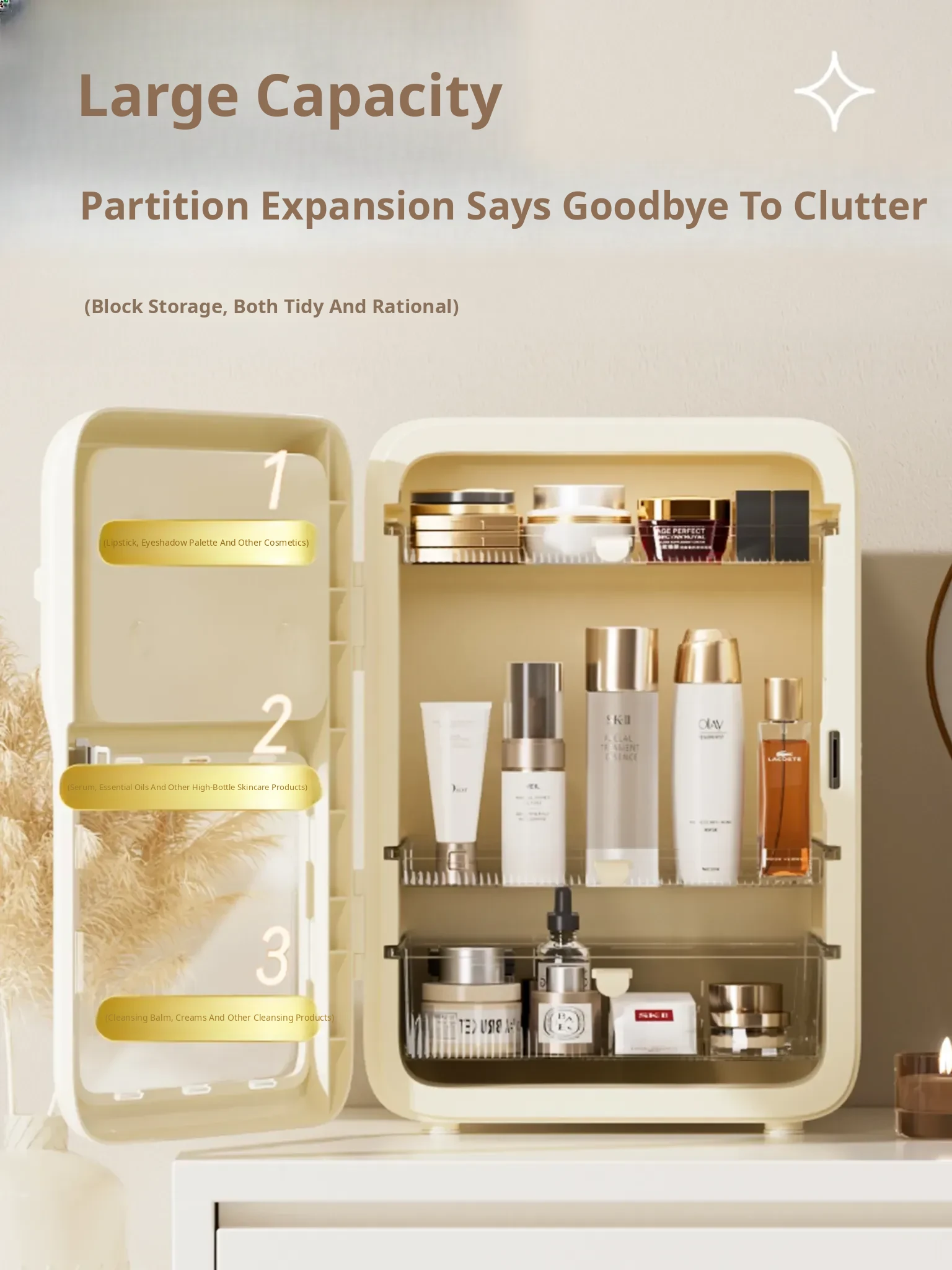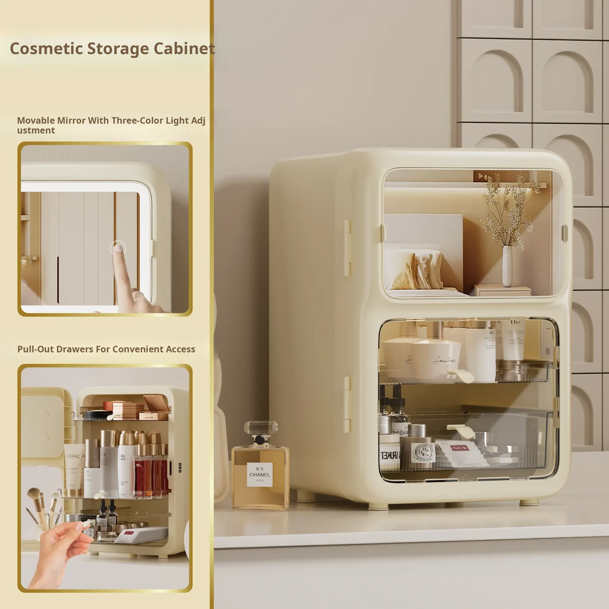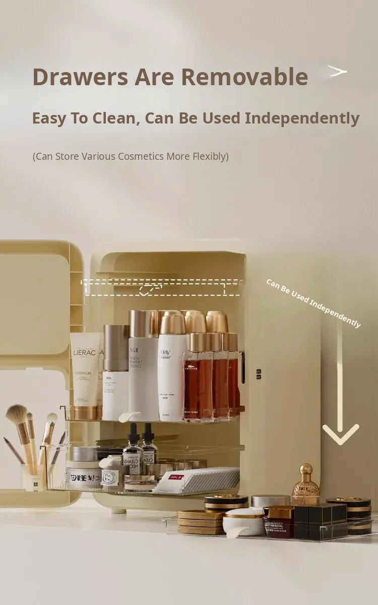 Premium Makeup Organizer Box - Elegant Desktop Storage for Cosmetics, Skincare, and Accessories. Dustproof and Spacious Divided Storage Cabinet for a Clutter-Free Vanity.