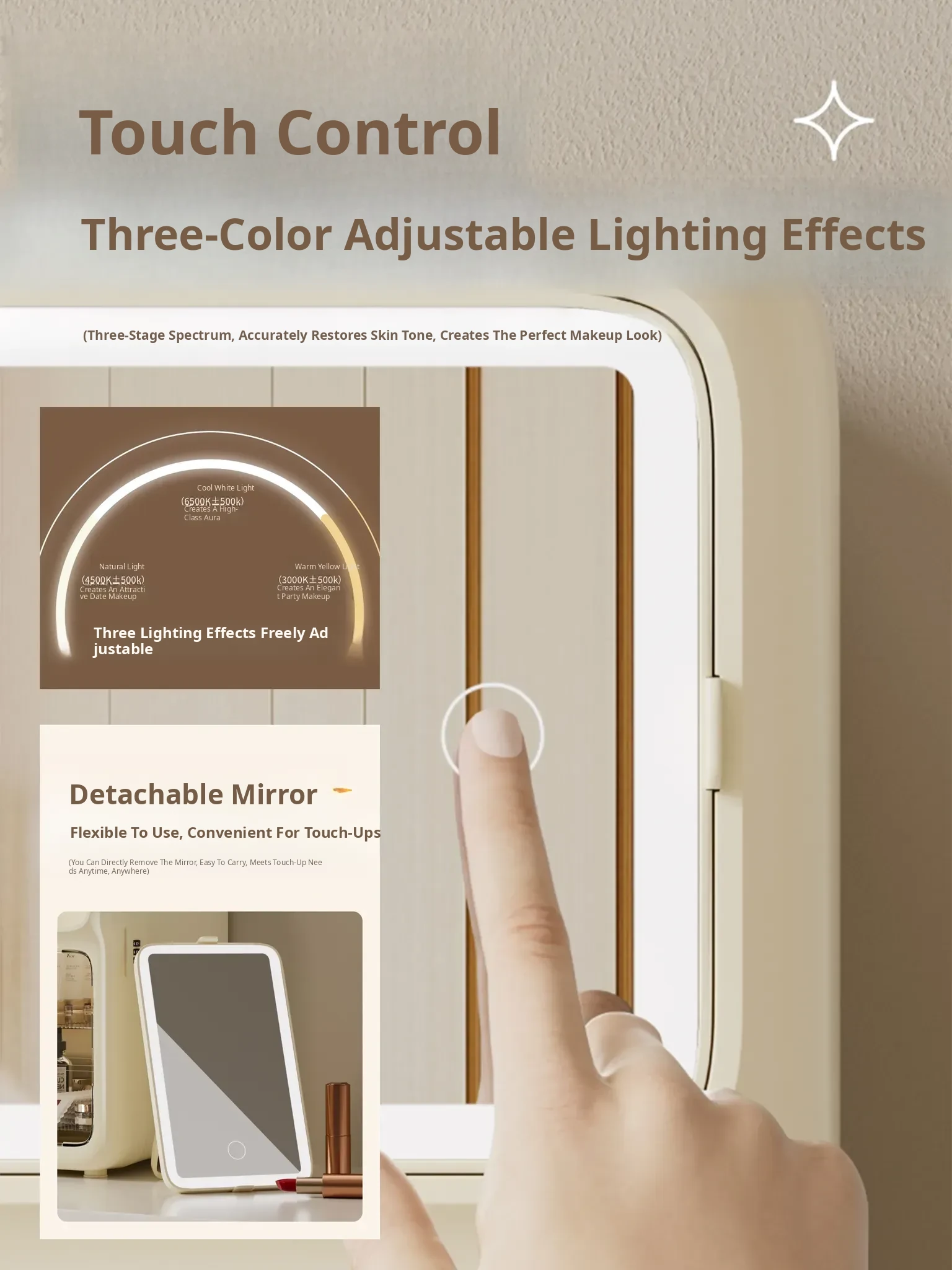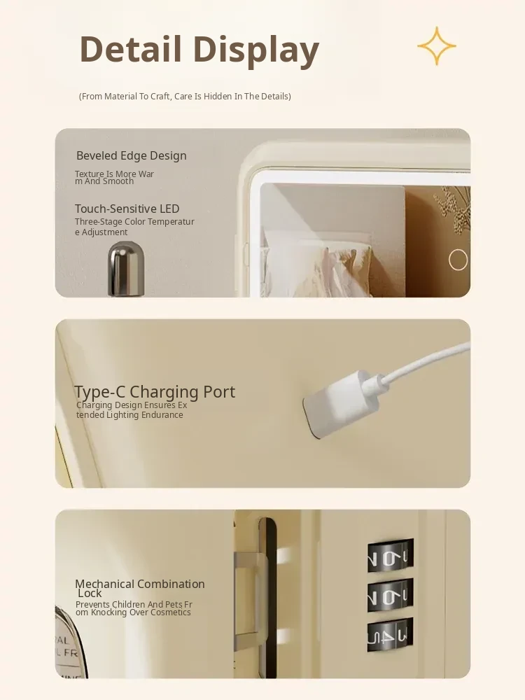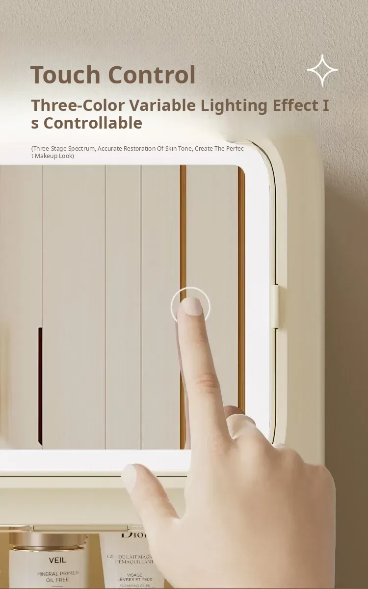[Cream White] Three-Color Fill Light Mirror/With Password Lock ⭐ Shipped in One Piece, Ready to Use Upon Receipt