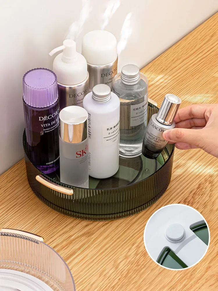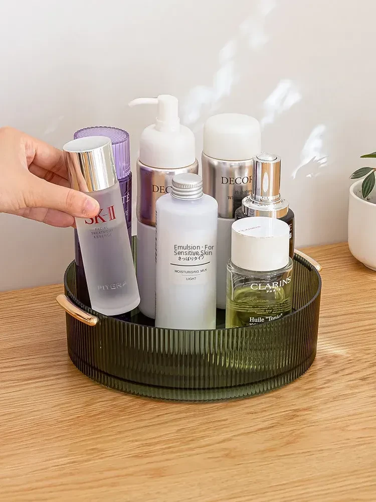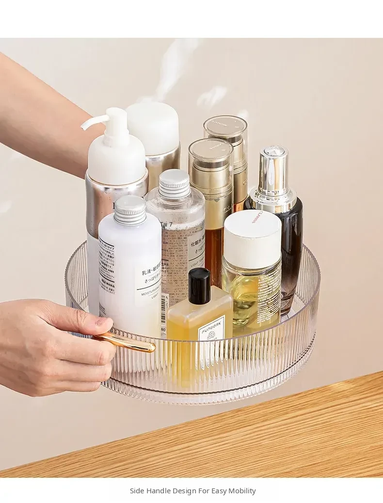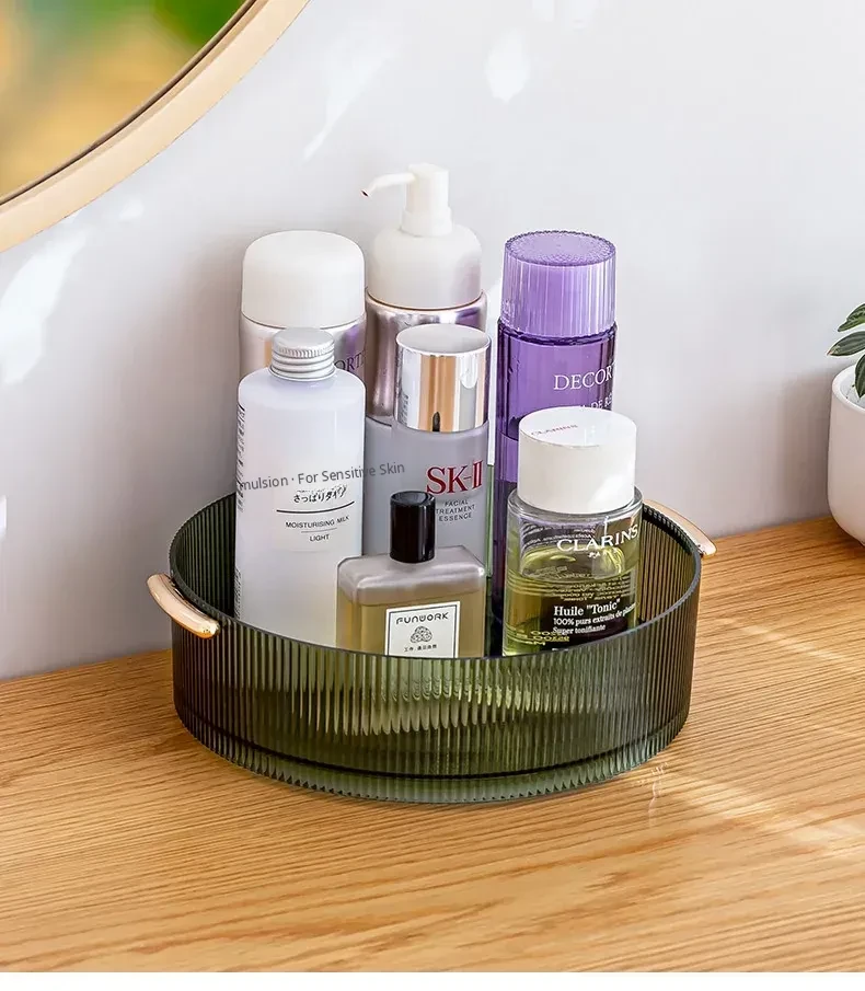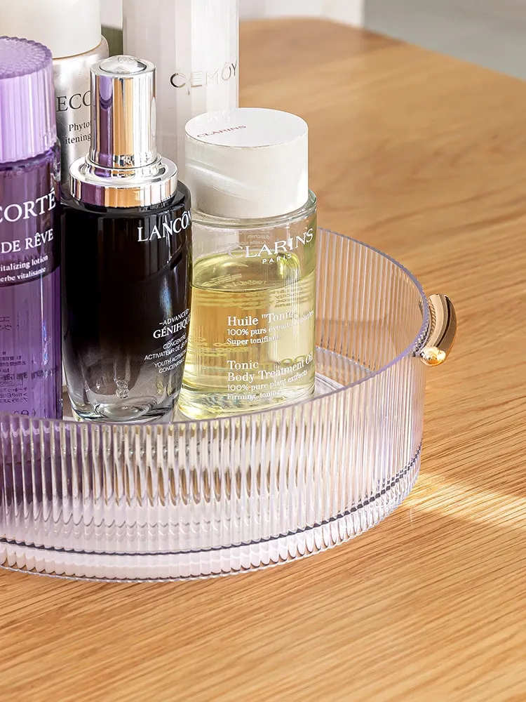 Rotating Desktop Makeup Organizer - Elegant Acrylic Transparent Vanity Tray for Skincare Products - Stylish Tabletop Storage Solution