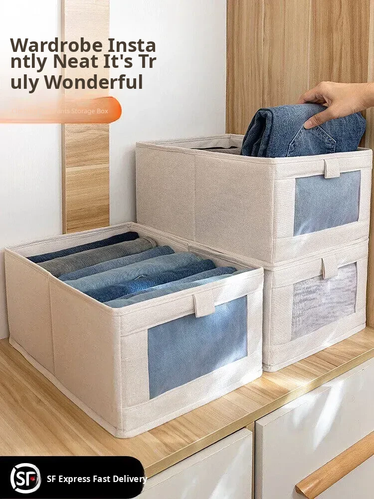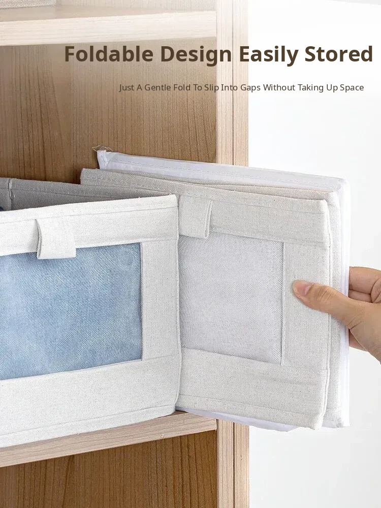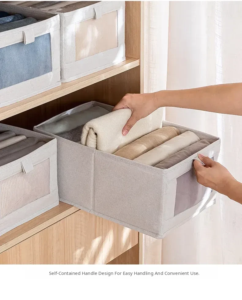 Set of 2 Visible Cotton Linen Storage Boxes – Drawer Style Oxford Cloth Organizers for Clothes and Pants – Perfect Home Storage Solution