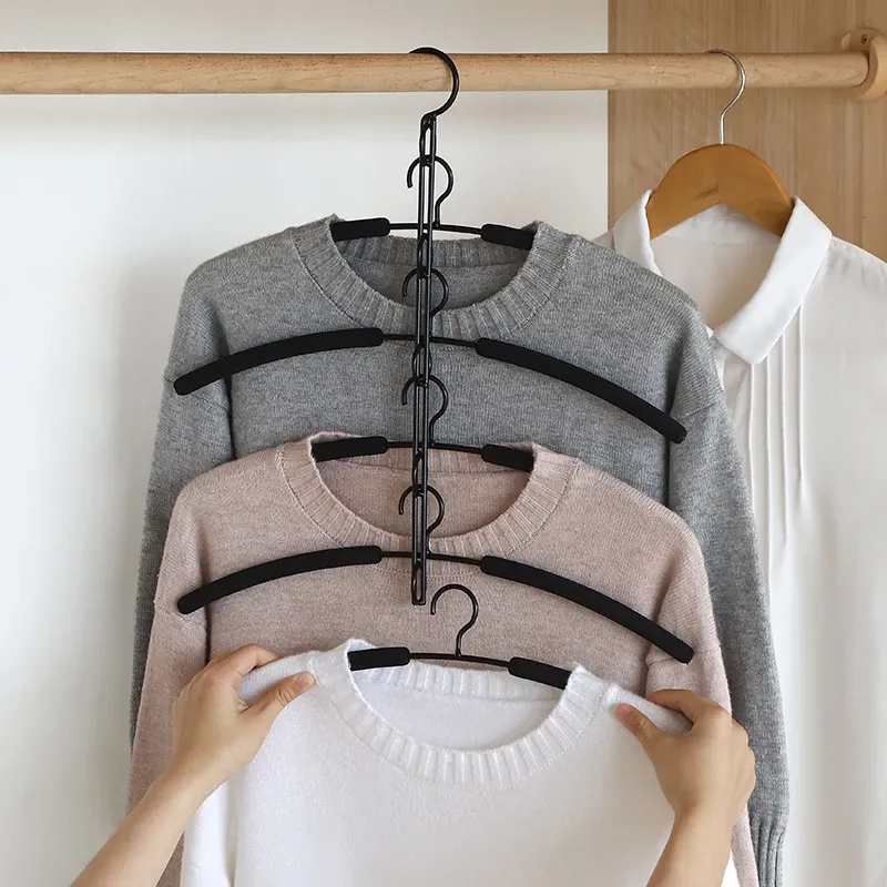 Space-Saving Multi-Layer Clothes Hanger with Hooks - Magic Wardrobe Organizer for Home, Collapsible Clothing Rack for Efficient Storage