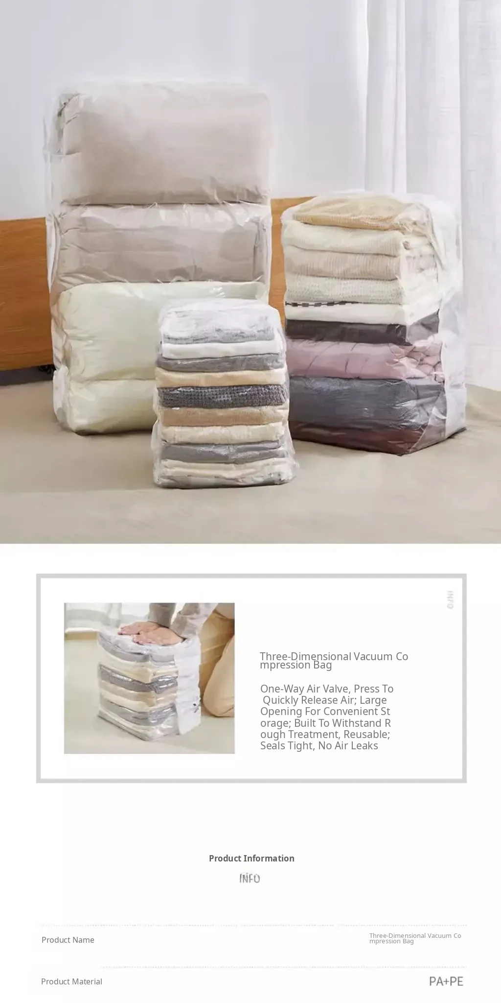 Space-Saving Vacuum Compression Bags - No Pump Needed! Thickened Storage Bags for Duve, Winter Coats, and Clothing Organization at Home. Perfect for Maximizing Storage Space!