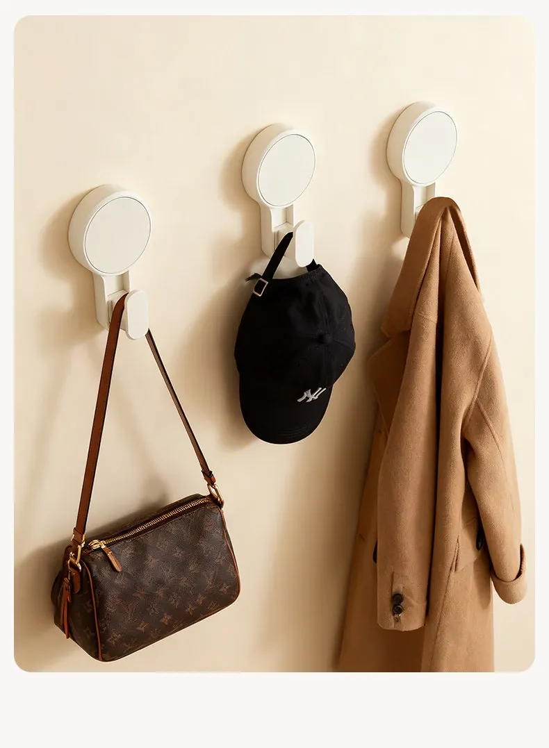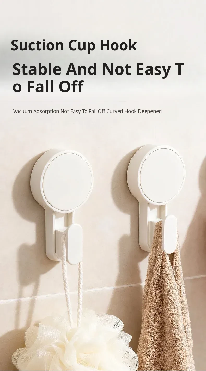 Strong Suction Cup Hooks for No-Drill Installation - Heavy-Duty Wall-Mounted Clothes Hooks for Bathroom or Toilet - Damage-Free Hanging Solution