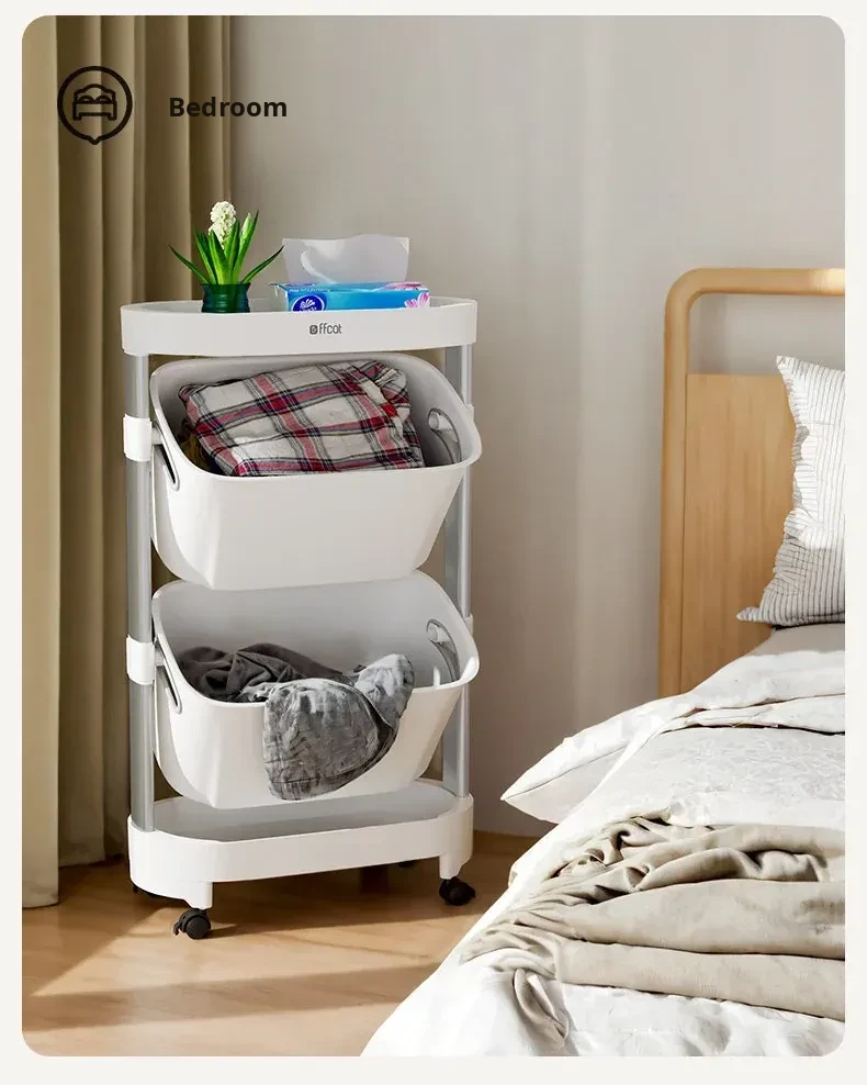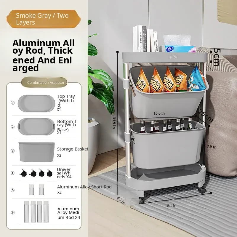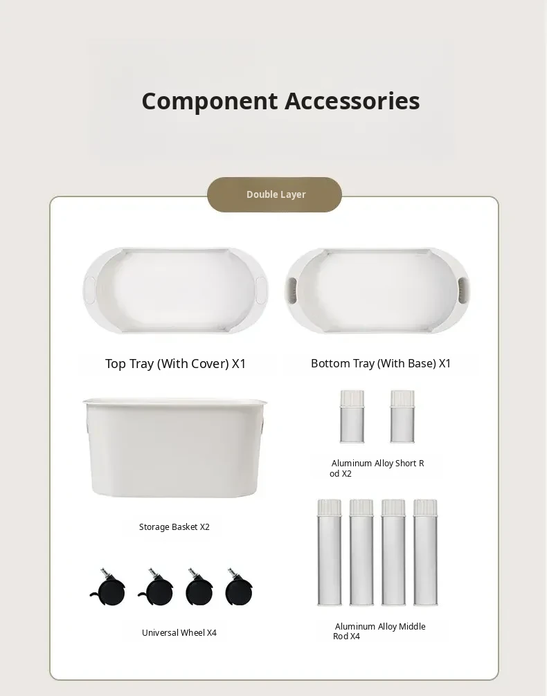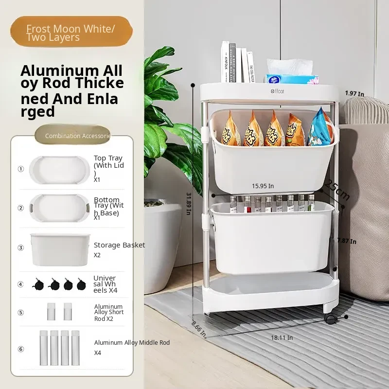 [Frost Moon White-Aluminum Alloy Pole] Two-Layer Trolley Storage Rack (Free Universal Pulleys*4)