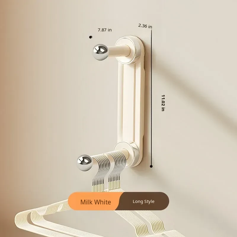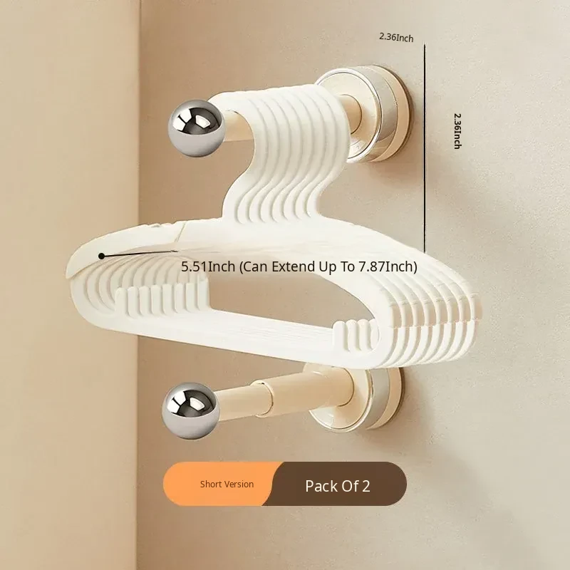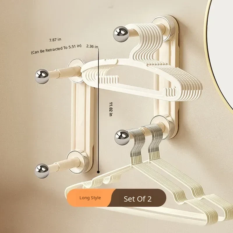 【Creamy White - Upgraded Hook Version】Suction Cup Single Rod Clothes Hanger Organizer (2-Pack)