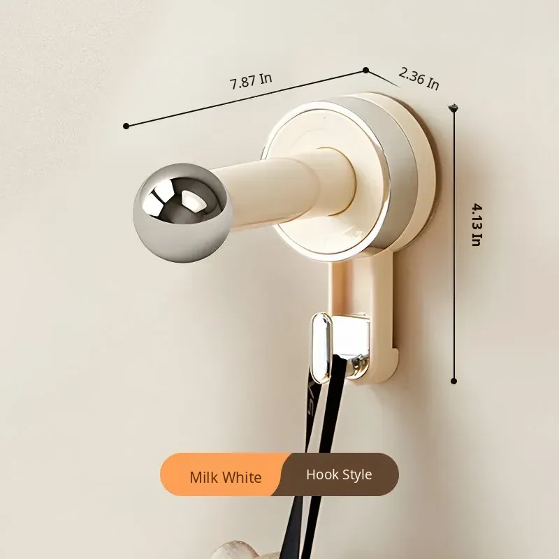 [Milk White] Suction Cup Single Rod Clothes Hanger Storage Rack (1 Pack)