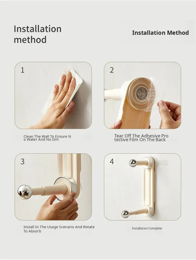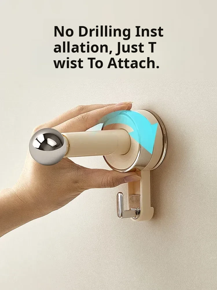 【Creamy White - Upgraded Hook Version】Suction Cup Single Rod Clothes Hanger Organizer (Single Pack)