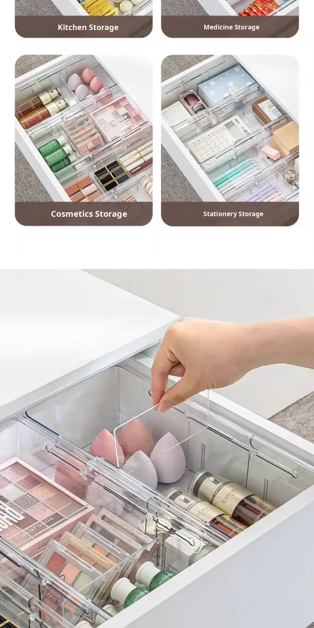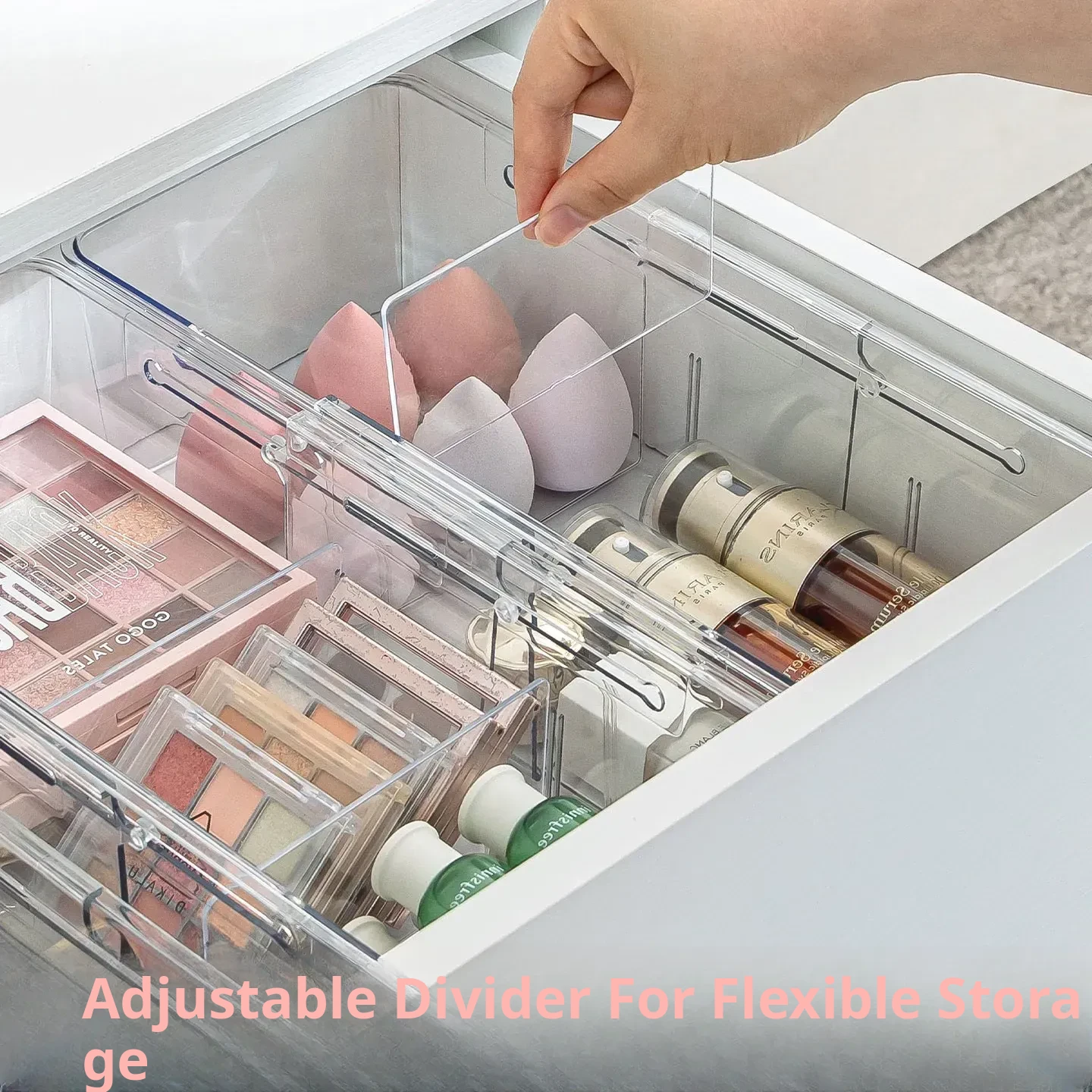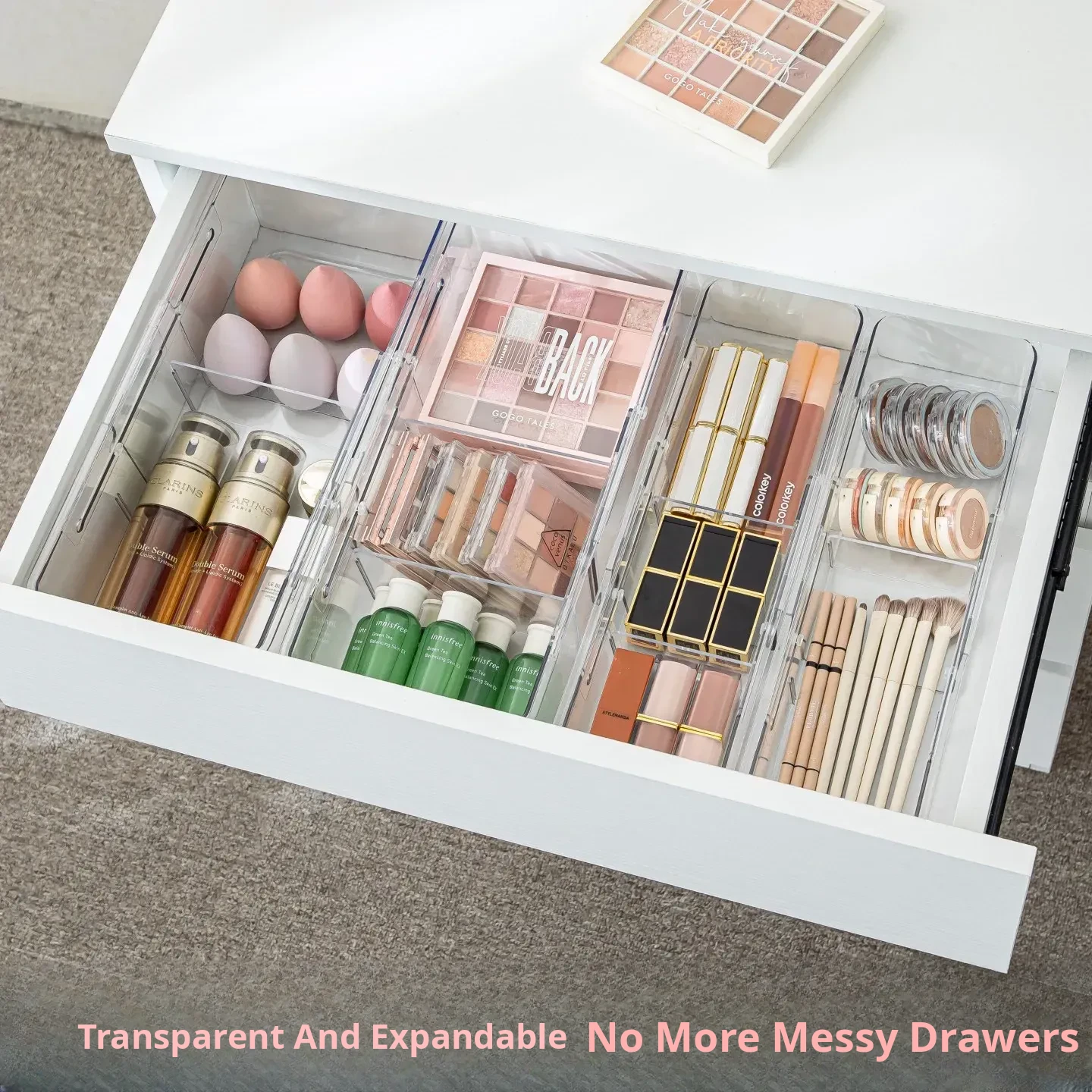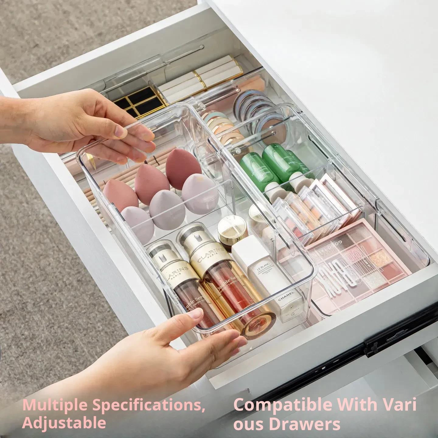 Transparent Expandable Drawer Organizer for Cosmetics - Makeup Storage with Built-in Dividers for Cabinet, Office, and Home Organization