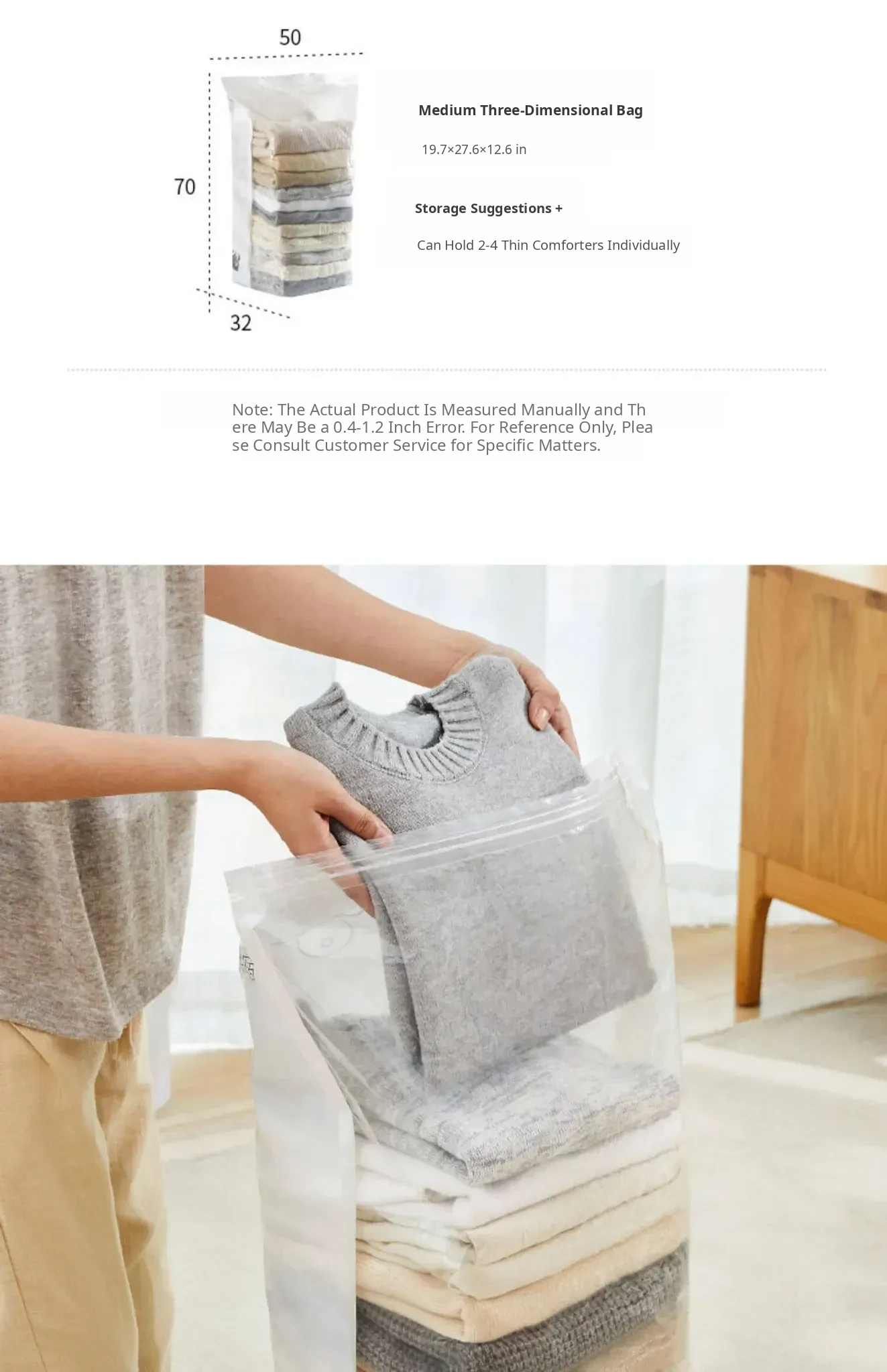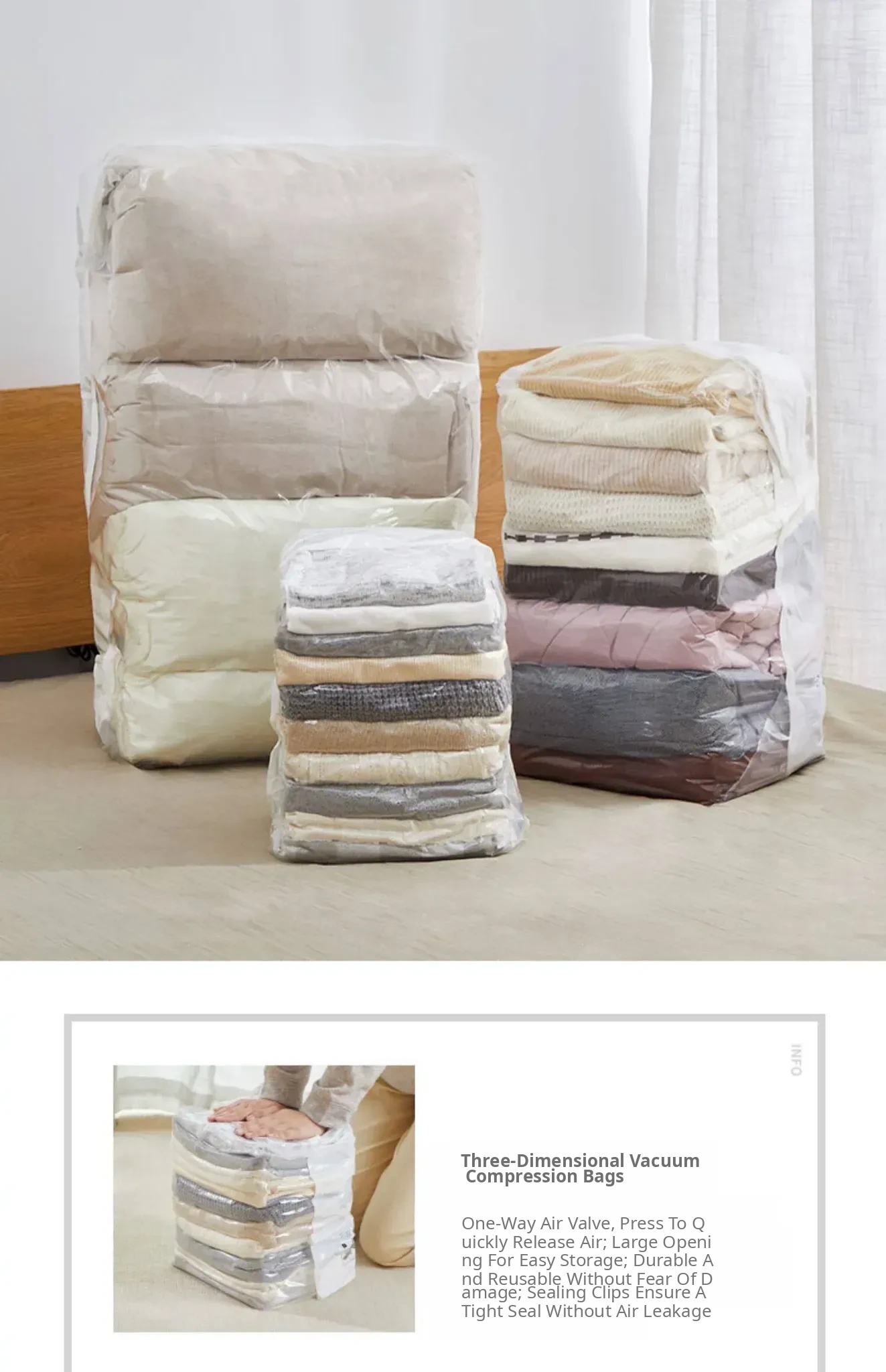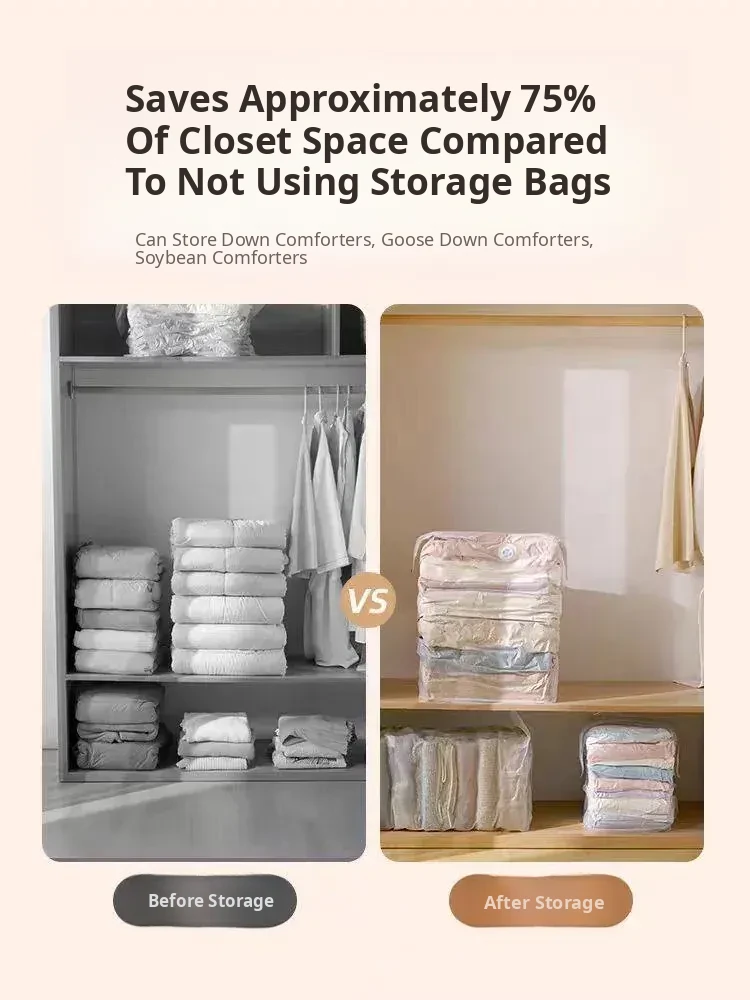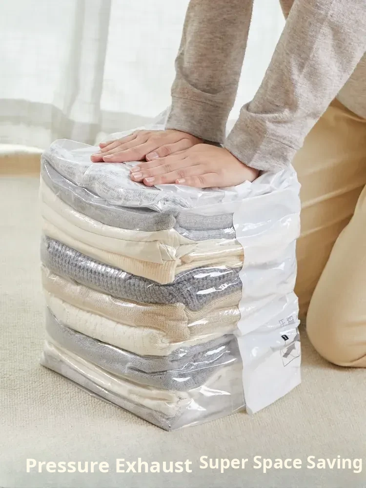 Vacuum Compression Storage Bags - No Pump Needed, Perfect for Bedding, Clothes, and Down Jackets. Ideal for Home Organization and Space Saving!