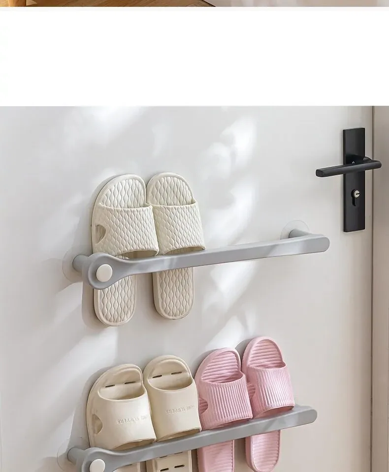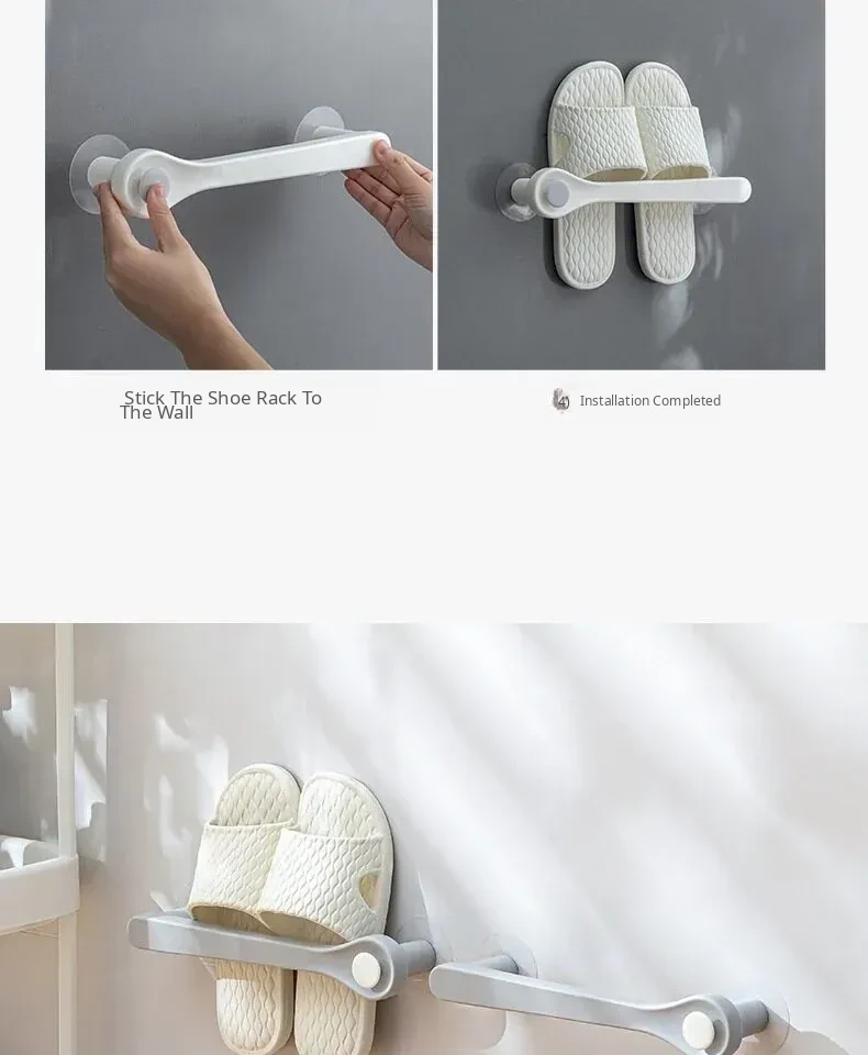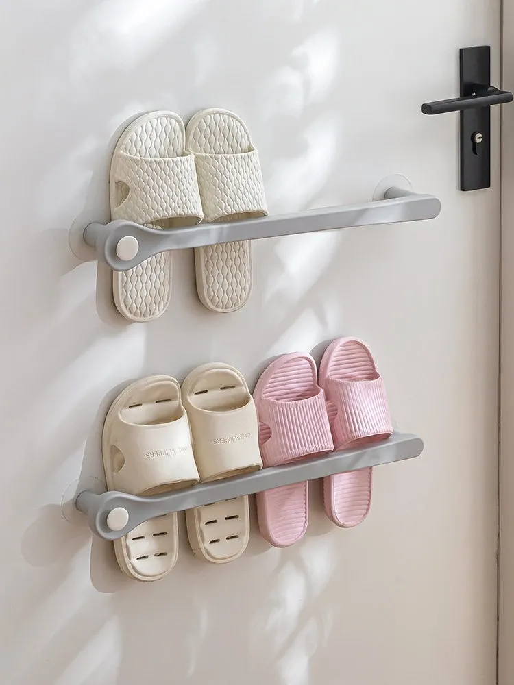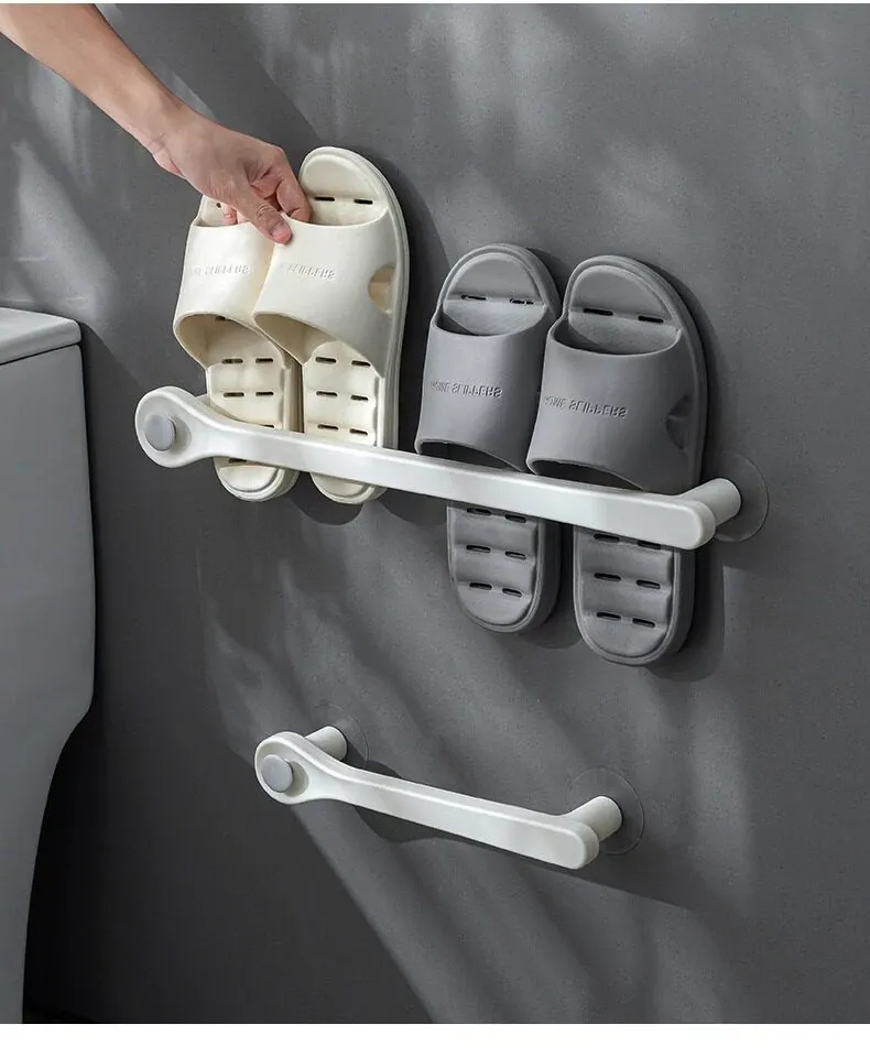 Wall-Mounted Bathroom Slipper Rack - No Drilling Required, Space-Saving Shoe Organizer for Toilet and Bathroom Storage Solution