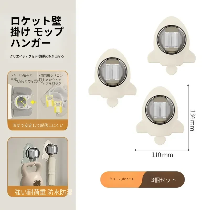 【クリームホワイト-3個入り】跡が残らず壁を傷めない 強力耐荷重