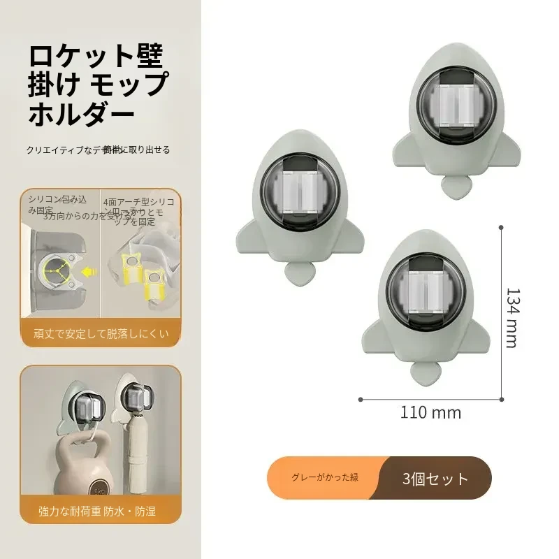 【グレー緑-3個入り】跡が残らず壁を傷めない 強力耐荷重