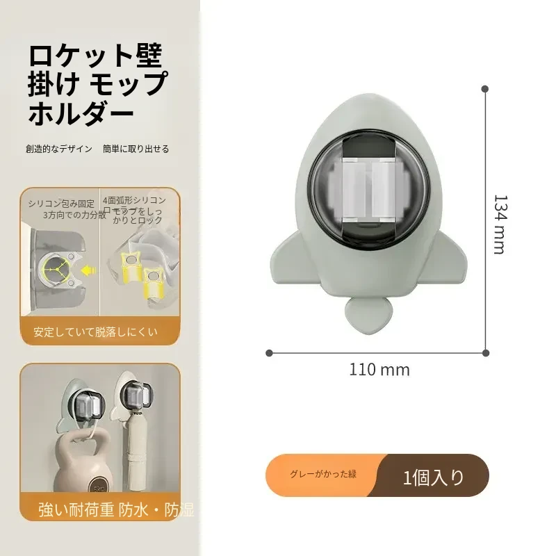 【グレー緑-1個入り】跡が残らず壁を傷めない 強力耐荷重
