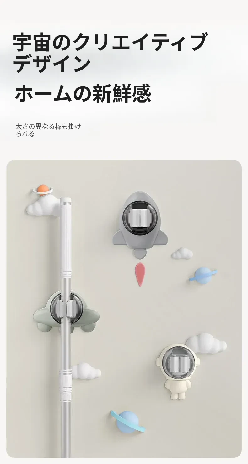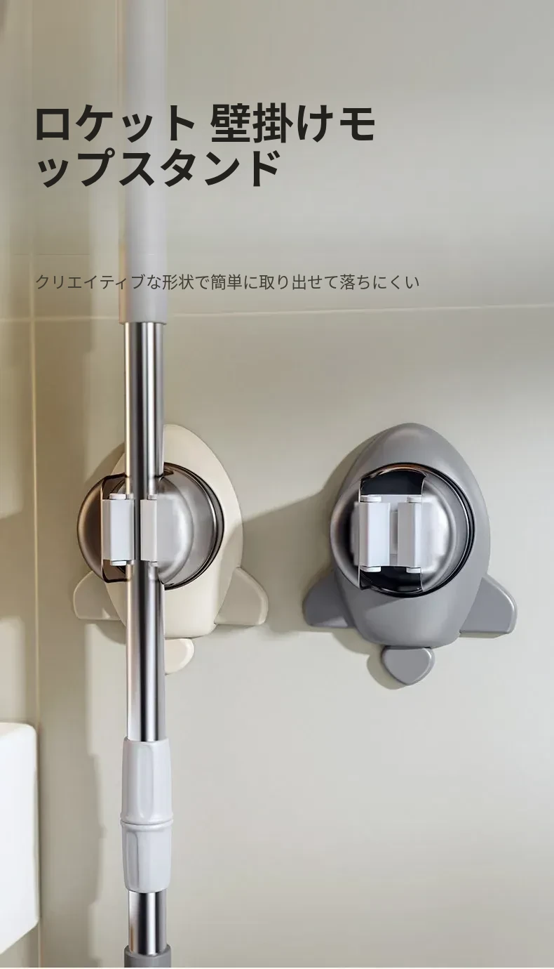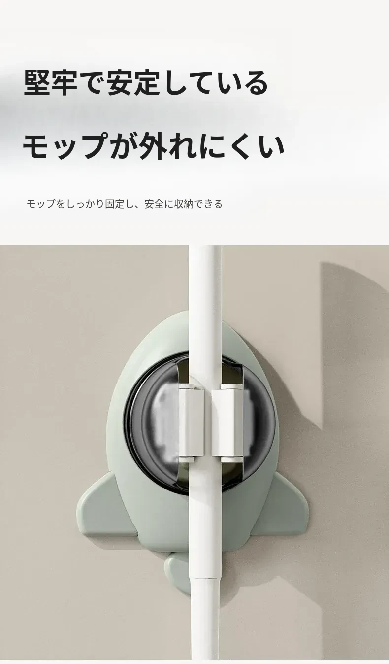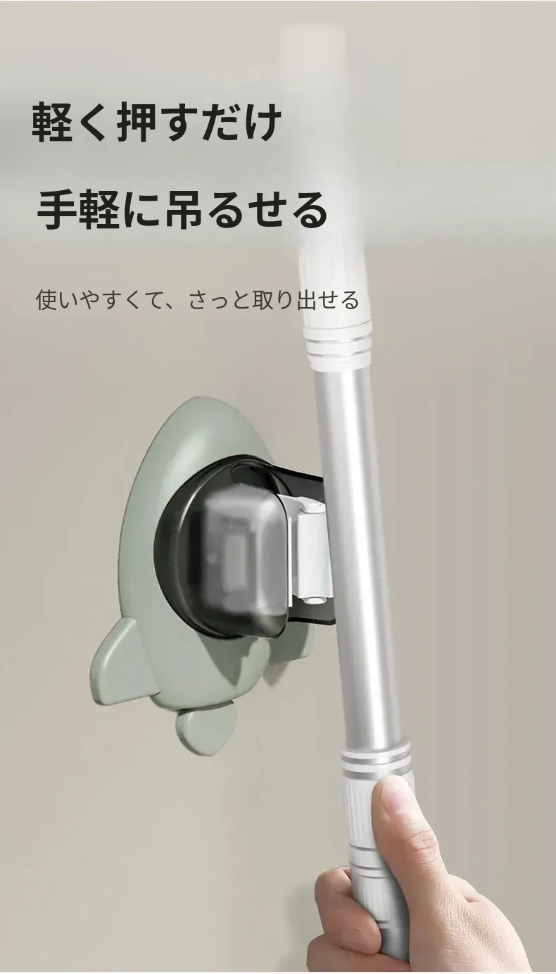 壁掛けモップクリップ - 穴あけ不要の強力耐荷重設計!2025年新作、バスルームにも最適な傷のない粘着フックで、掃除をもっと便利に!