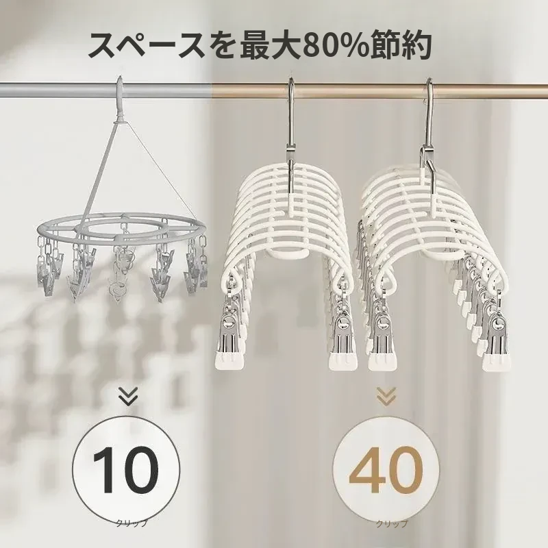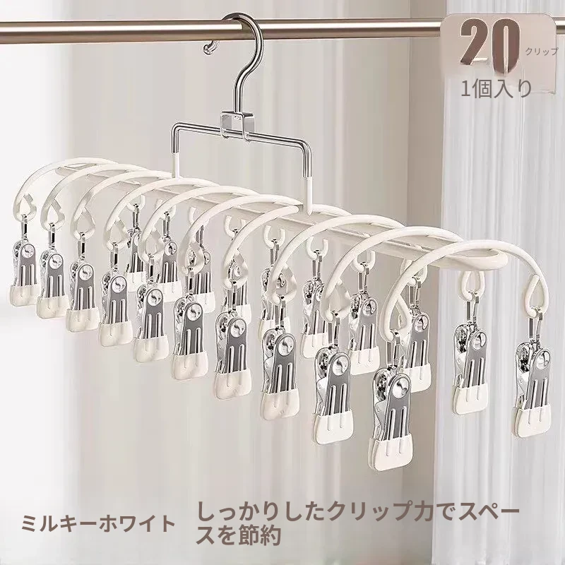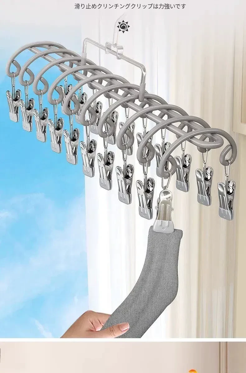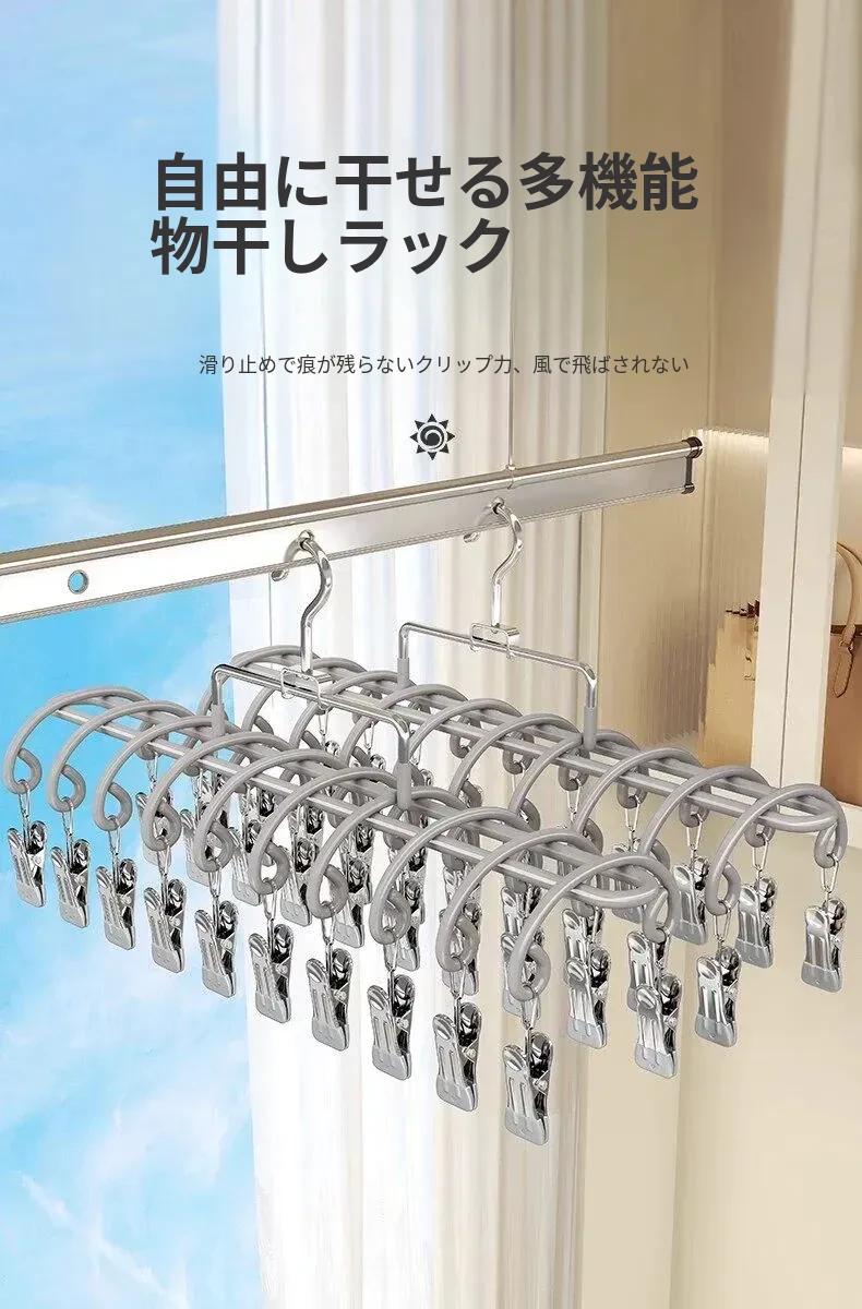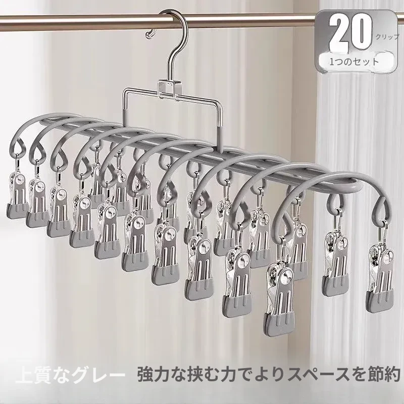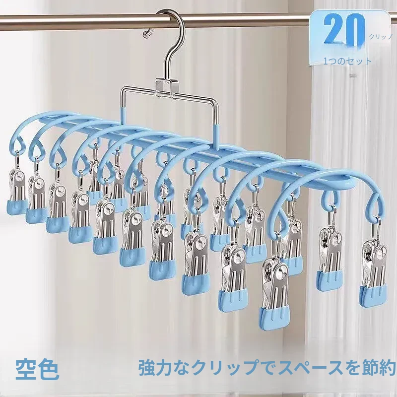 20クリップステンレス製多機能物干しハンガー - 靴下や小物の乾燥に最適!学生や赤ちゃんのための安心設計、風にも強いので、寮でも大活躍!