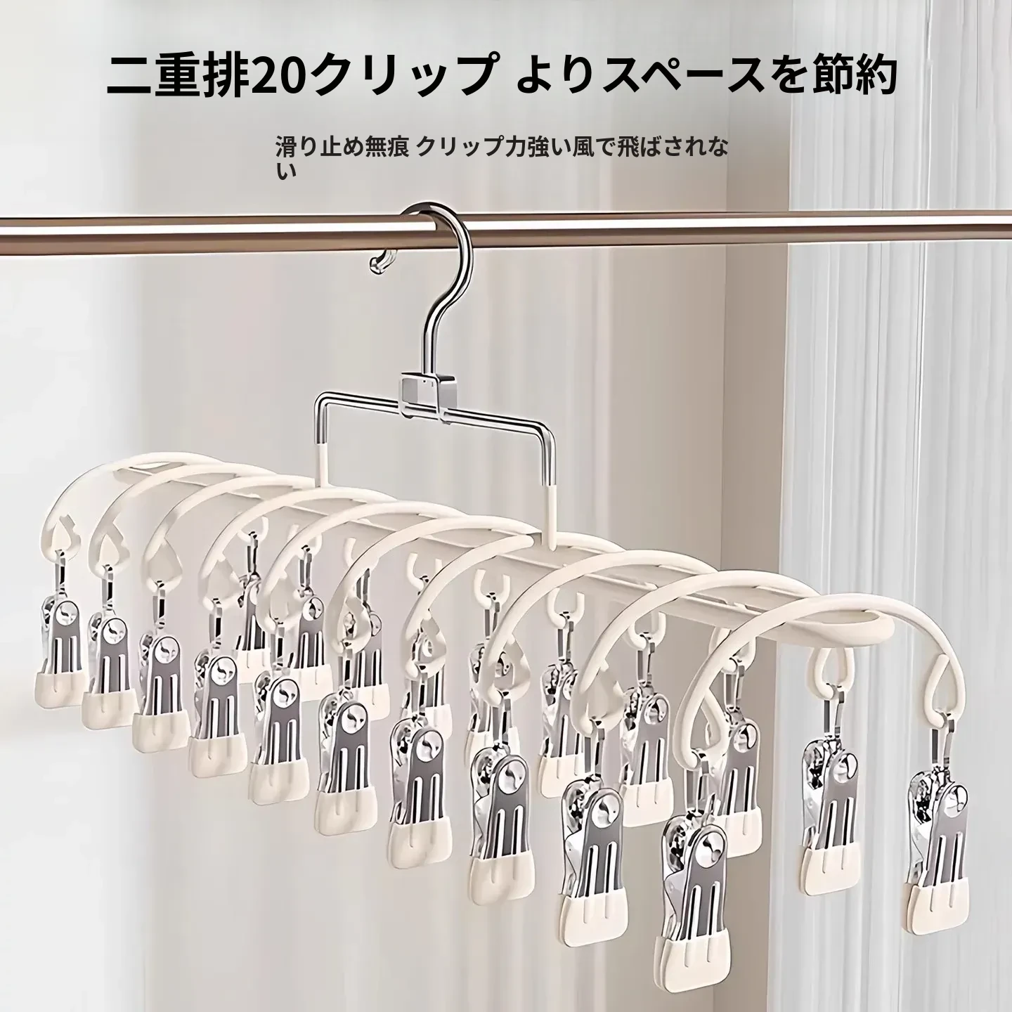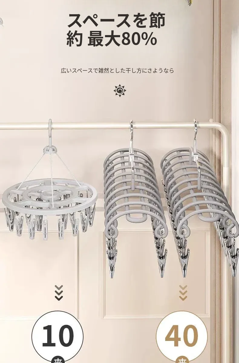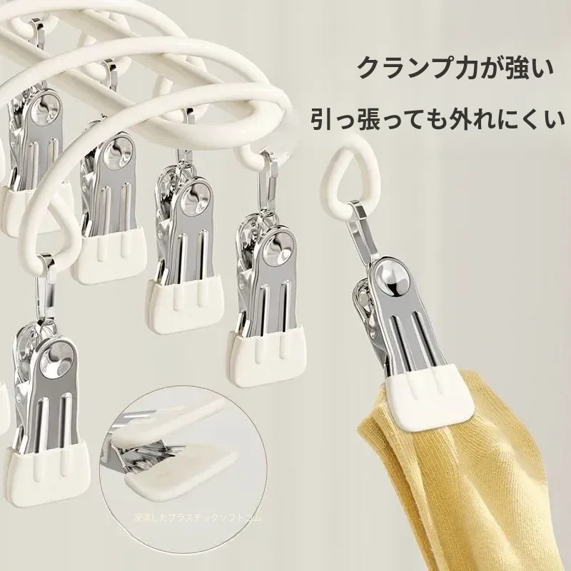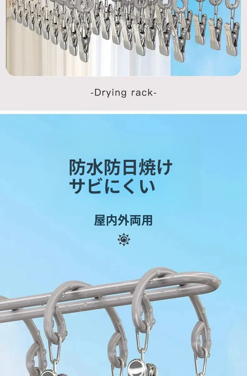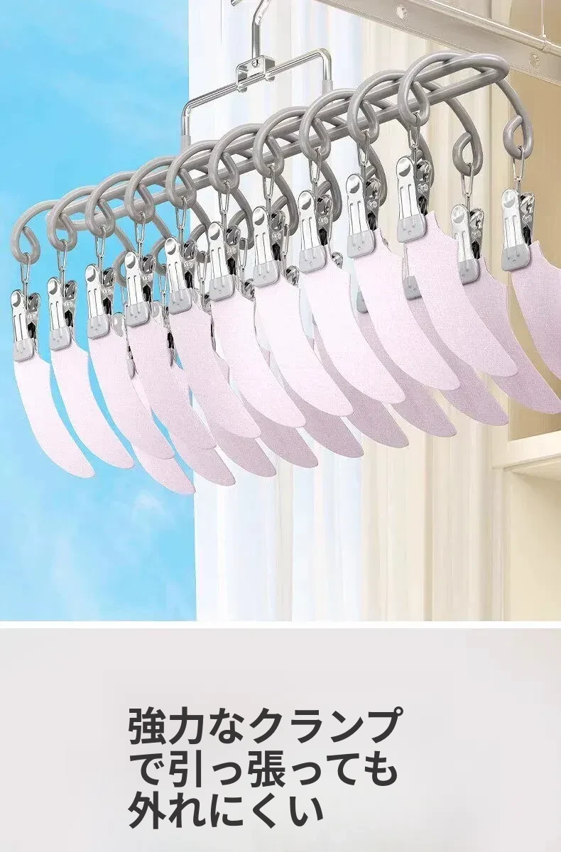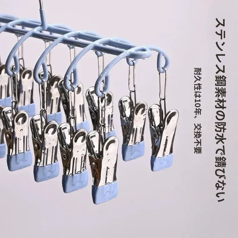 20クリップステンレス製多機能物干しハンガー - 靴下や小物の乾燥に最適!学生や赤ちゃんのための安心設計、風にも強いので、寮でも大活躍!