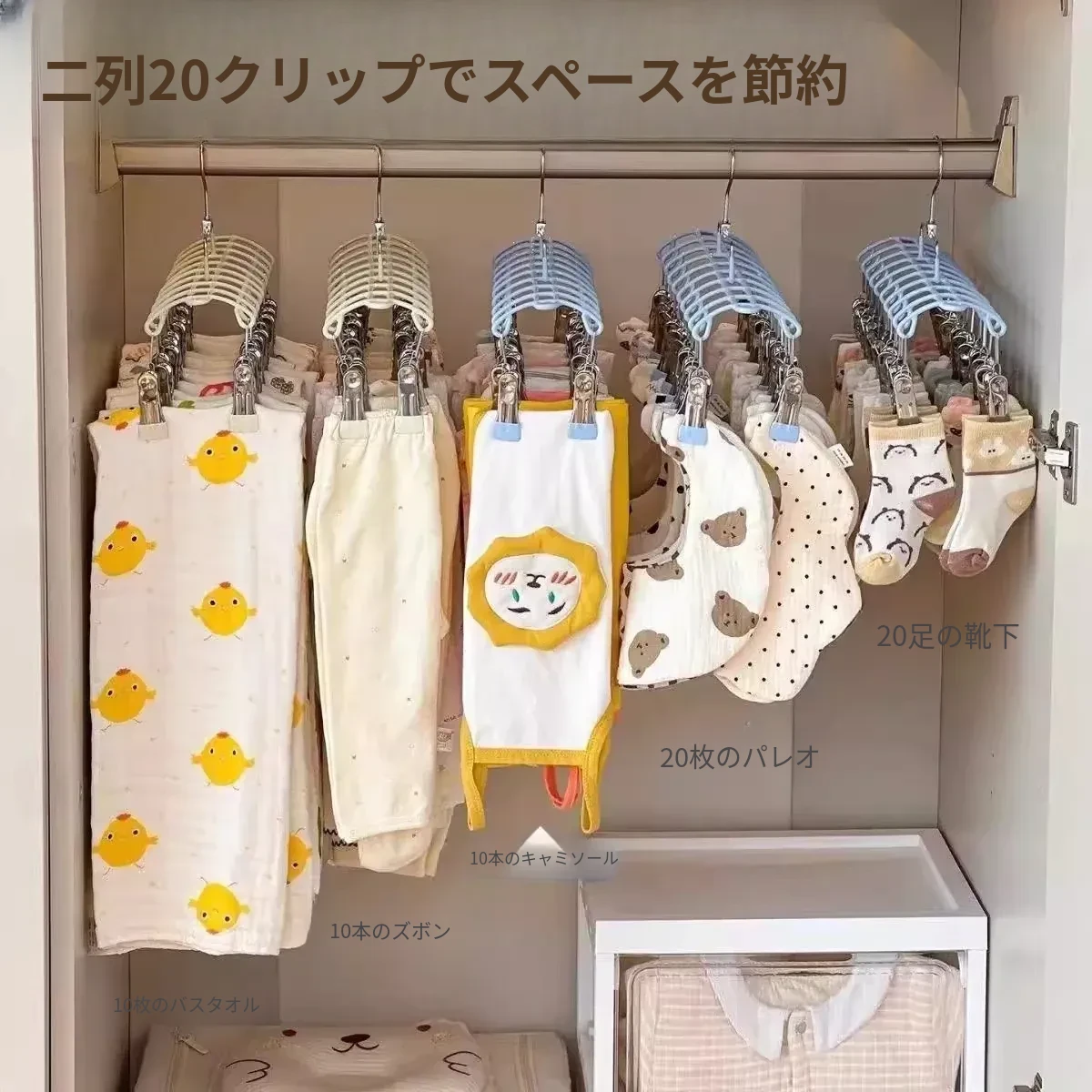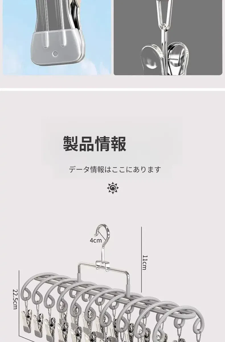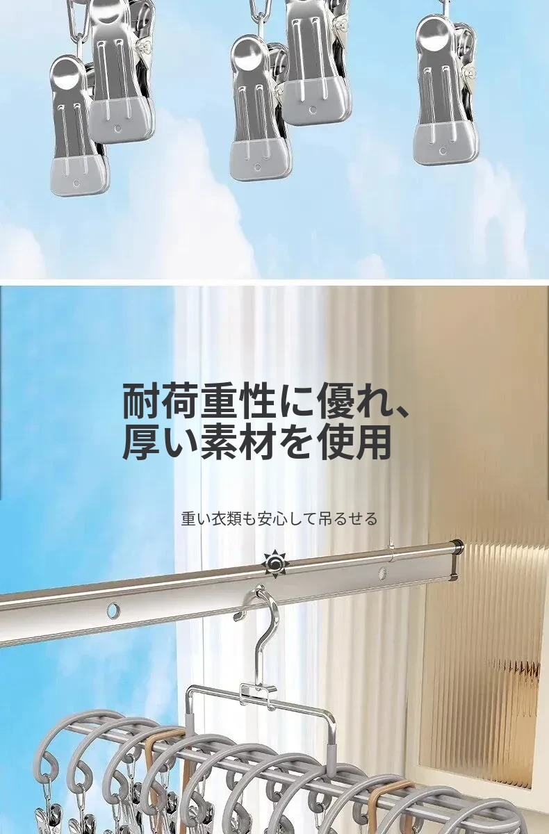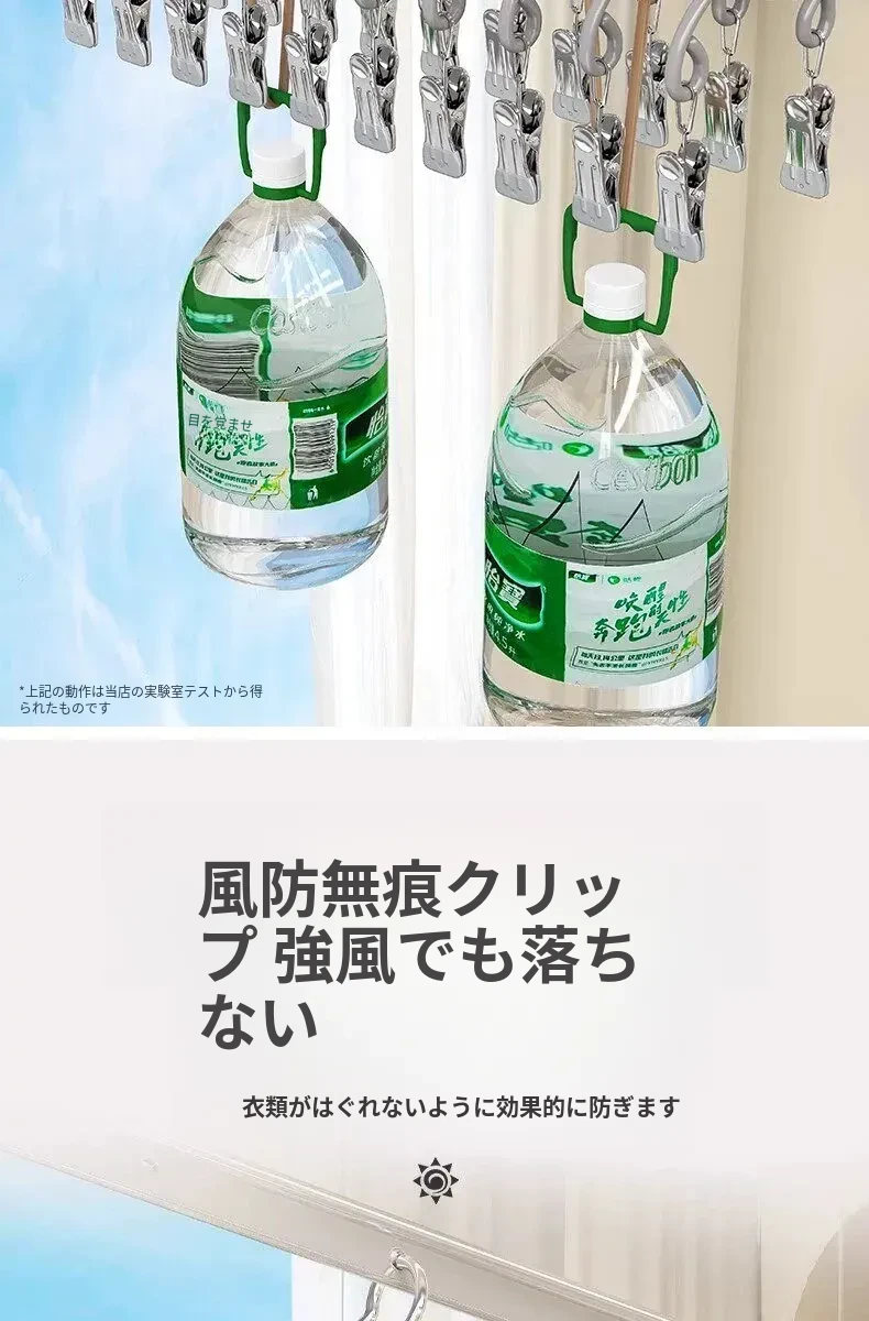 20クリップステンレス製多機能物干しハンガー - 靴下や小物の乾燥に最適!学生や赤ちゃんのための安心設計、風にも強いので、寮でも大活躍!
